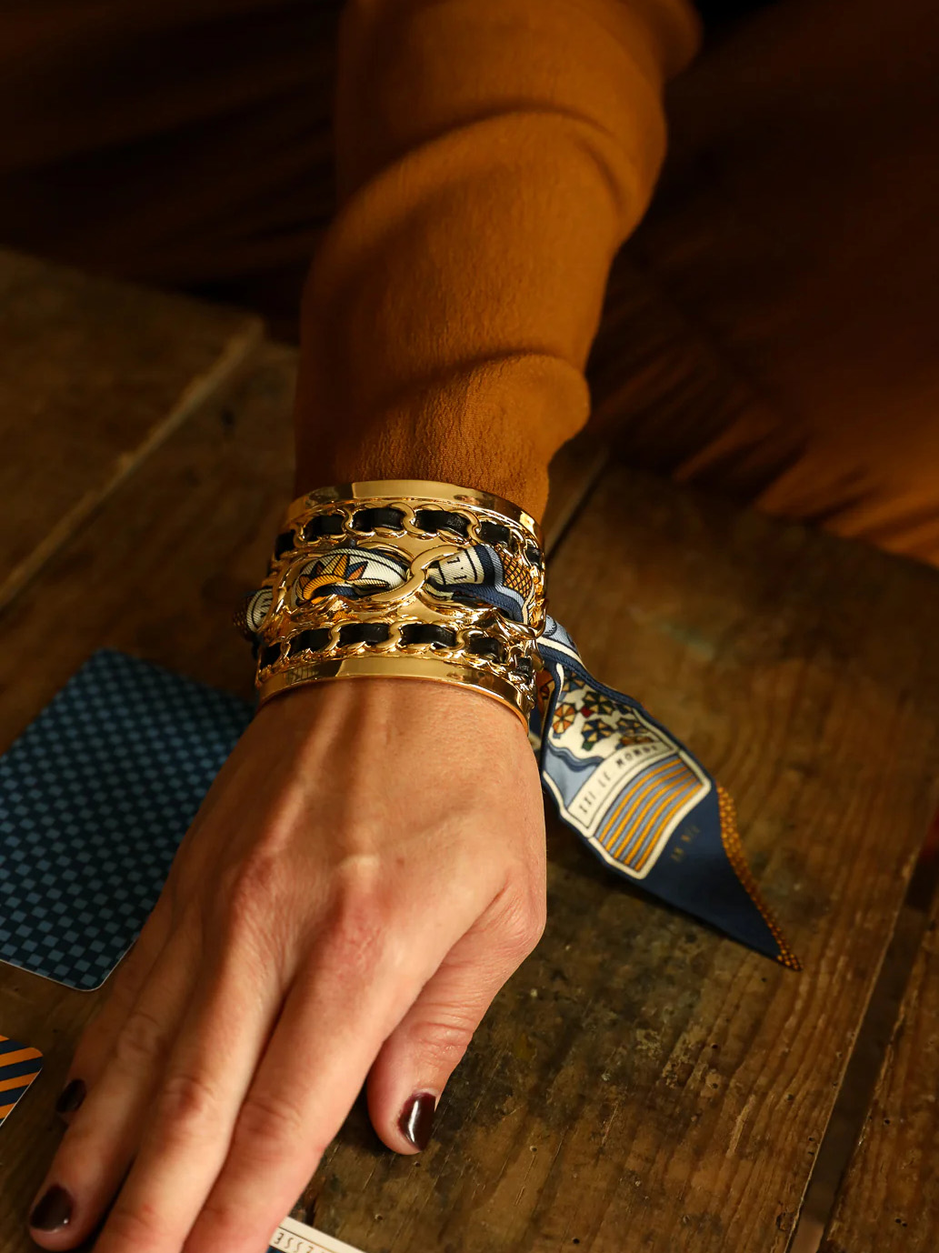订购14周到|AN-NEE-C3G-DECEMBRE-Nori-深蓝色 塔罗 2cm 丝巾手镯[法国设计师]