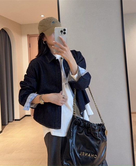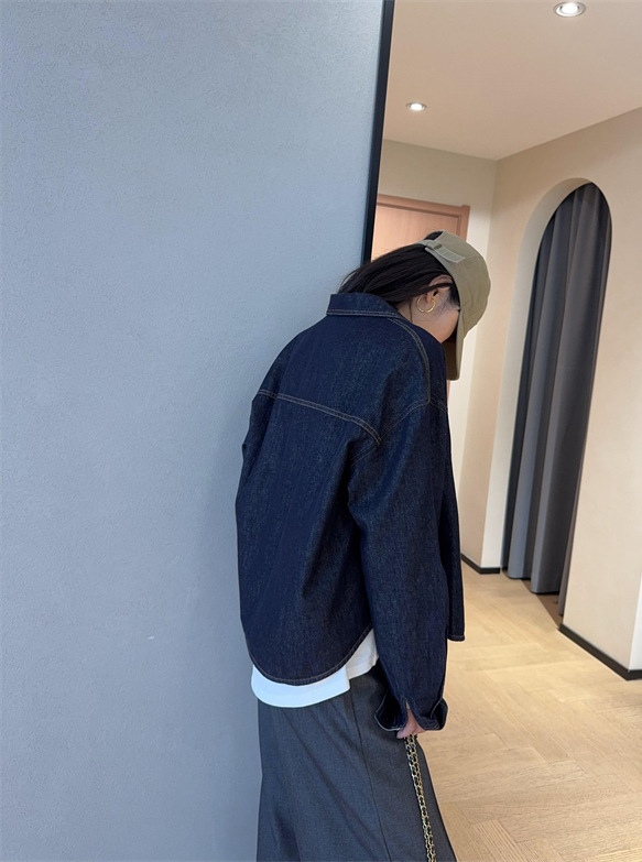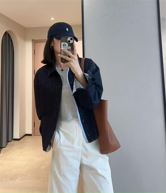 面料选用莱赛尔棉混纺面料,比起传统的纯棉牛仔布,这个比例混合,既保持棉料的挺括感,又拥有莱赛尔天丝的垂顺爽滑,不会有老棉布的扎身感,上身更亲肤舒适。