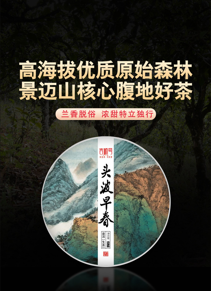 吉顺号《头波早春》景迈山大树普洱生茶饼357g/饼