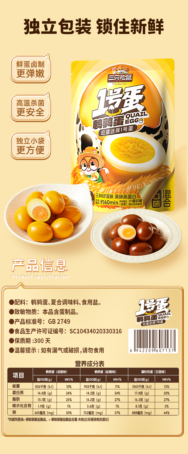 三只松鼠 多味鹌鹑蛋(68粒)/混合口味/计量称重-fx