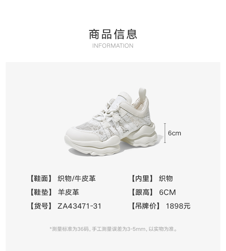 【2F】[纯白恋歌]莎莎苏2023夏新款网面透气厚底老爹鞋女休闲运动小白鞋