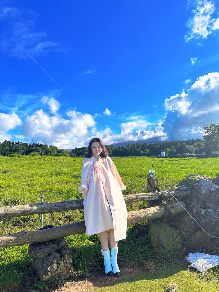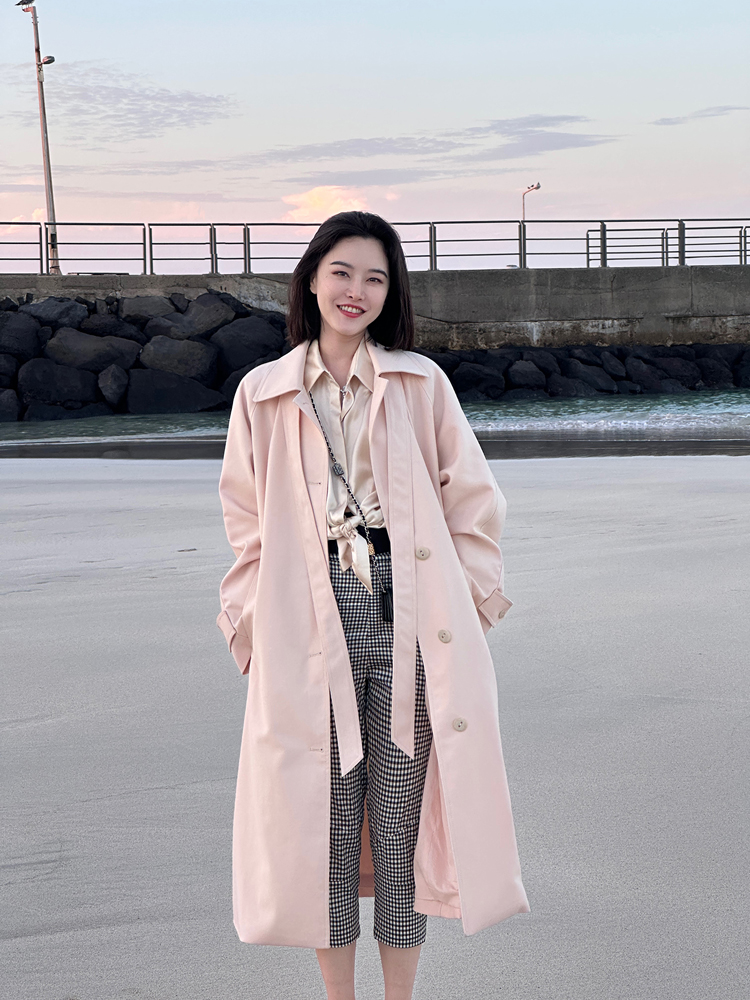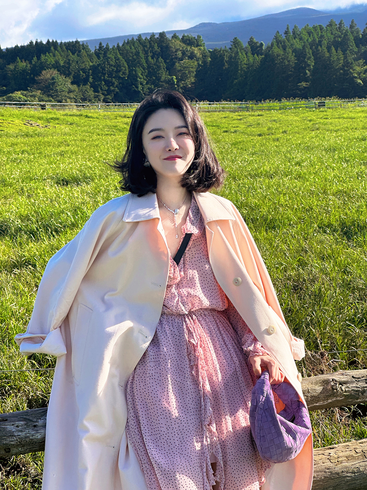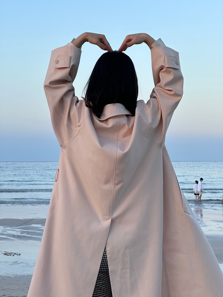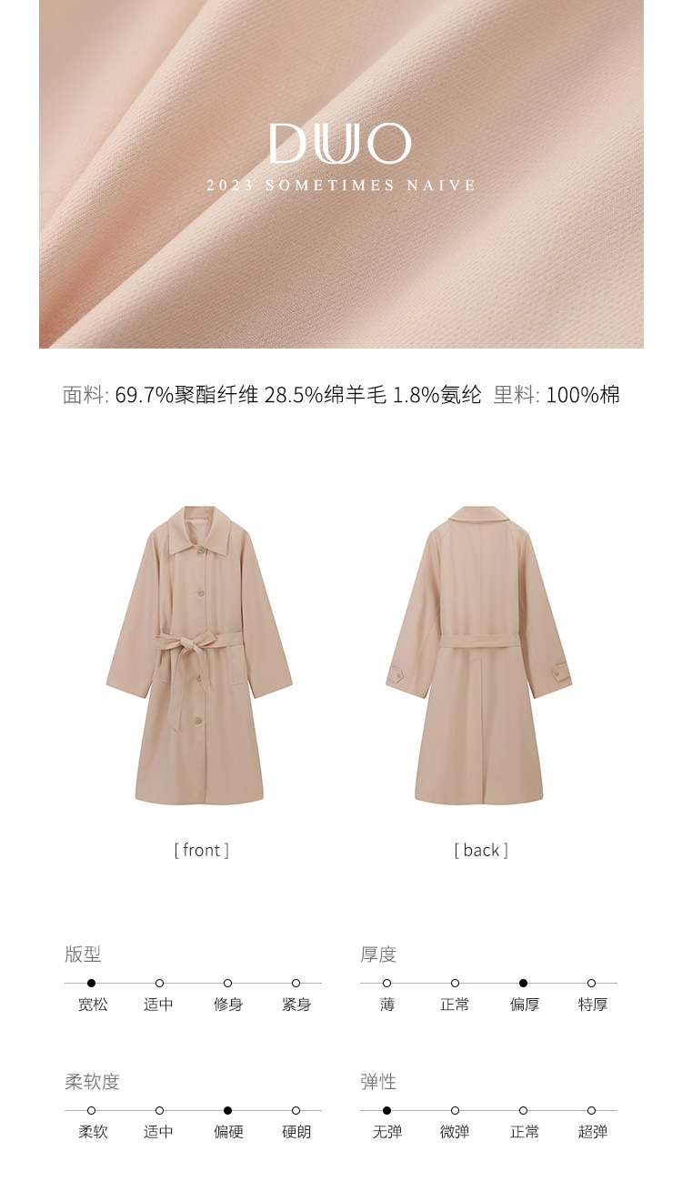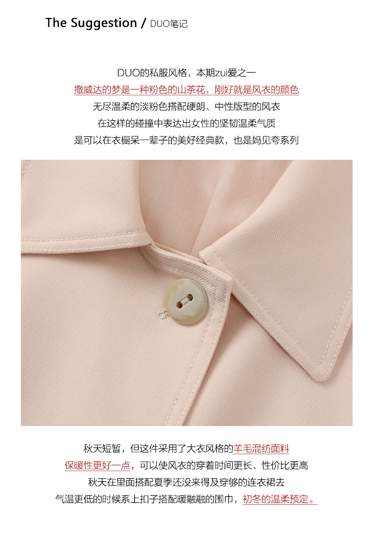 DUO智仙生 芭比粉之袍 粉色山茶羊毛混纺宽松长款文艺风衣