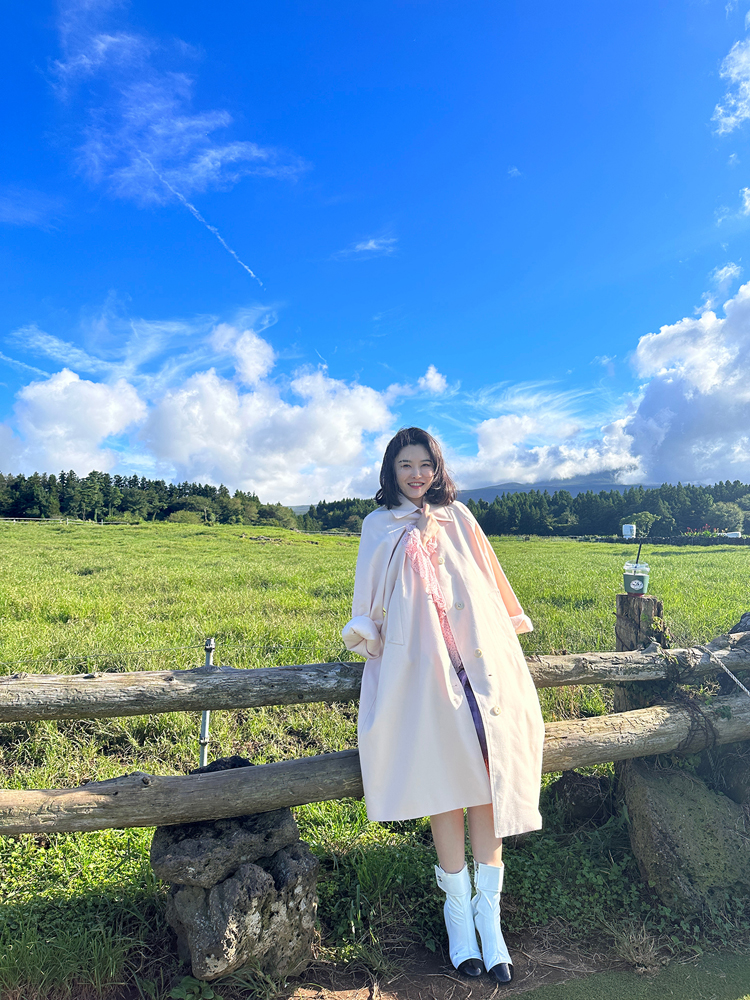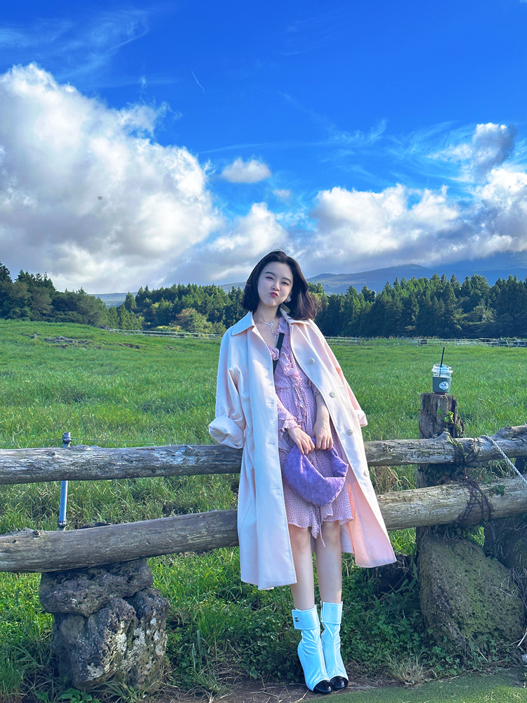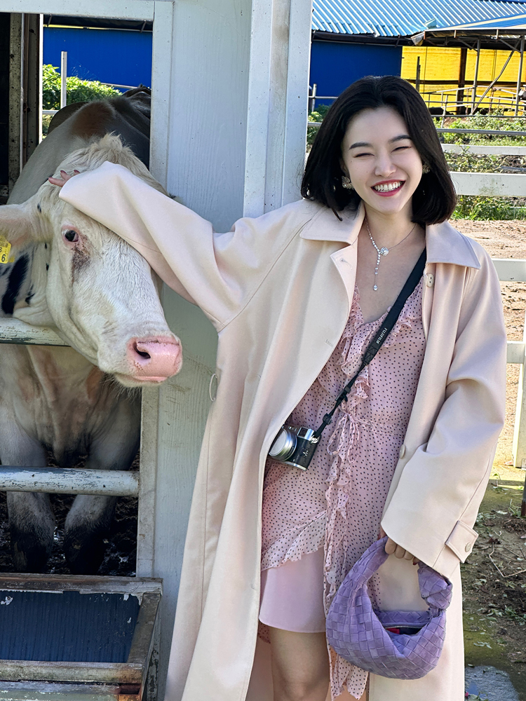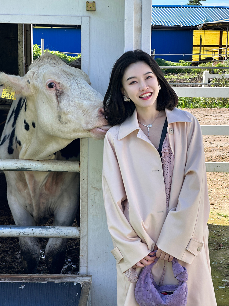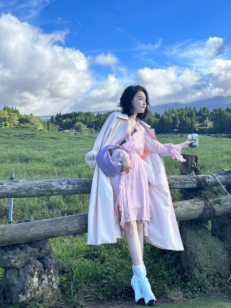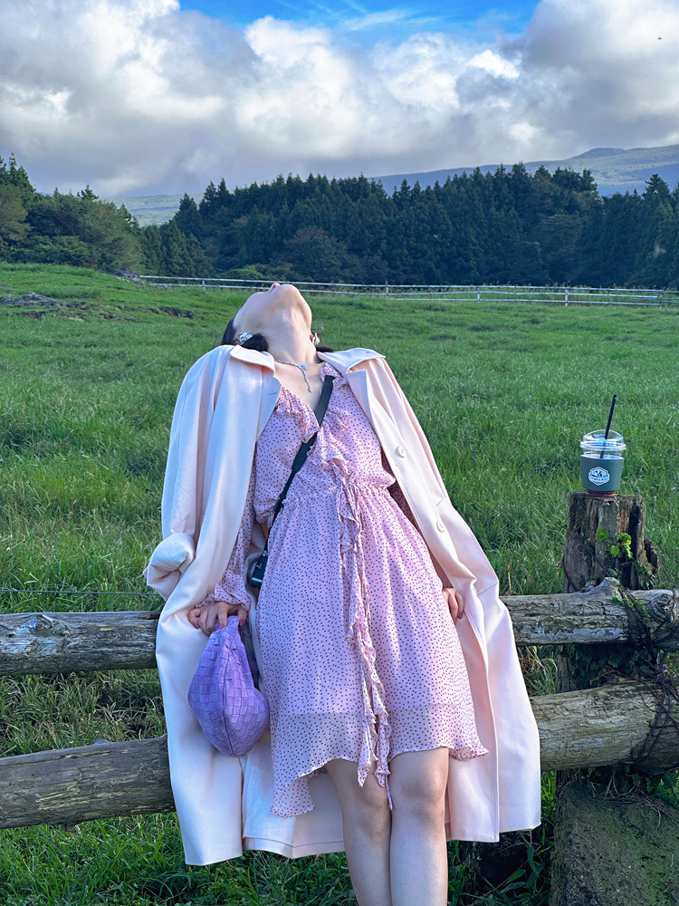 DUO智仙生 芭比粉之袍 粉色山茶羊毛混纺宽松长款文艺风衣