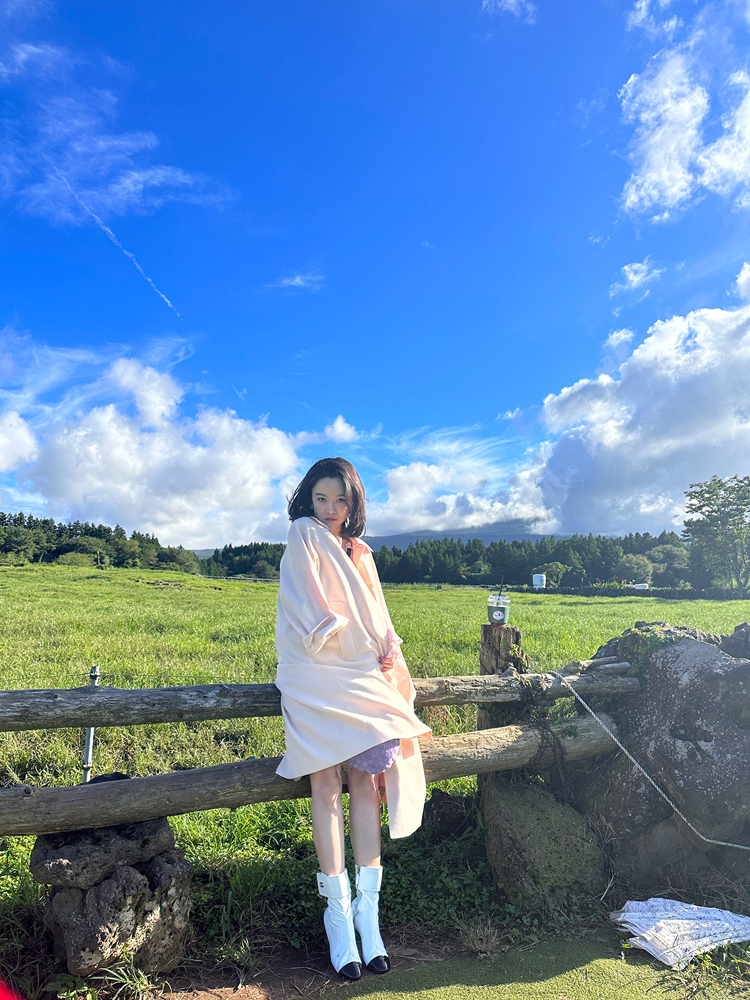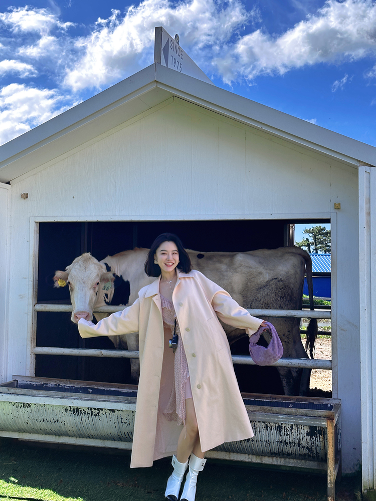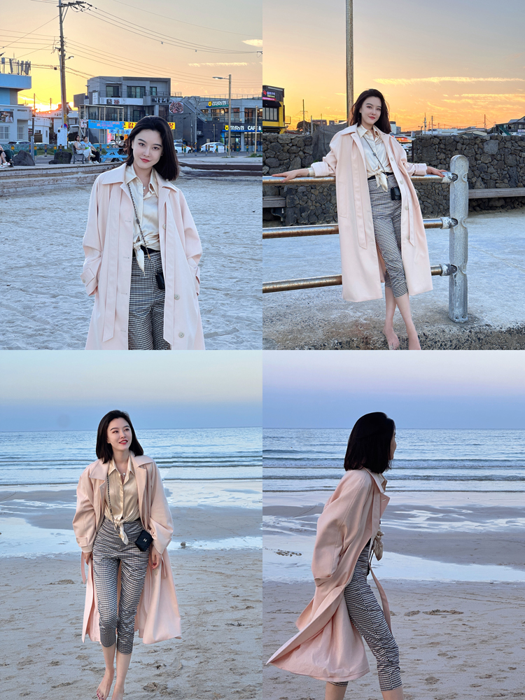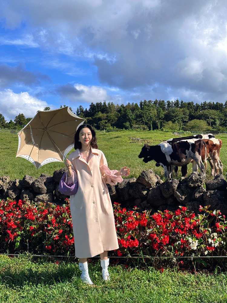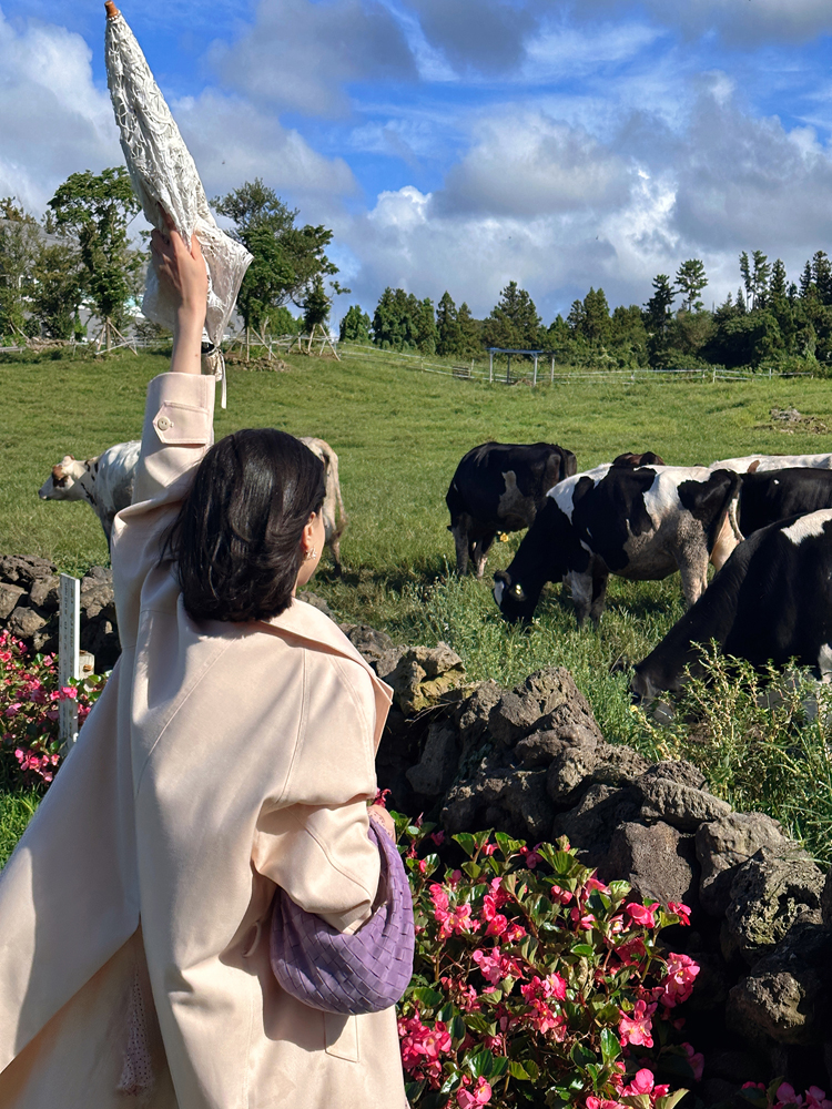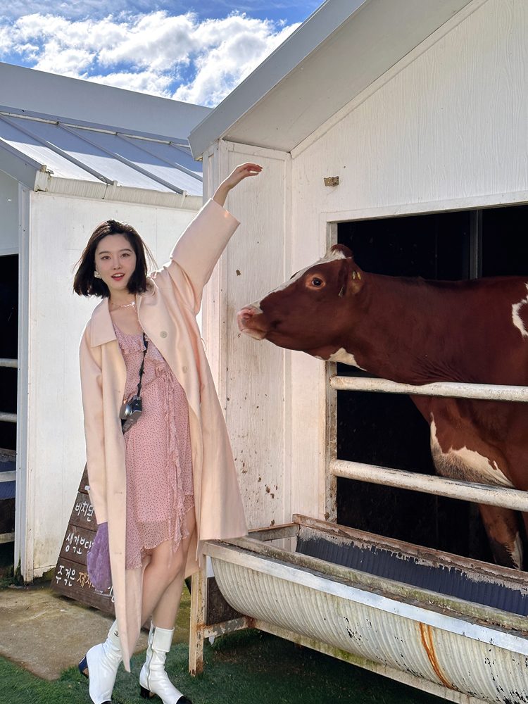 DUO智仙生 芭比粉之袍 粉色山茶羊毛混纺宽松长款文艺风衣