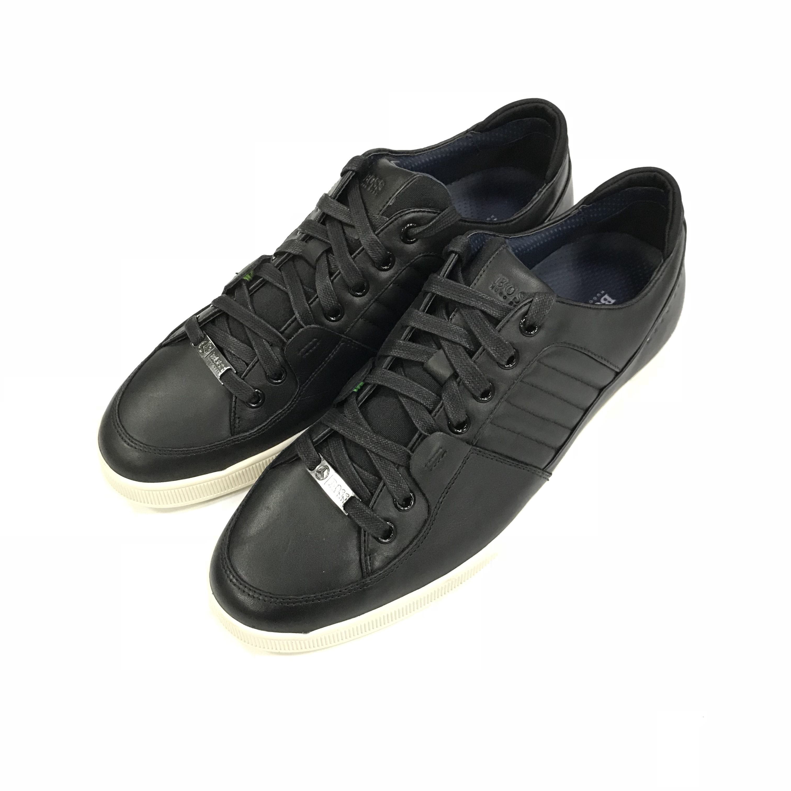 BOSS 男鞋 春夏季 奔驰定制款 板鞋 牛皮低帮系带休闲运动男鞋 两款颜色 黑色/黑白色(鞋底颜色区别)原产地:孟加拉 。款式时尚简洁,奔驰独家定制款,高端洋气款男士休闲鞋。材质:头层软牛皮,皮料质感细腻,脚感舒适,兼具高强韧性与耐用性。皮质光泽醒目,手感舒适,易穿脱。防滑橡胶大底,耐磨兴强,让您行走轻松自如。