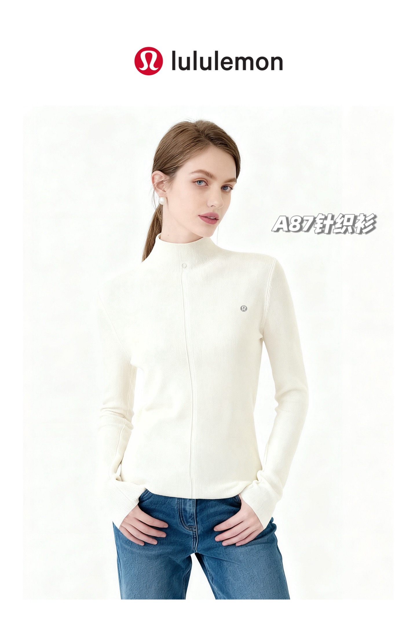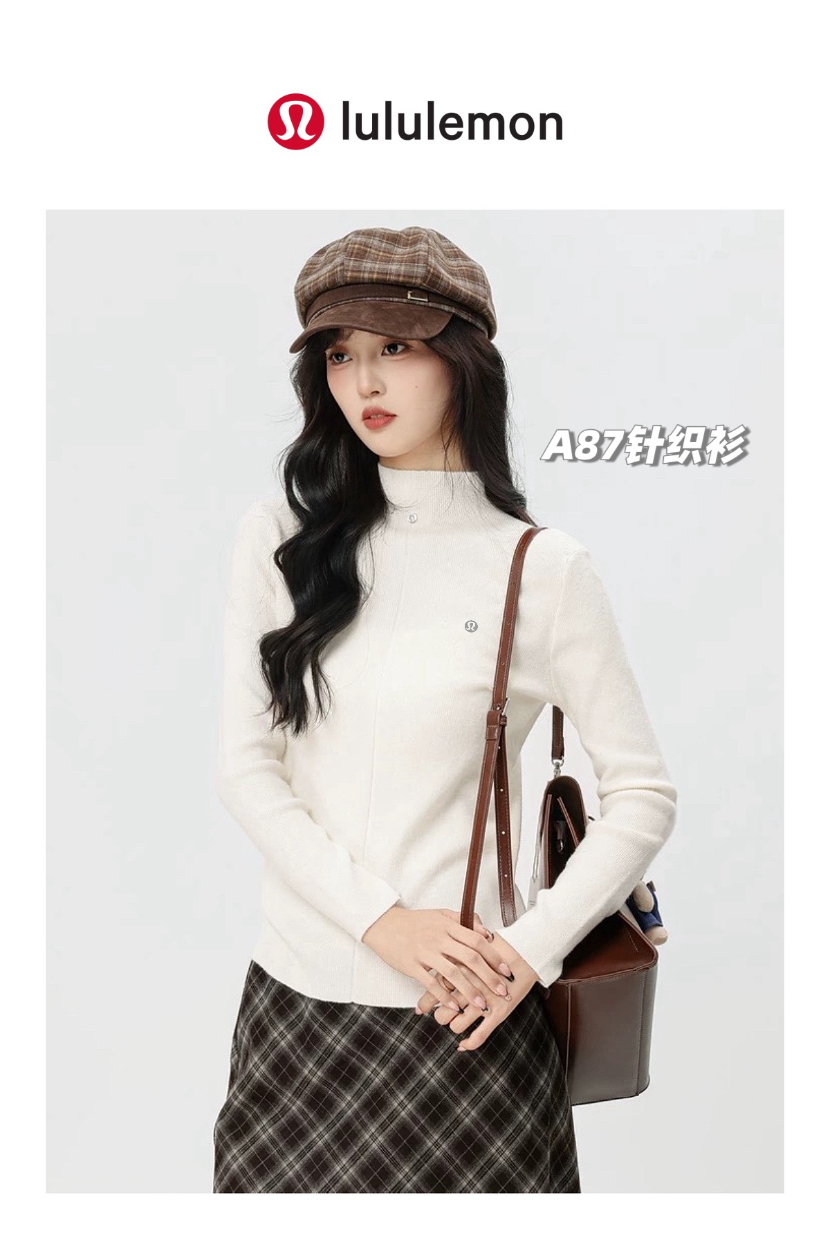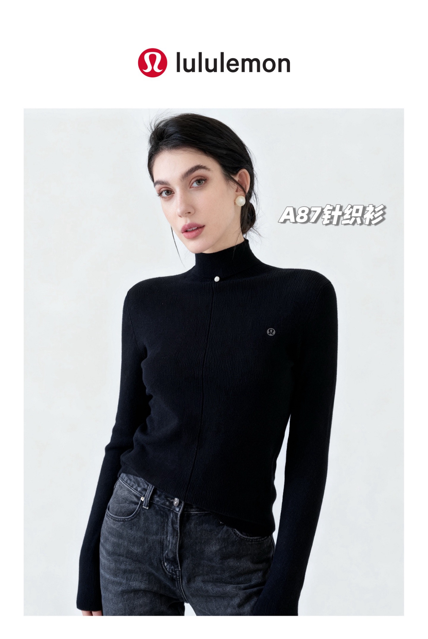 一包2件装,高端必入!LULU2025秋季新款小羊绒立领针织衫,高弹力长袖修身毛衣!这款版型上身真的超级好看,有厚度哦,冬天刚需品!