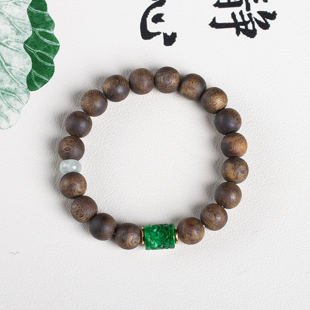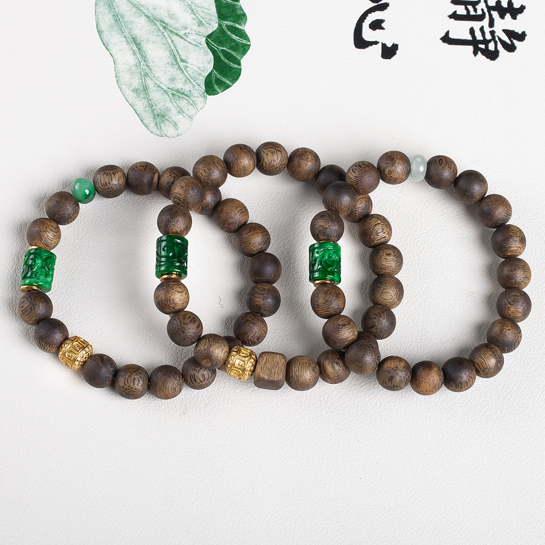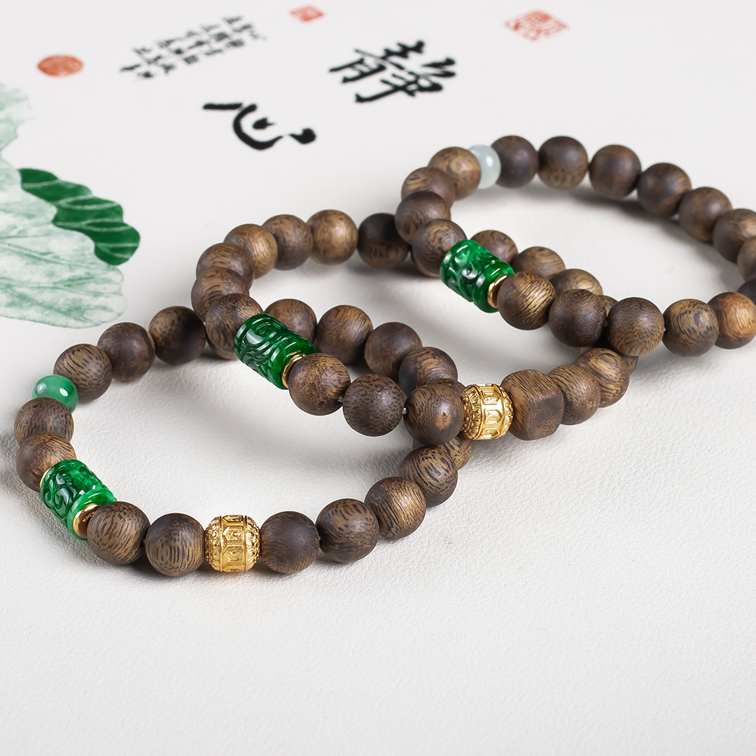 xy0656沉香+翡翠手串,天然沉香约9.3mm,原色原味,香味自然清甜,国风新中式穿搭,款式典雅,清香怡人,翠玉养身。