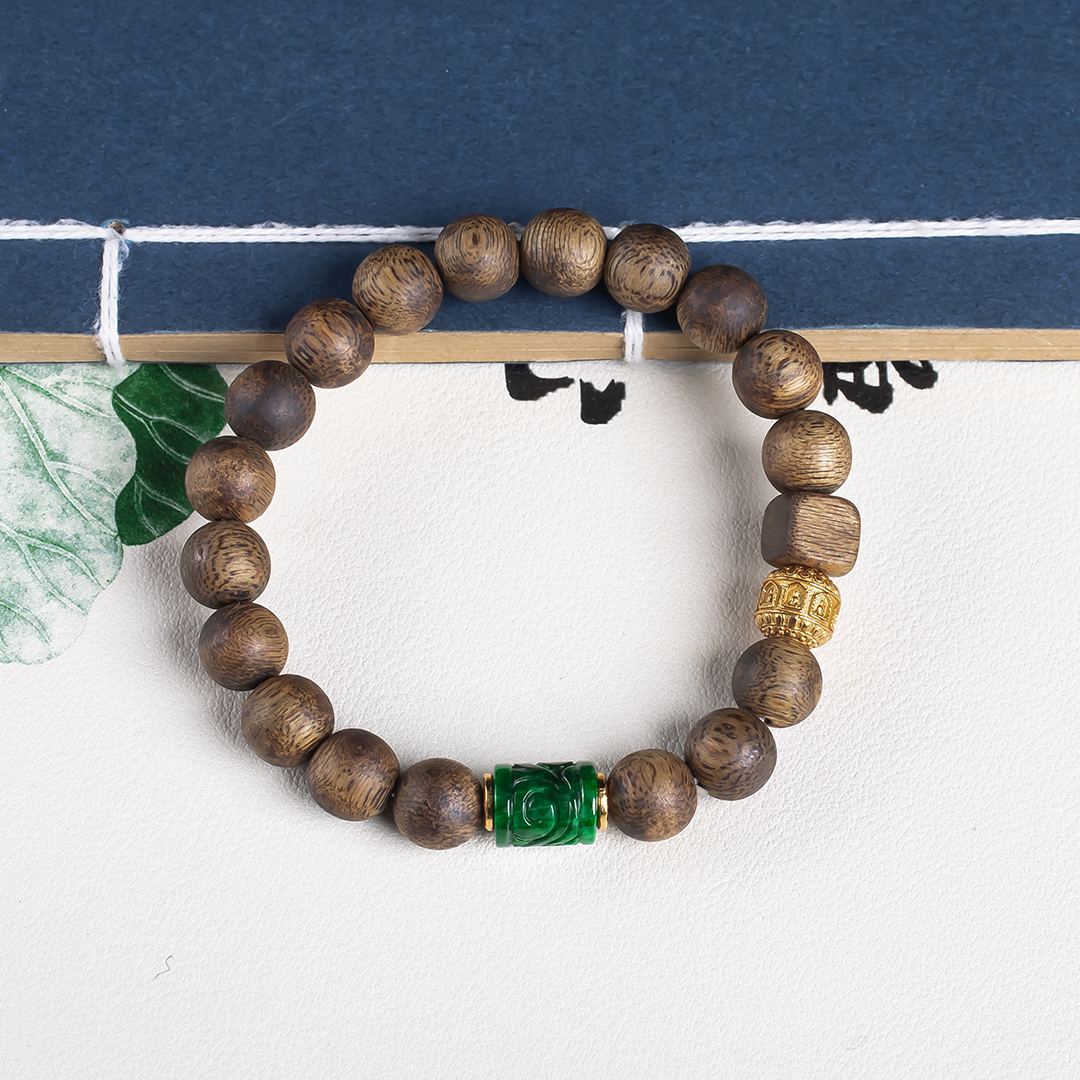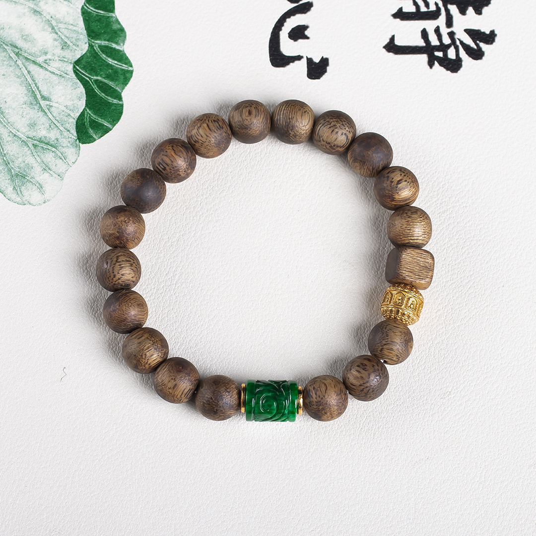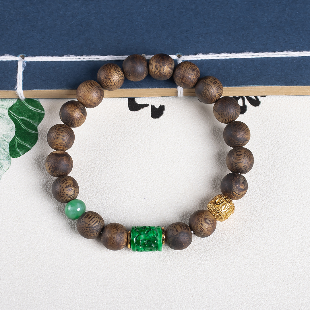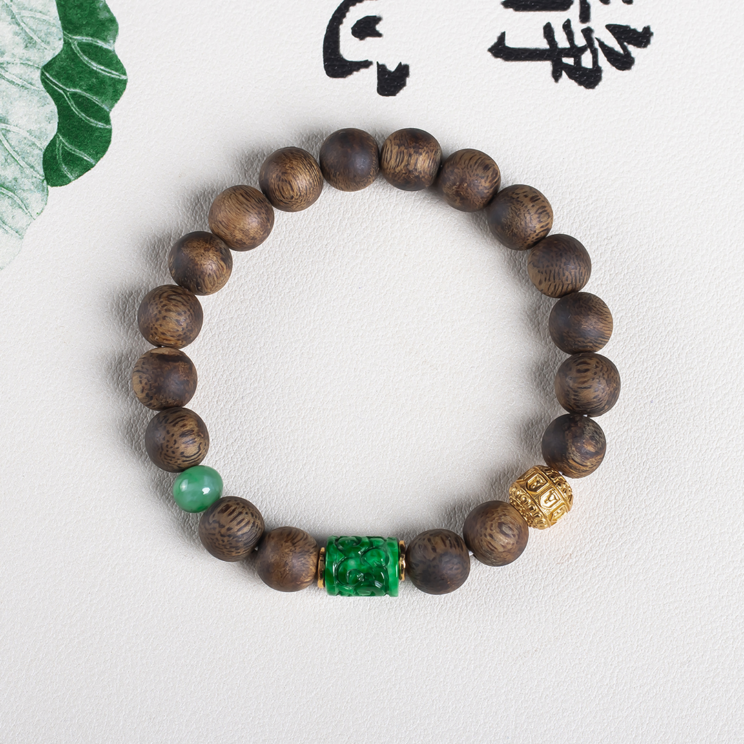 xy0656沉香+翡翠手串,天然沉香约9.3mm,原色原味,香味自然清甜,国风新中式穿搭,款式典雅,清香怡人,翠玉养身。