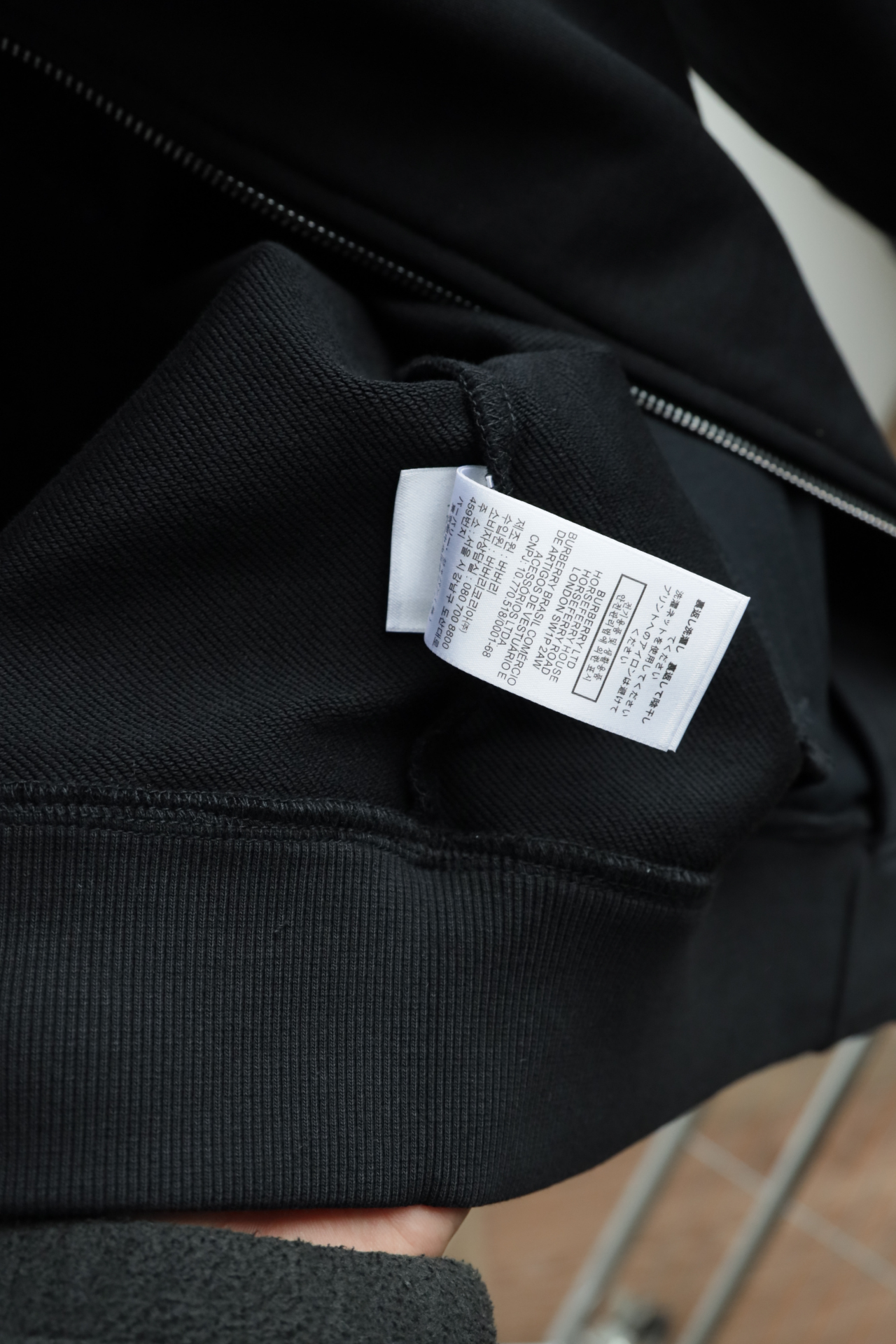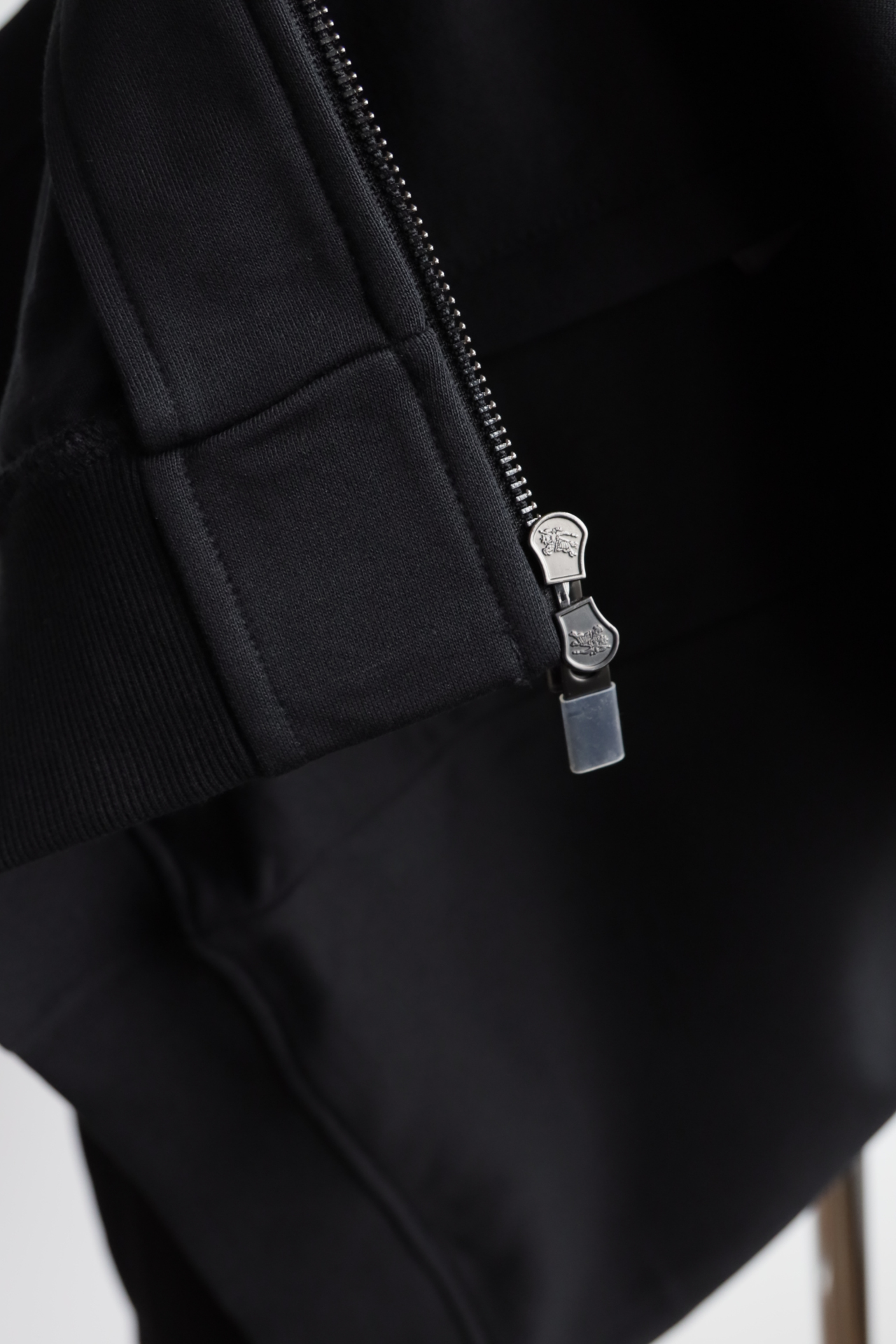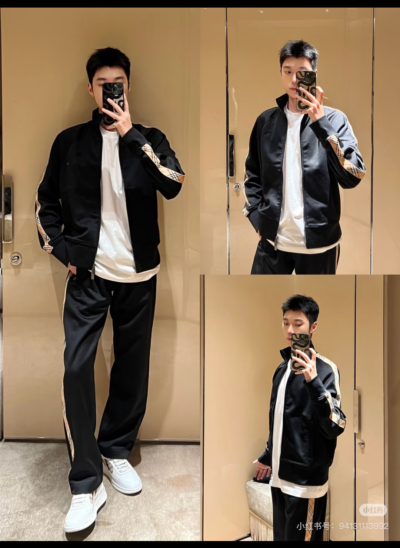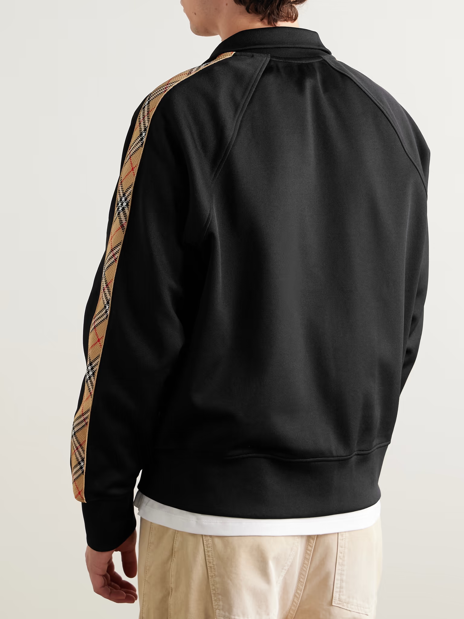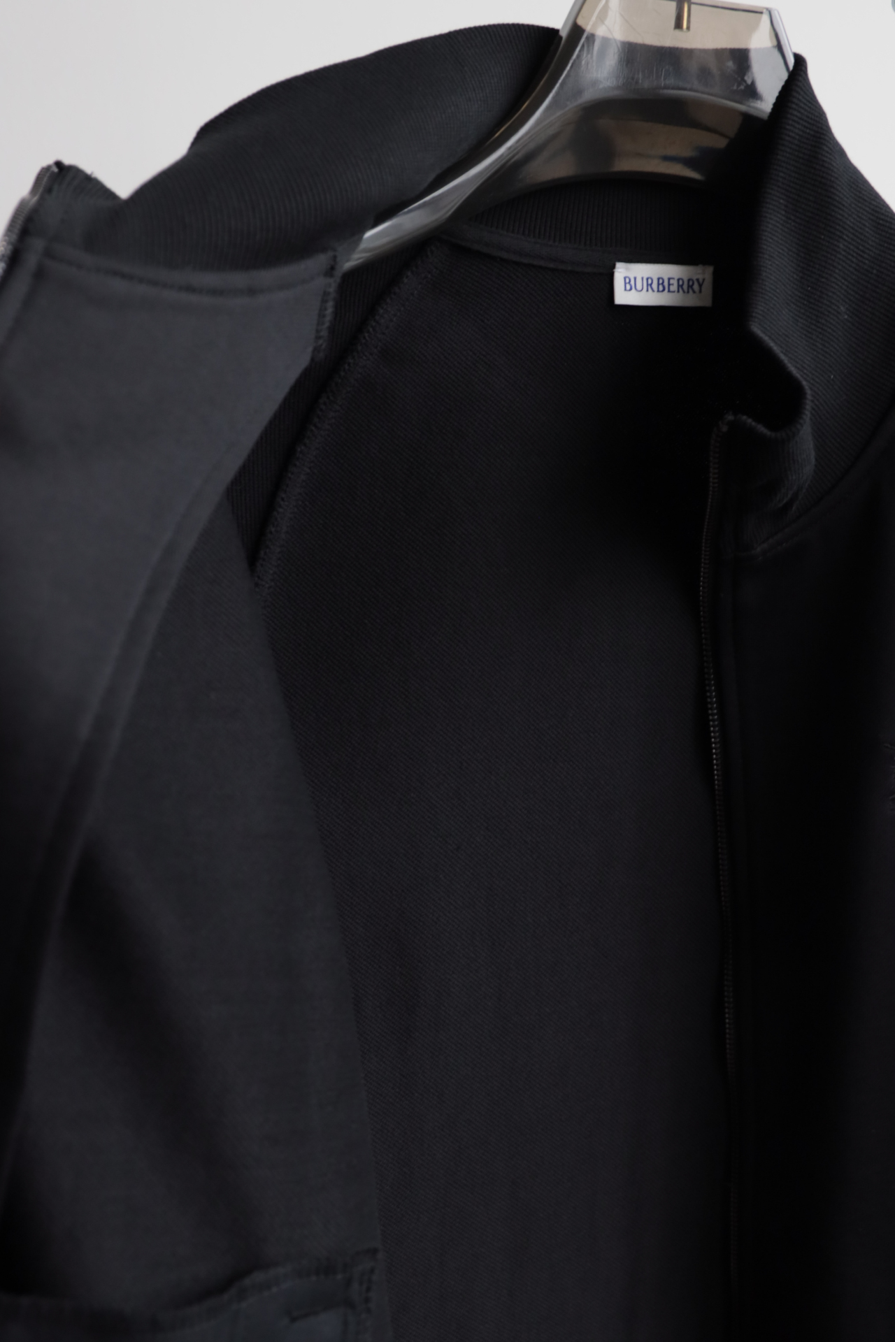 这件立领拉链外套,全棉洗水,斜纹毛圈内里,将标志性格纹与纯黑面料巧妙碰撞,打破纯色的沉闷,又比满印格纹更显低调克制。