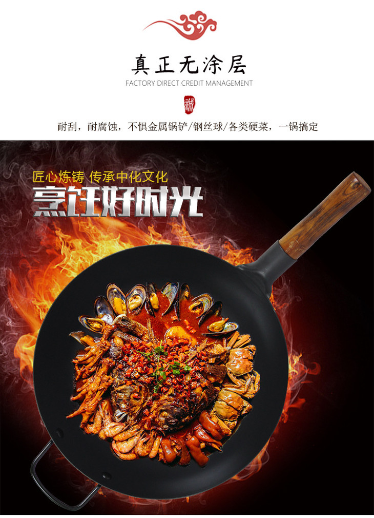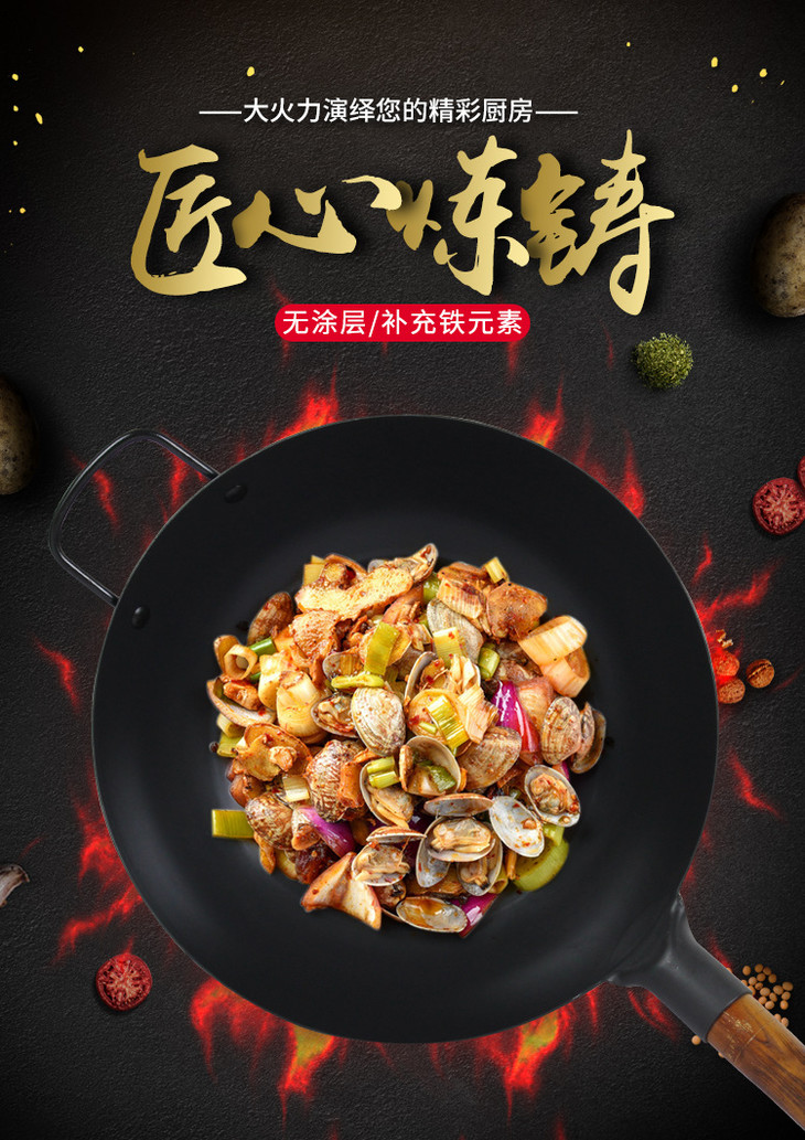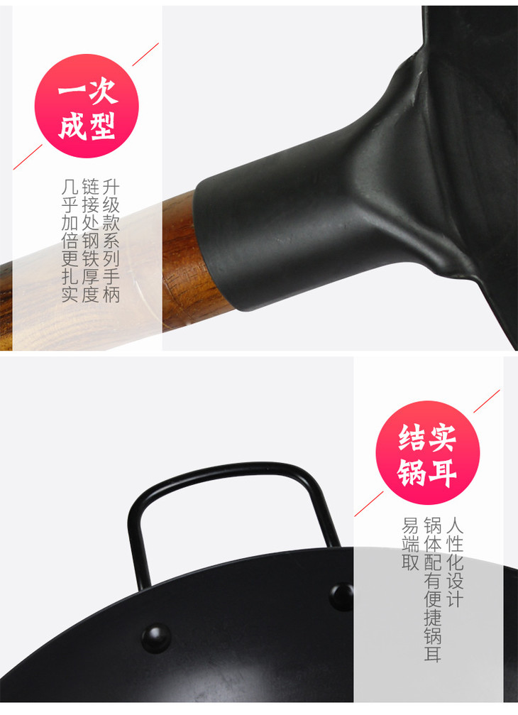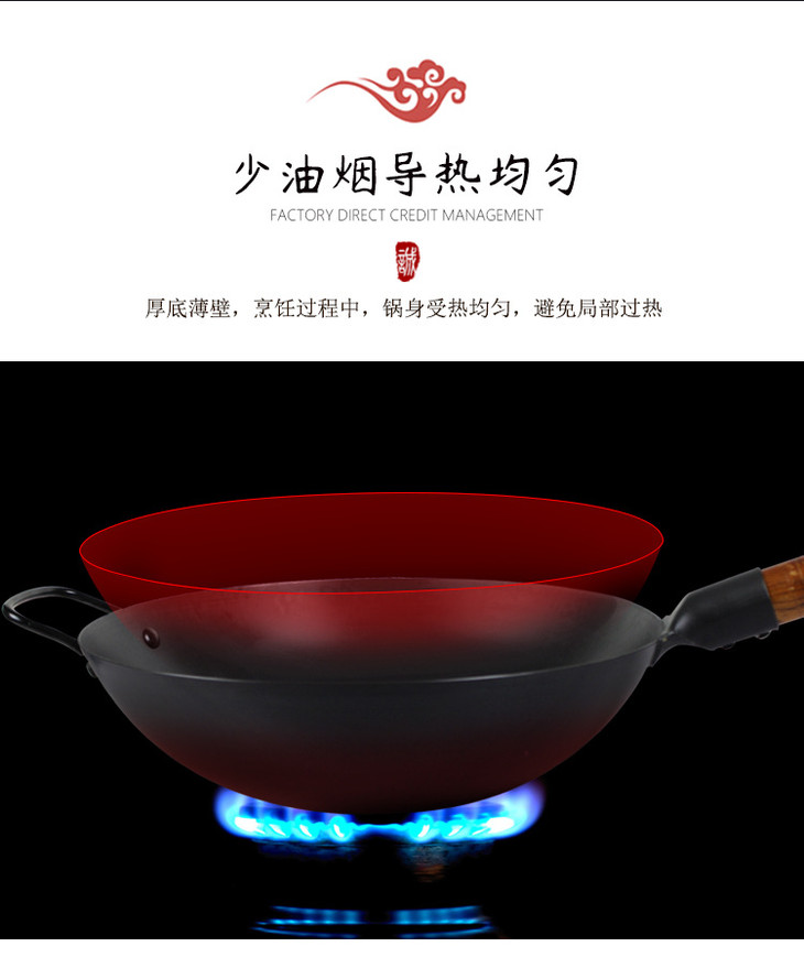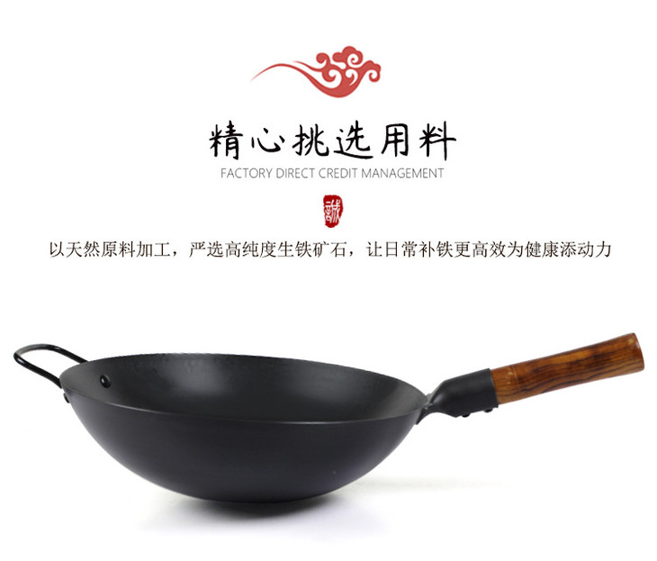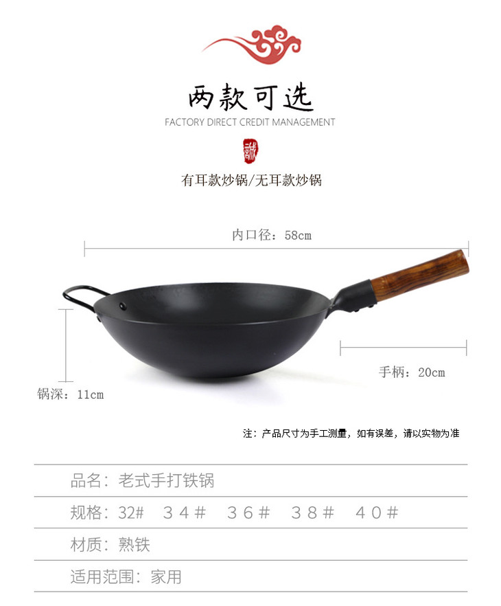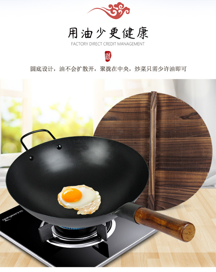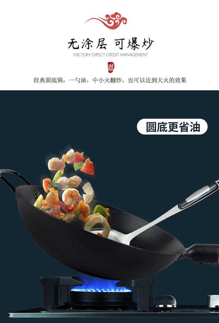 【炒锅】锻打铁锅章丘工艺手工炒锅熟铁老式铁锅无涂层不粘铁锅家用燃气灶