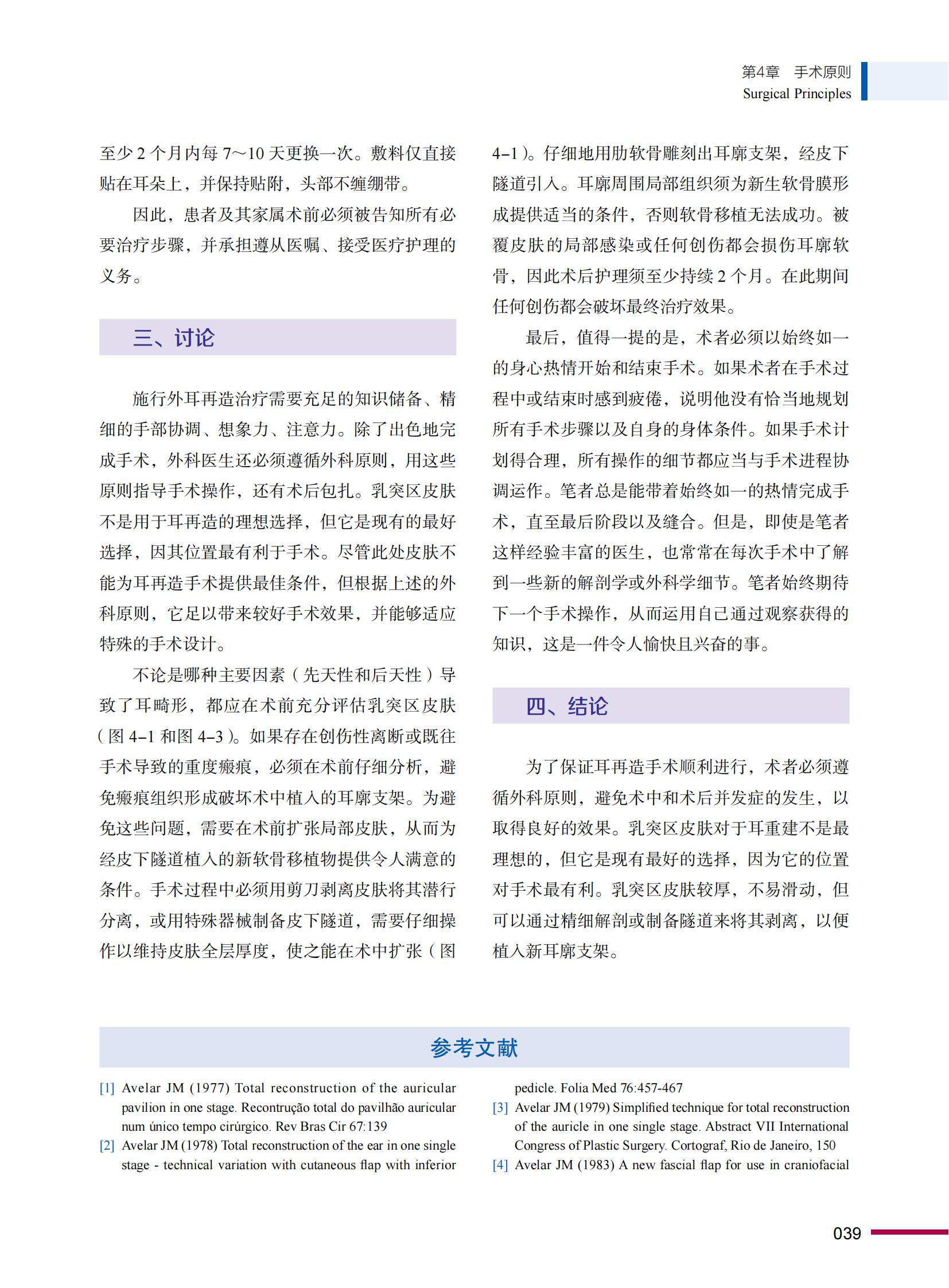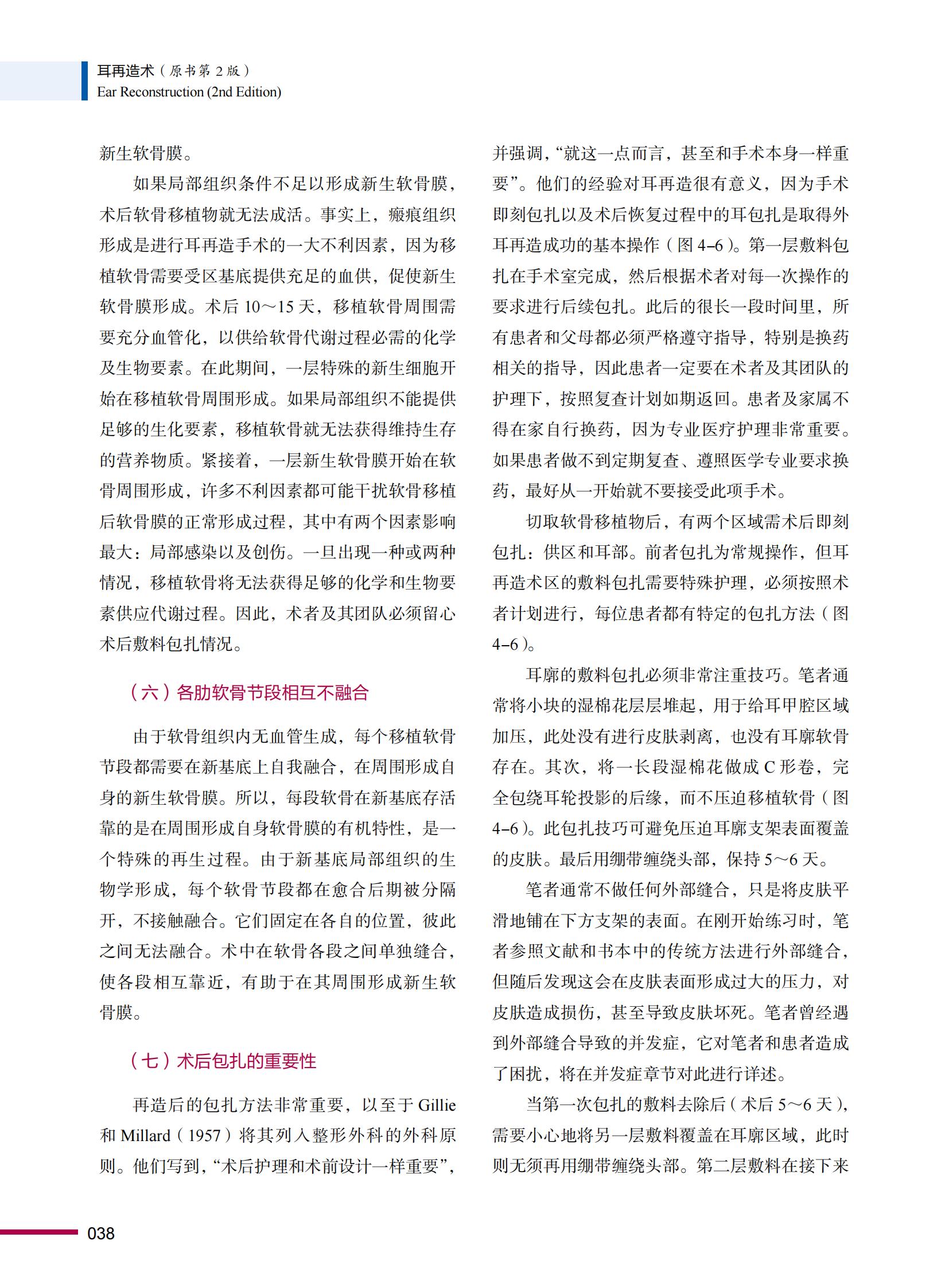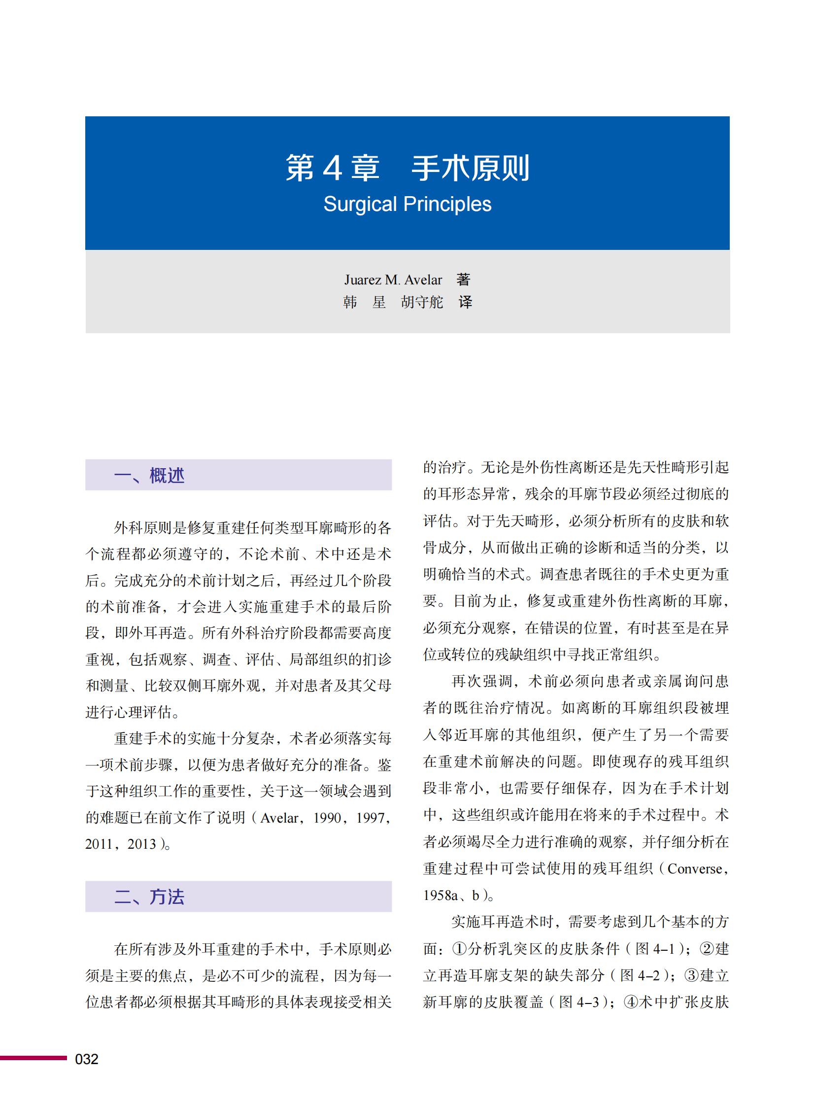 本书引进自Springer版部再造专家Juarez M.Avelar精心编著,为全新第2版,全书共18章,着重探讨了先天性小耳畸形。复重建手术的原则,围术期的设计、护理,手术步骤、术后并发症的预防,翻修手术及术后远期随访等内容。著者在前一版的基础上,拓展了耳屏及外耳道重建,后天性耳缺损修复重建,招风耳及巨大耳的矫正,不仅引证了大量文献,还融入了自身临床工作的经验与反思。本书对想要开展和已经开展耳部再造综合治疗的医生具有重要的临床参考价值,对小耳畸形领域的初学者有良好的引导作用,对已从事耳部再造多年的整形科,耳鼻咽喉科医生亦可从中获得经验和查漏补缺。