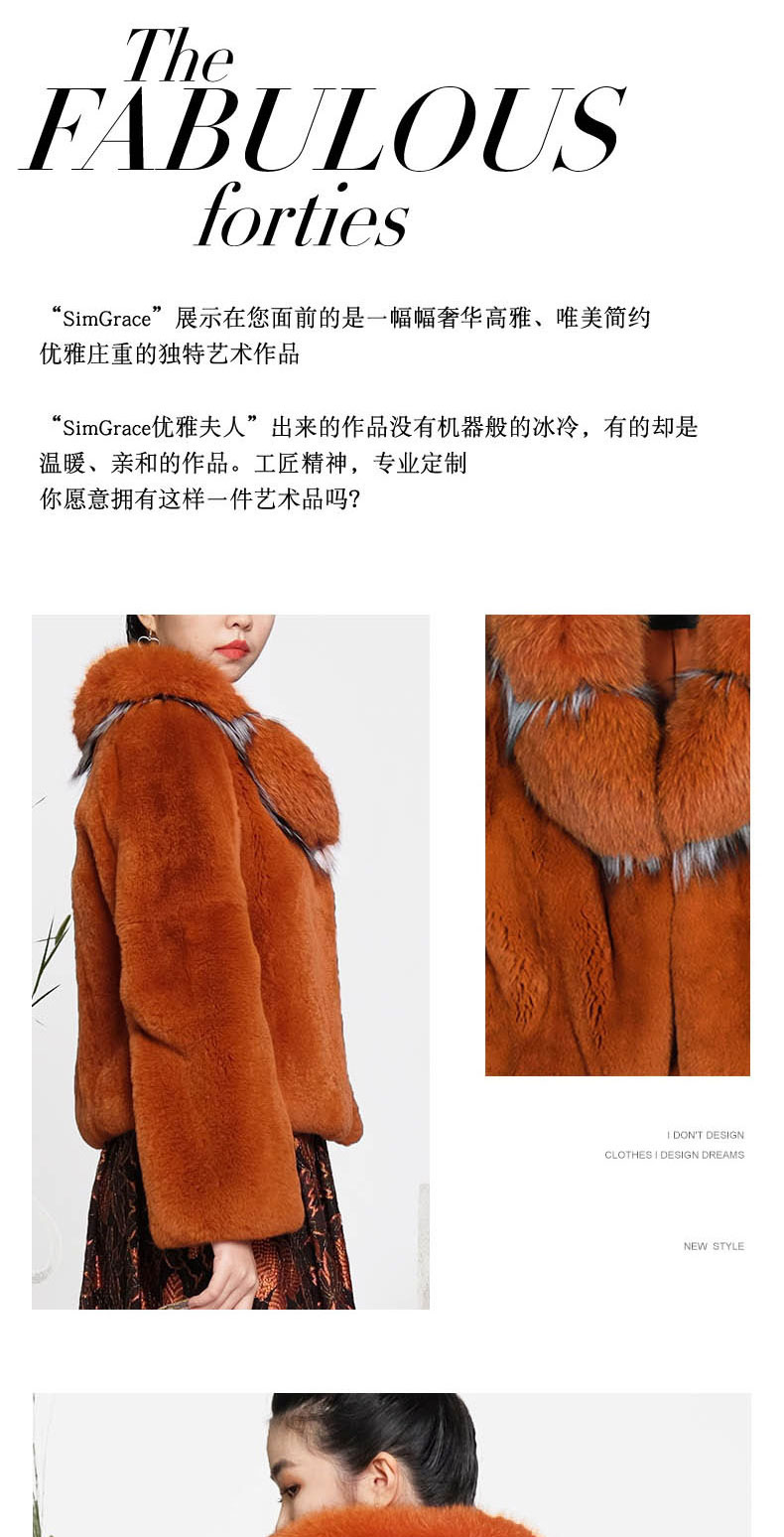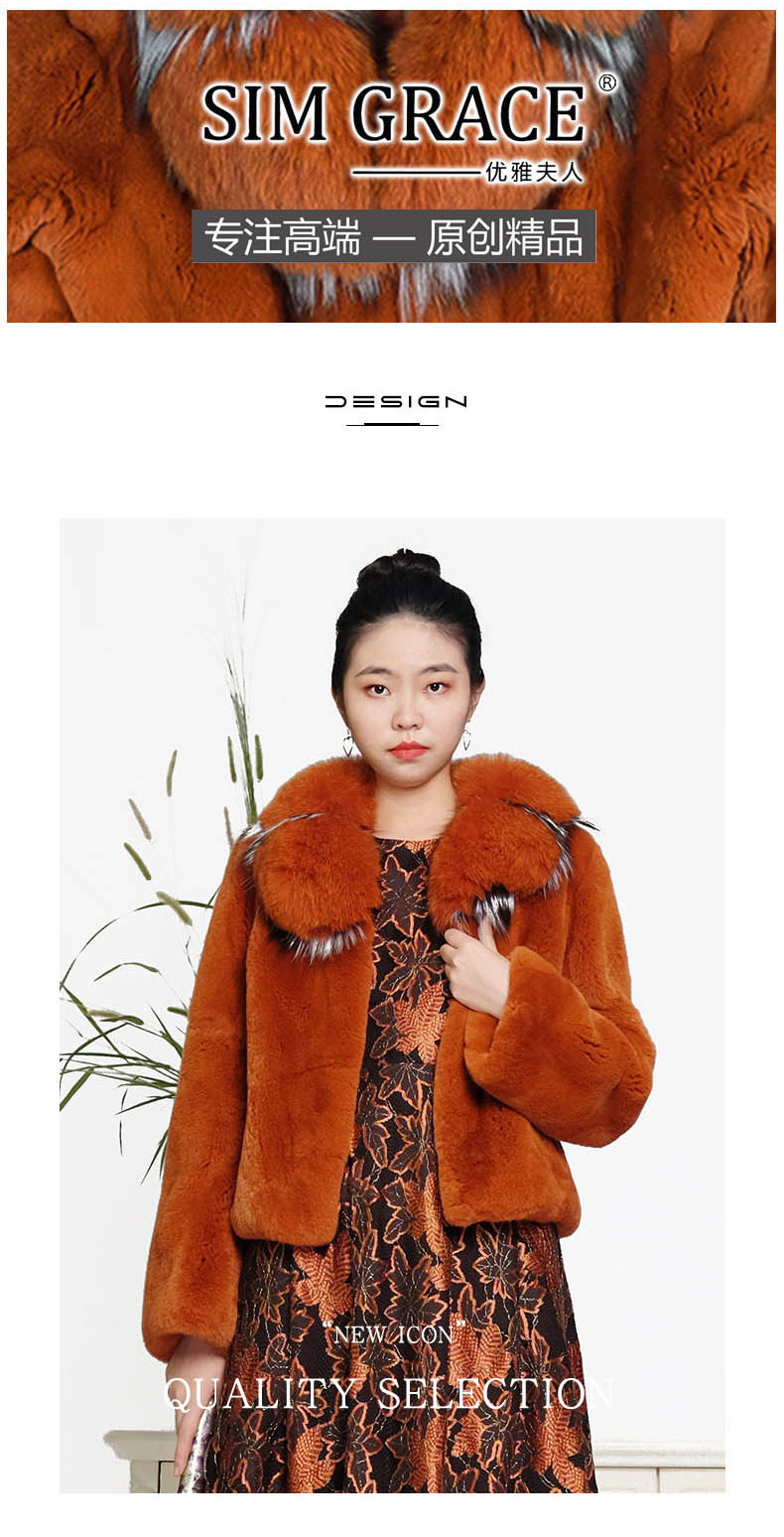 SIM GRACE 优雅夫人 进口西班牙獭兔毛狐狸毛镶银狐毛边短款外套