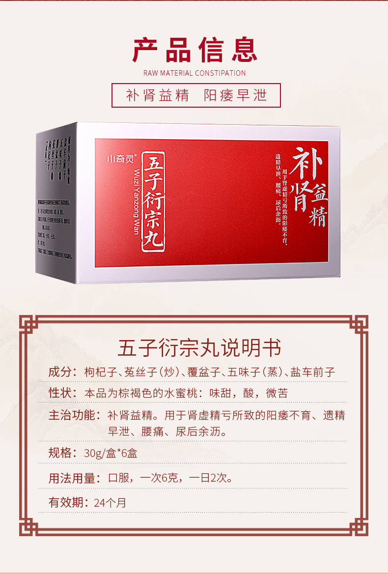 硬久小奇灵五子洐宗丸衍生治疗早泄男不持久阳痿肾虚补肾遗精中药