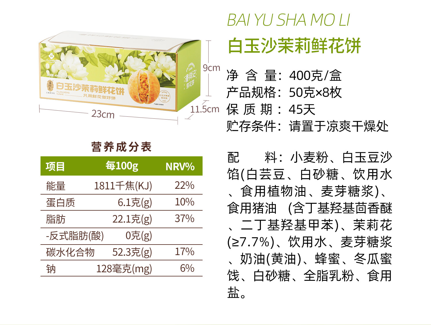 潘祥记旗舰店400g[茉莉鲜花饼]
