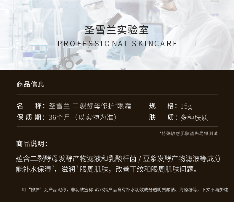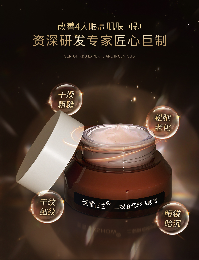 【对抗眼纹眼袋】圣雪兰二裂酵母修护眼霜15g 抗皱大眼袋 眼纹干纹鱼尾纹等眼部肌肤问题【买1送1】