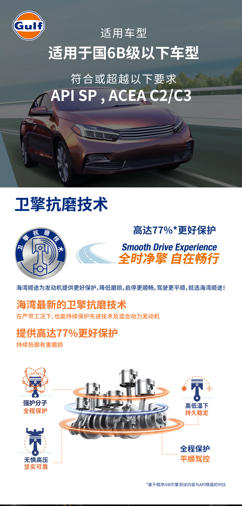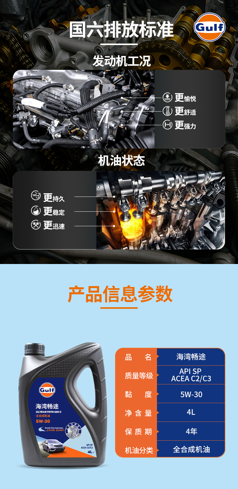 Gulf海湾畅途 5W-30 全合成机油 4L发动机润滑油自在畅行API SP