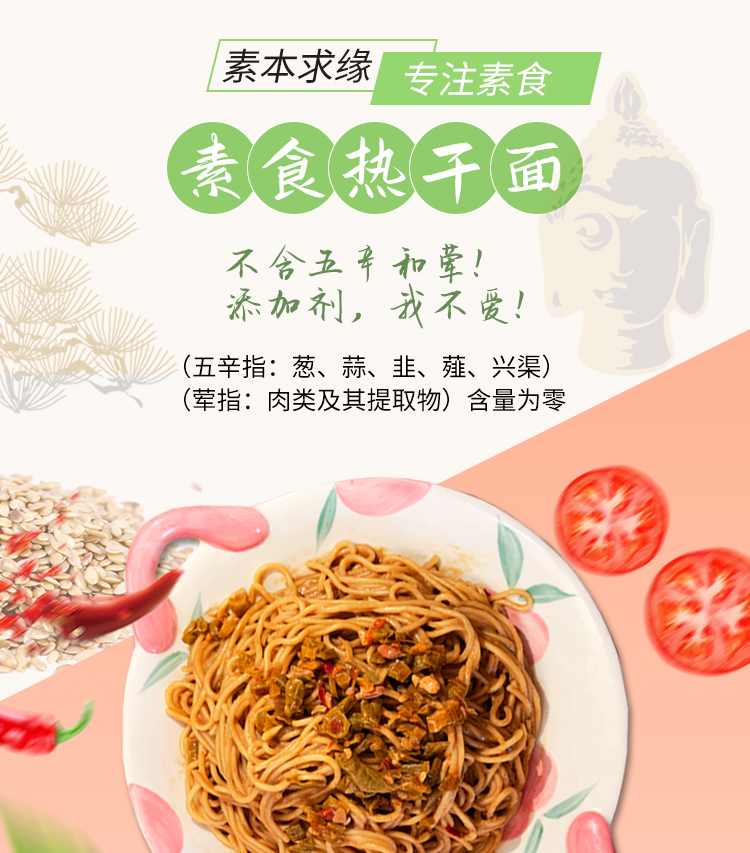 【5袋装】素食热干面 非油炸 无五辛不含添加剂