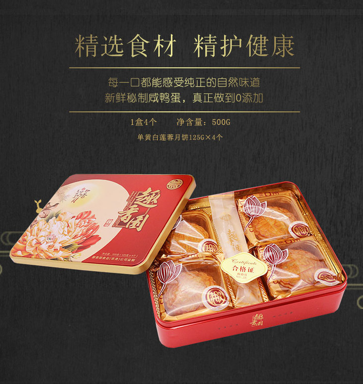 蛋黄白莲蓉月饼礼盒装500g(4个)(公司员工福利月饼)包邮