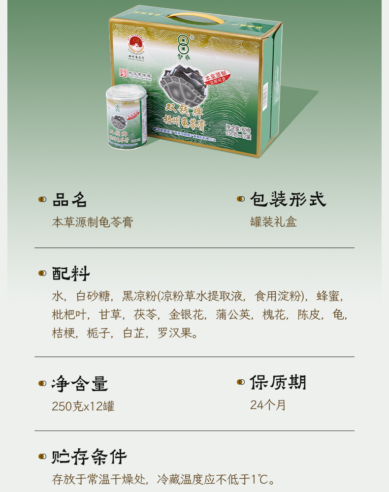 梧州双钱龟苓膏本草源制易拉罐礼盒250克*12罐装
