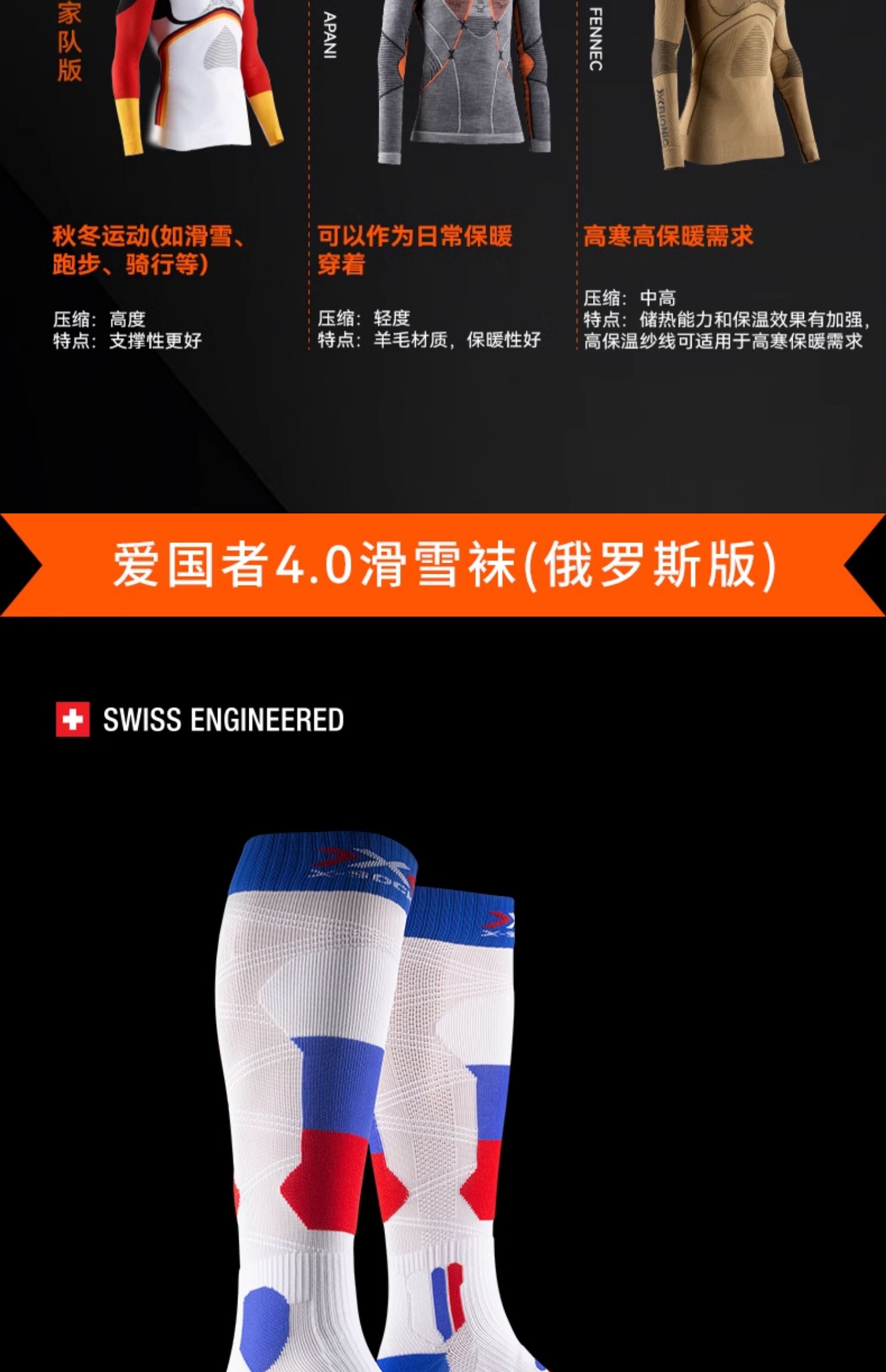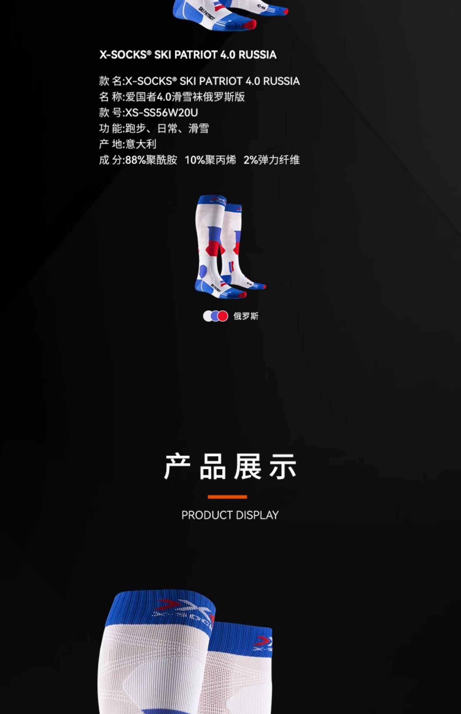 X-SOCKS XS-SS56W20U 爱国者4.0滑雪袜俄罗斯版
