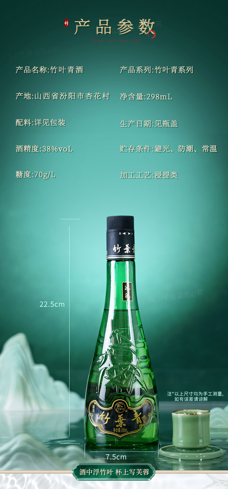 山西汾酒竹叶青酒 38度冰派竹叶青酒298mL*6瓶装