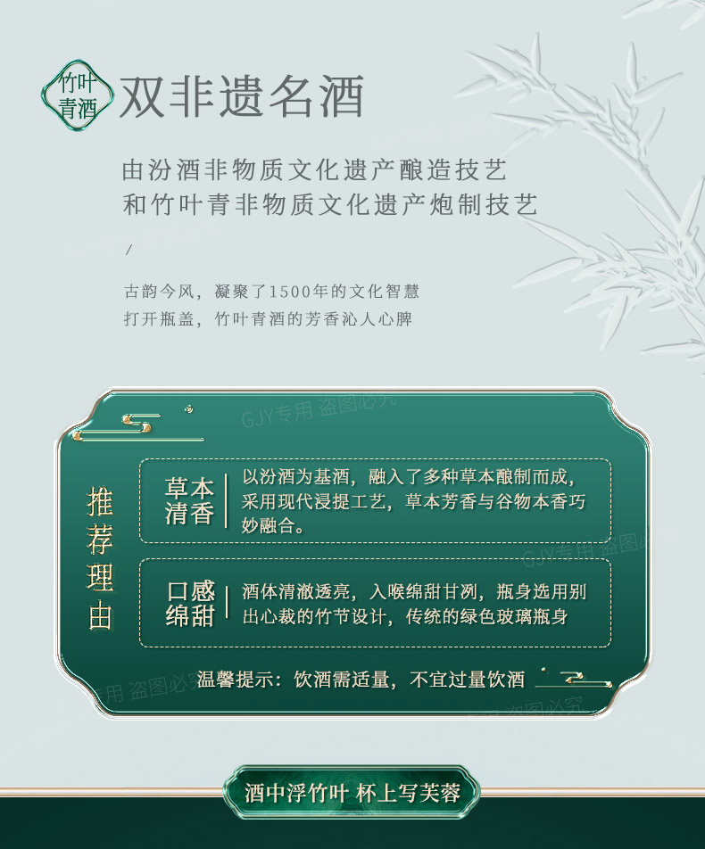 山西汾酒竹叶青酒 38度 玻竹475mL*6露酒
