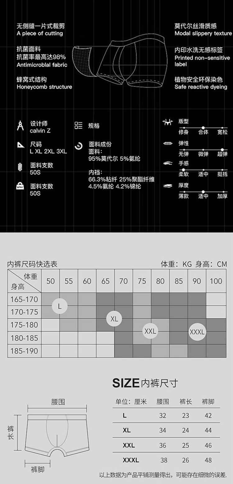 (秒杀39元3条)80支莫代尔 舒适无痕高弹舒适透气男士内裤 22902790