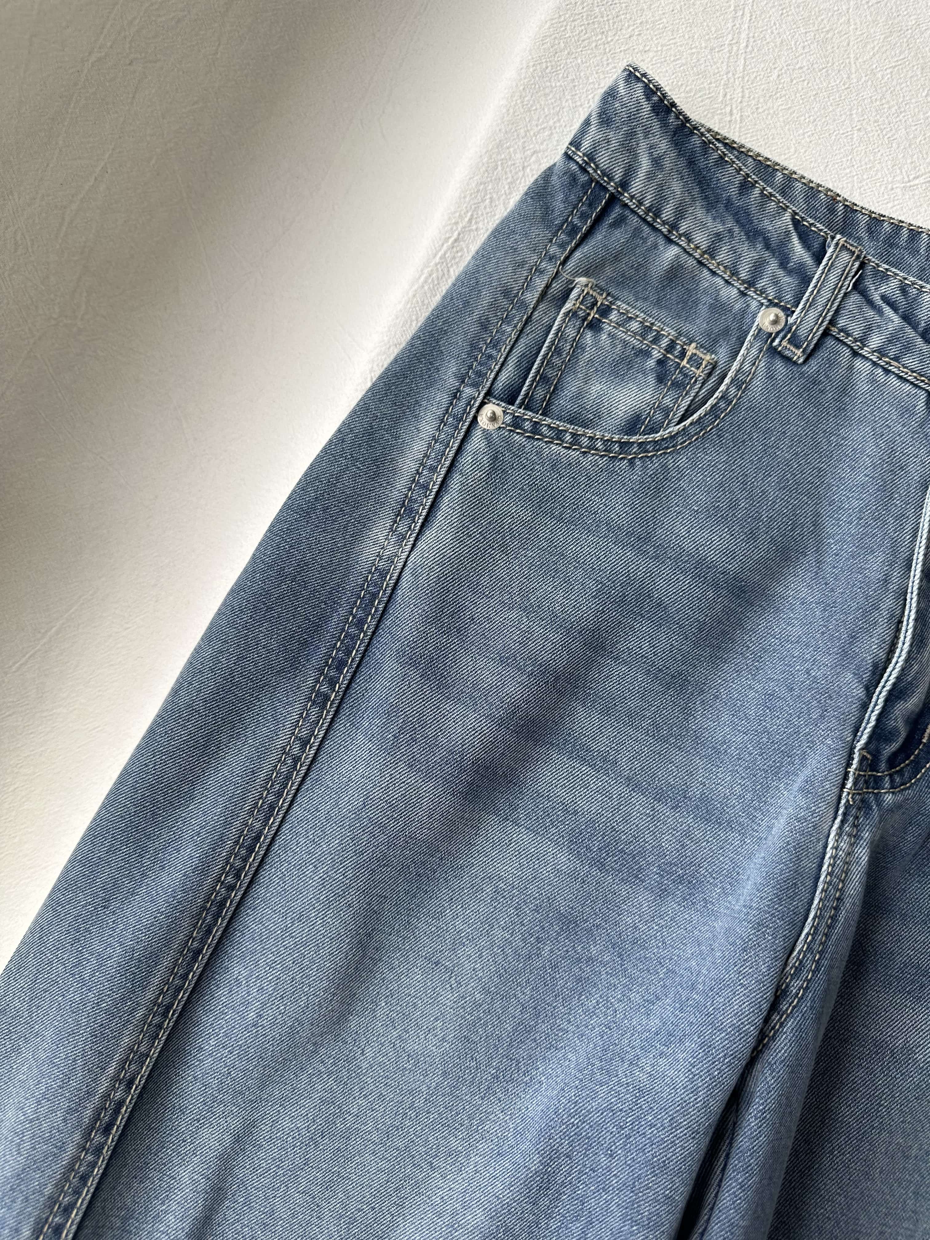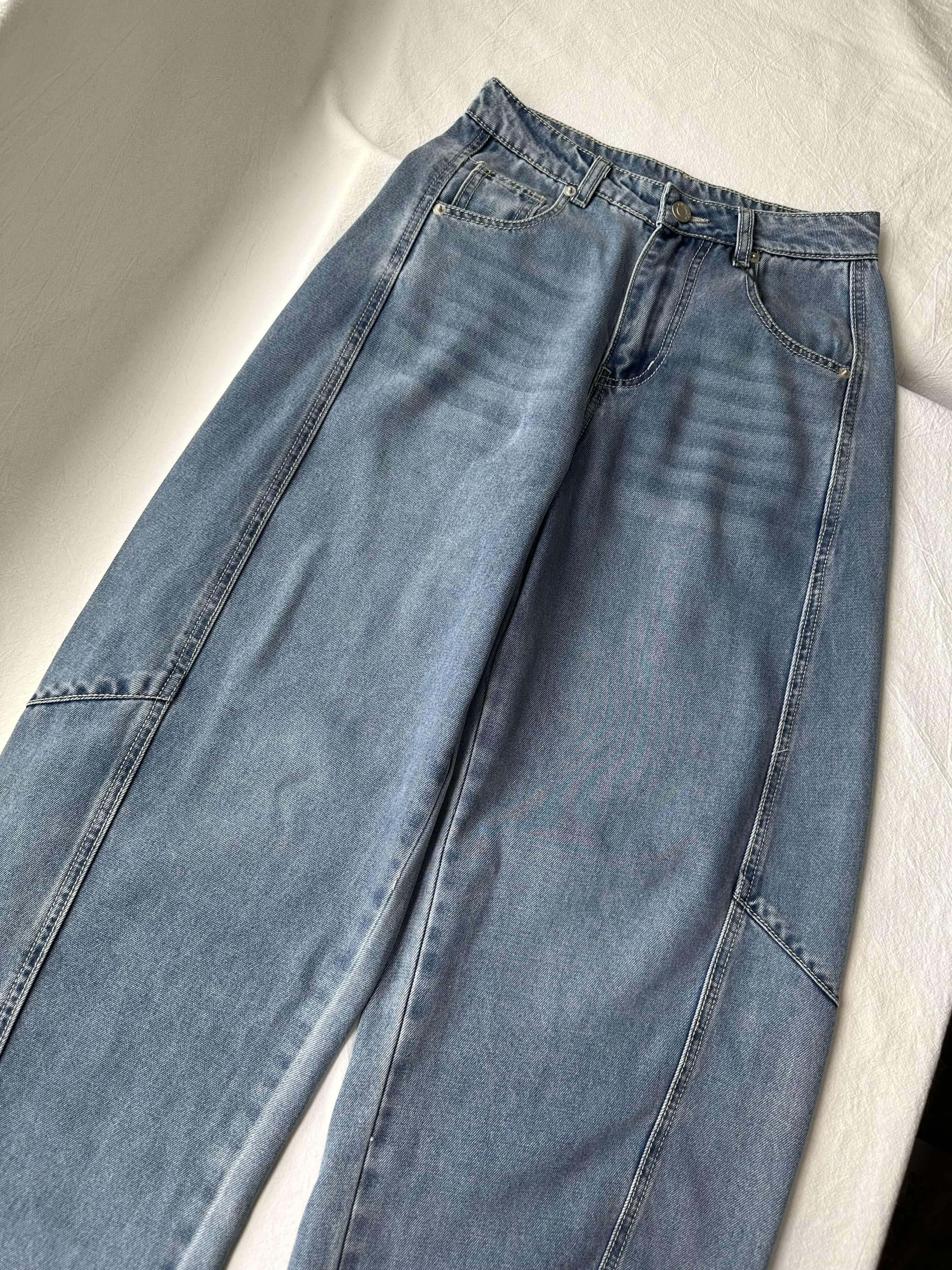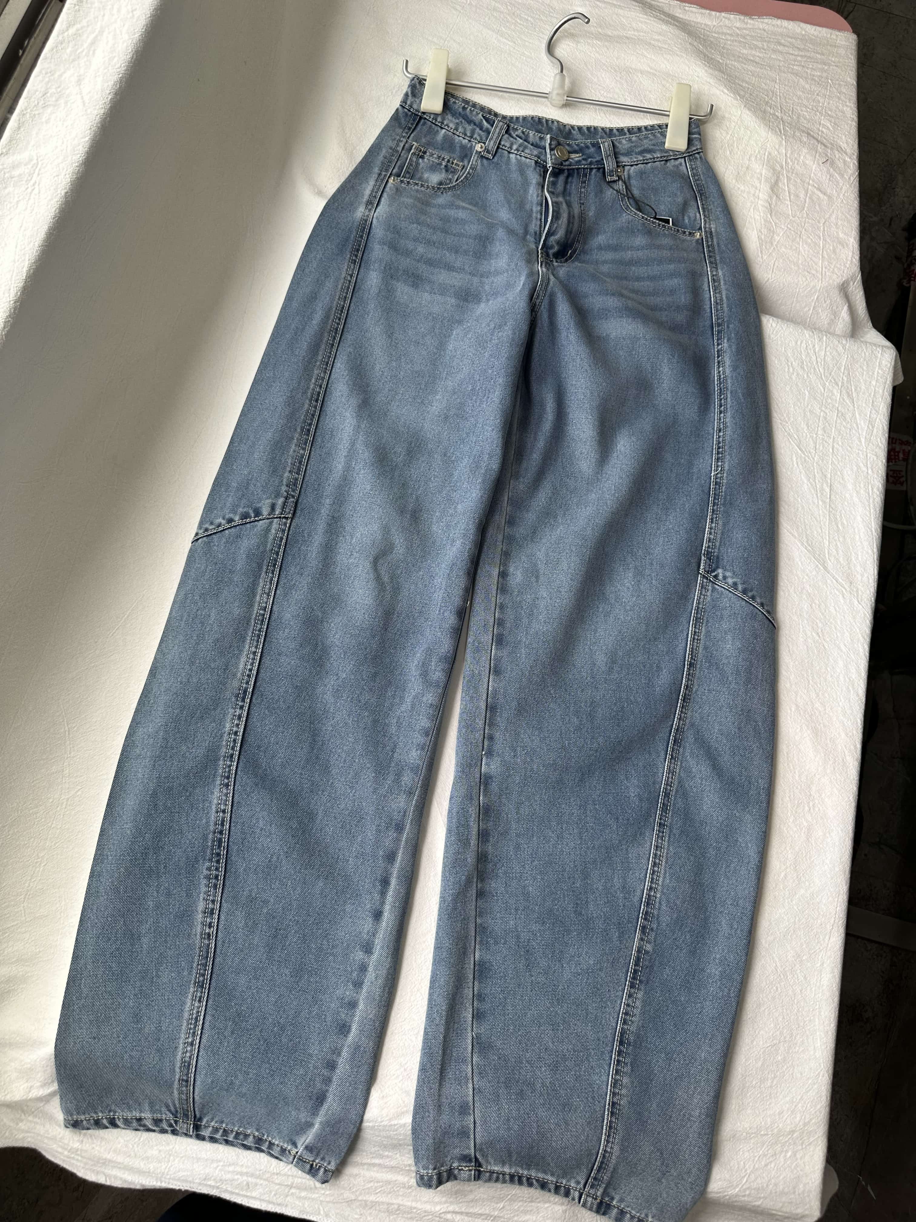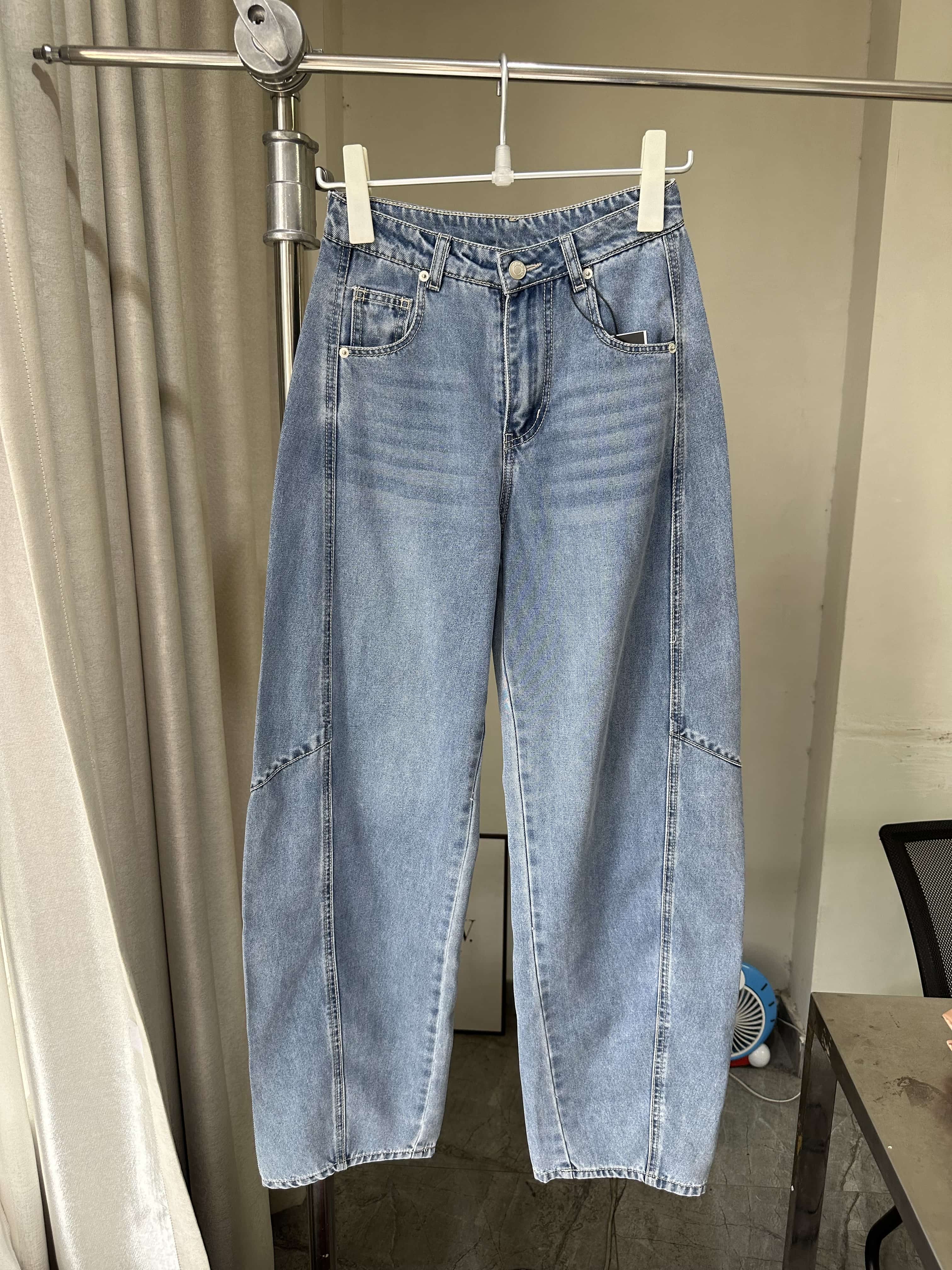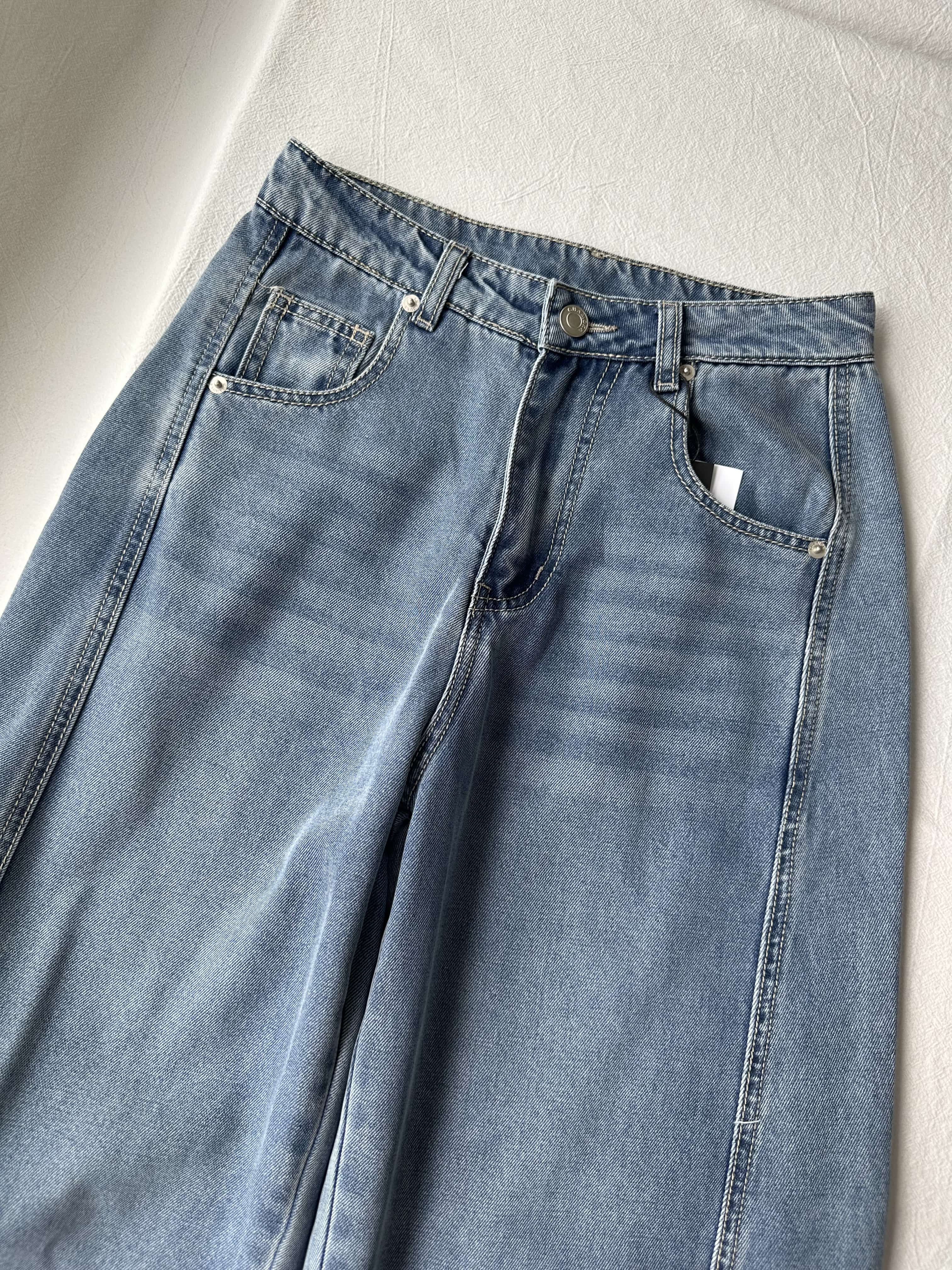 贝壳三 高腰拼接复古女休闲宽松香蕉裤水洗拖地天丝牛仔裤C041320