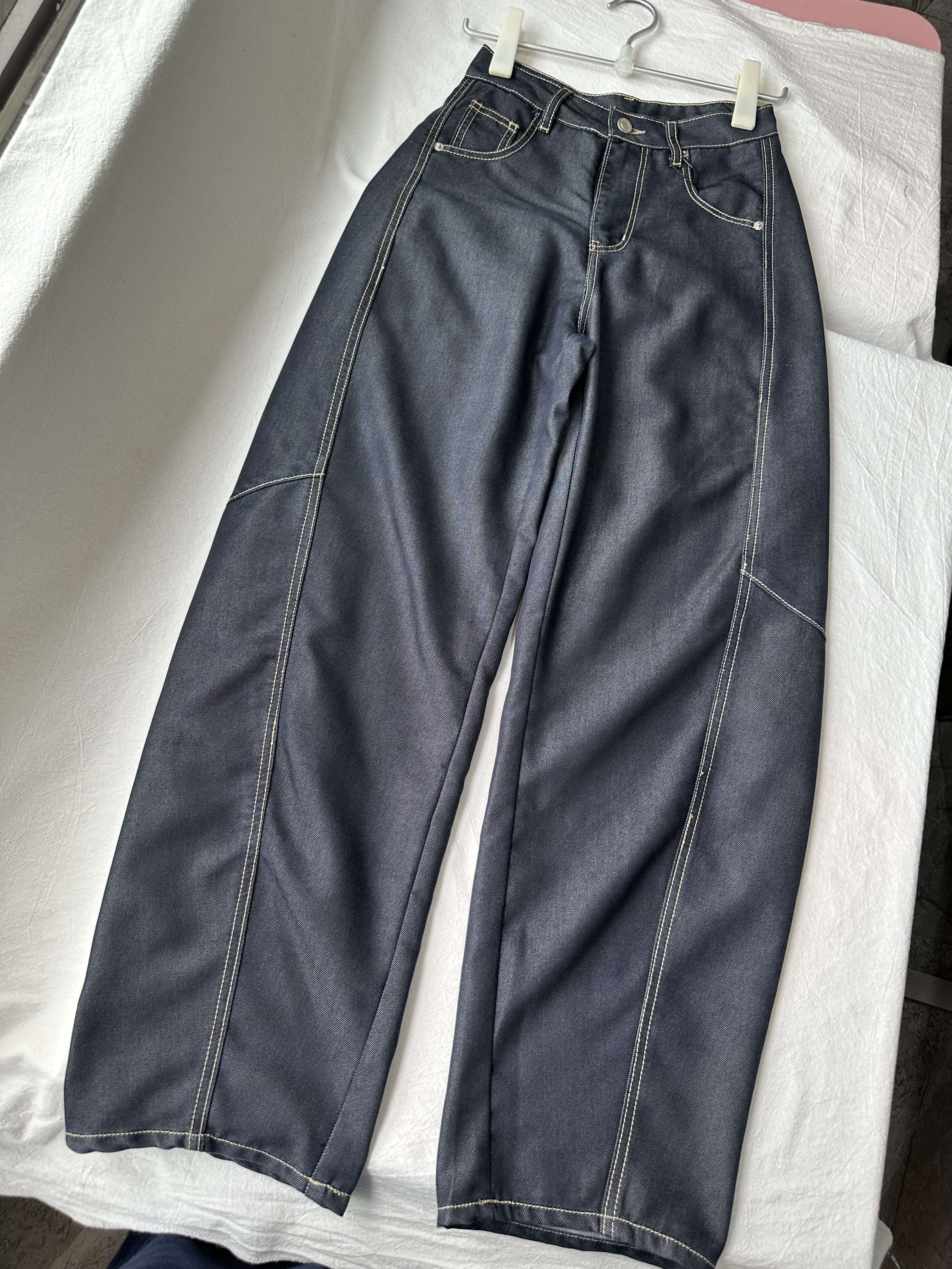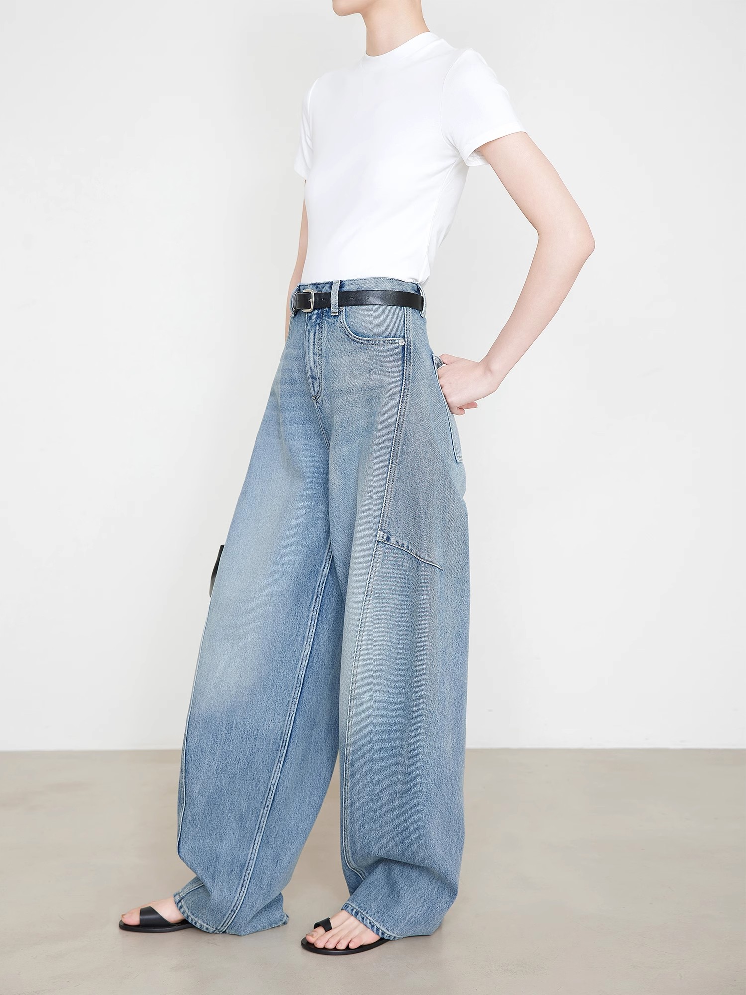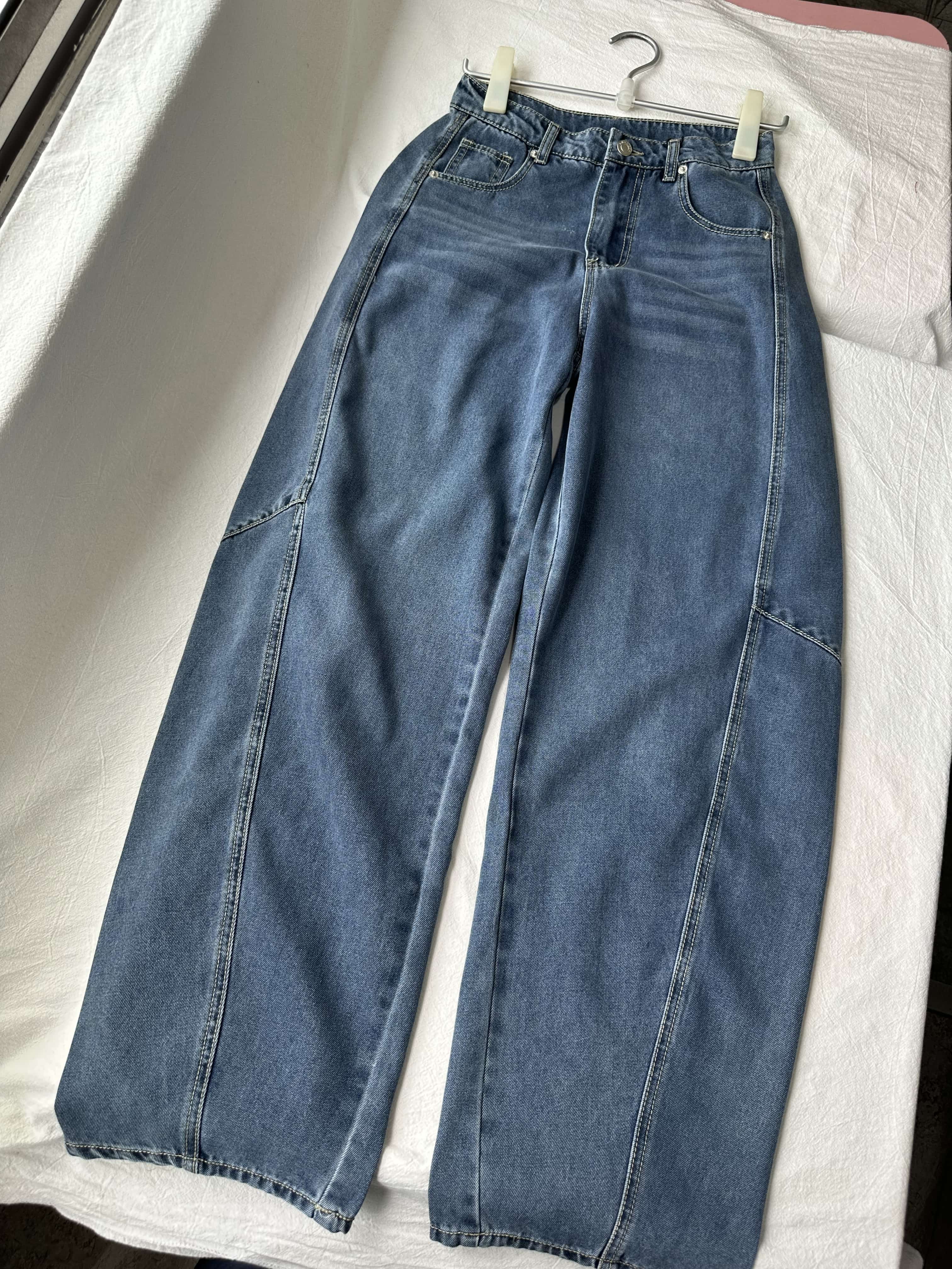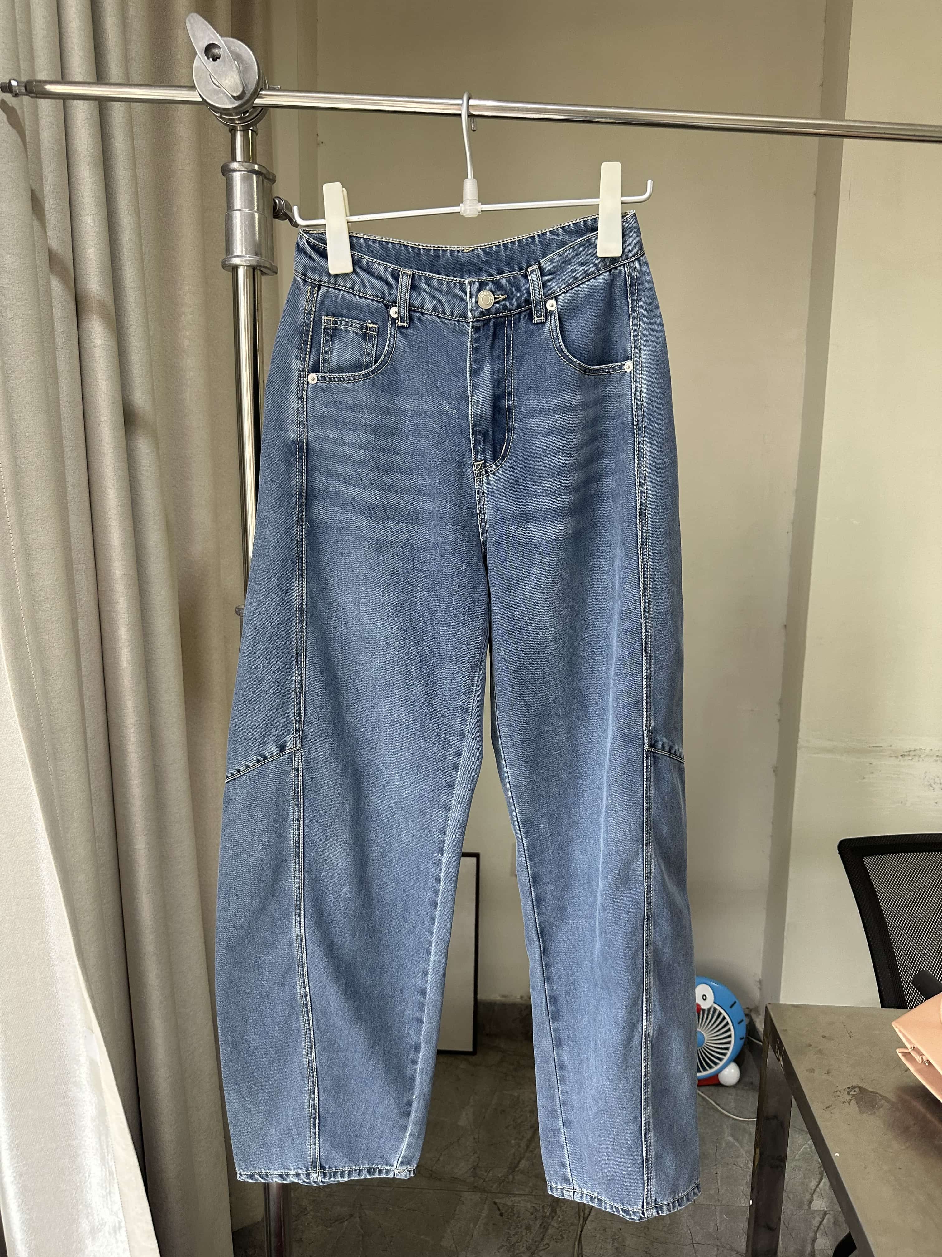 贝壳三 高腰拼接复古女休闲宽松香蕉裤水洗拖地天丝牛仔裤C041320