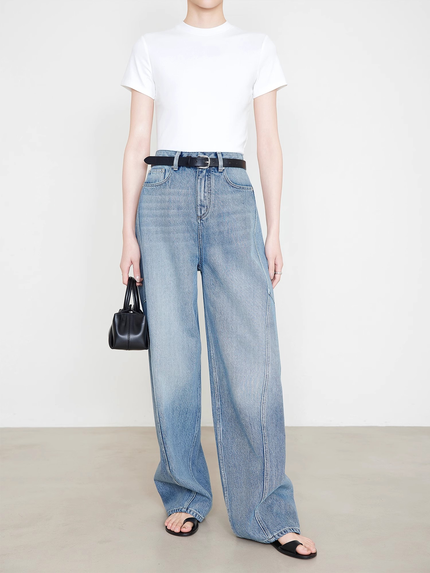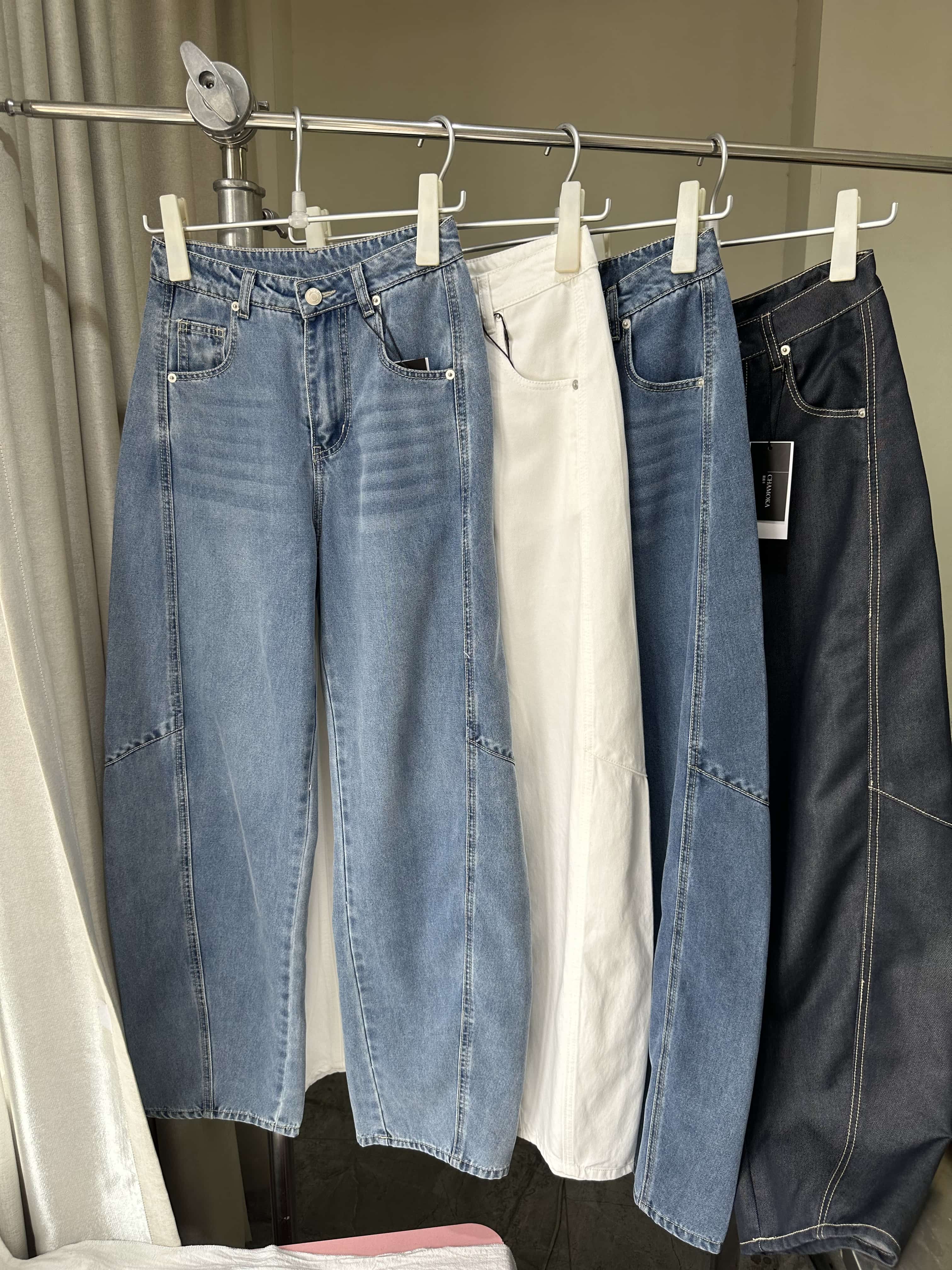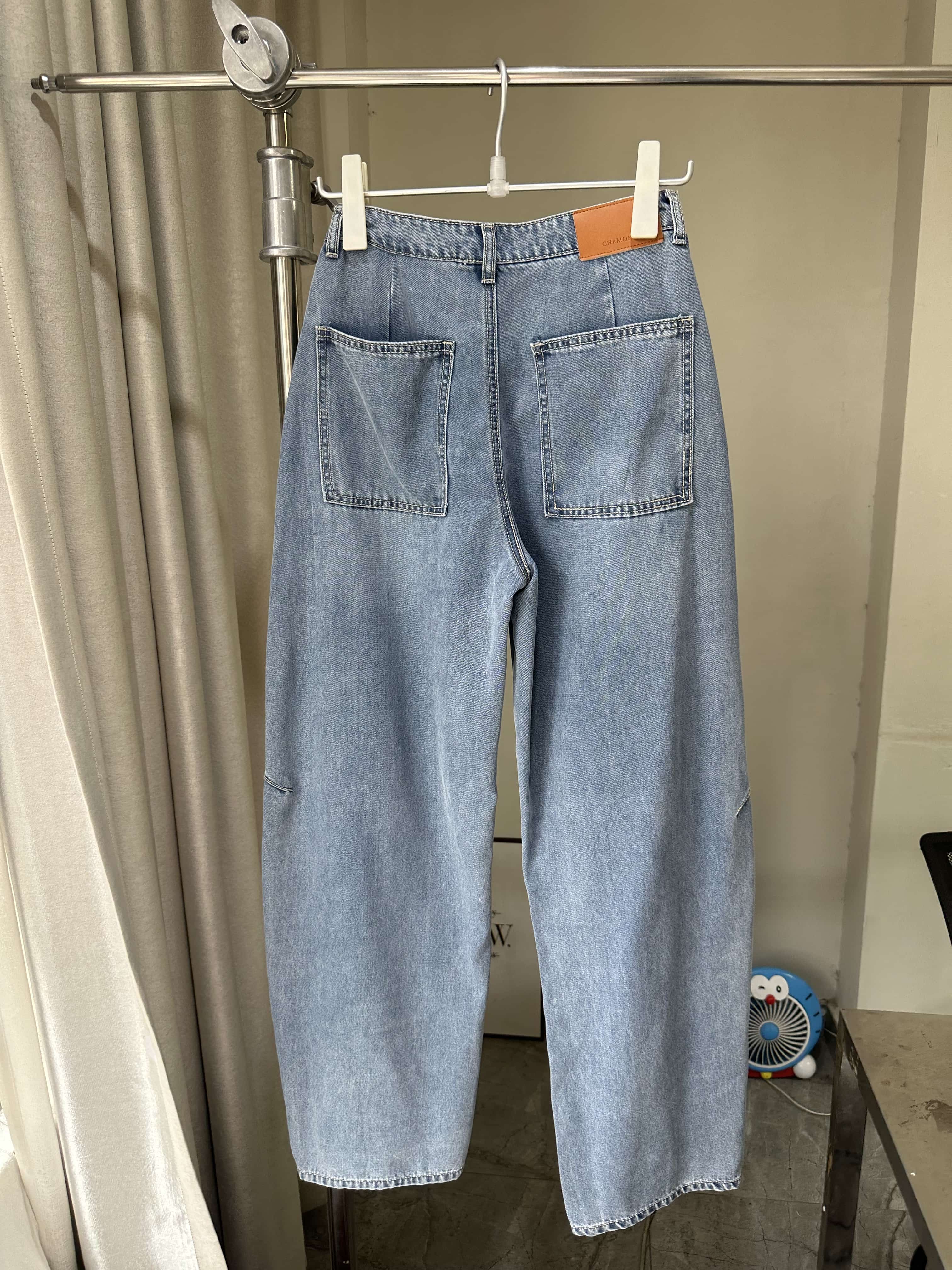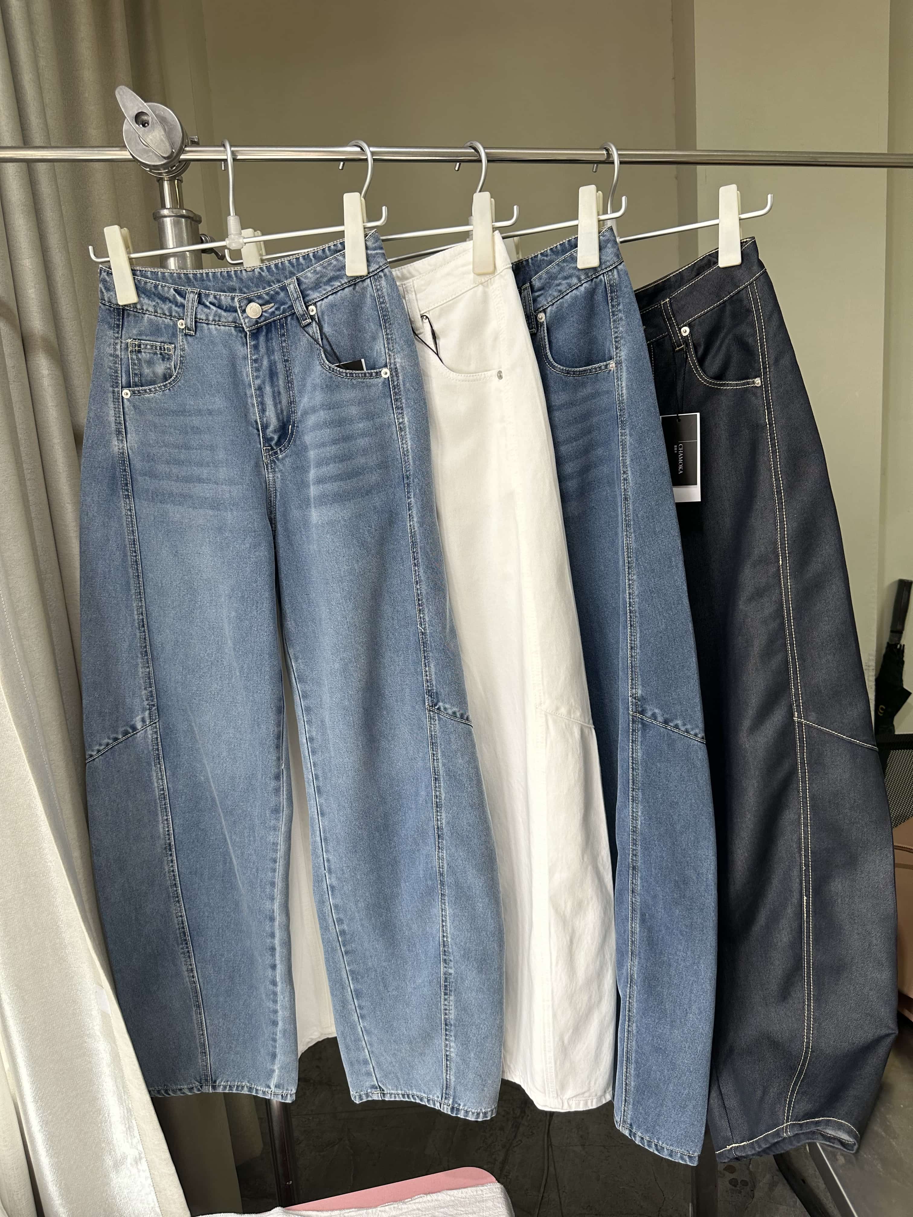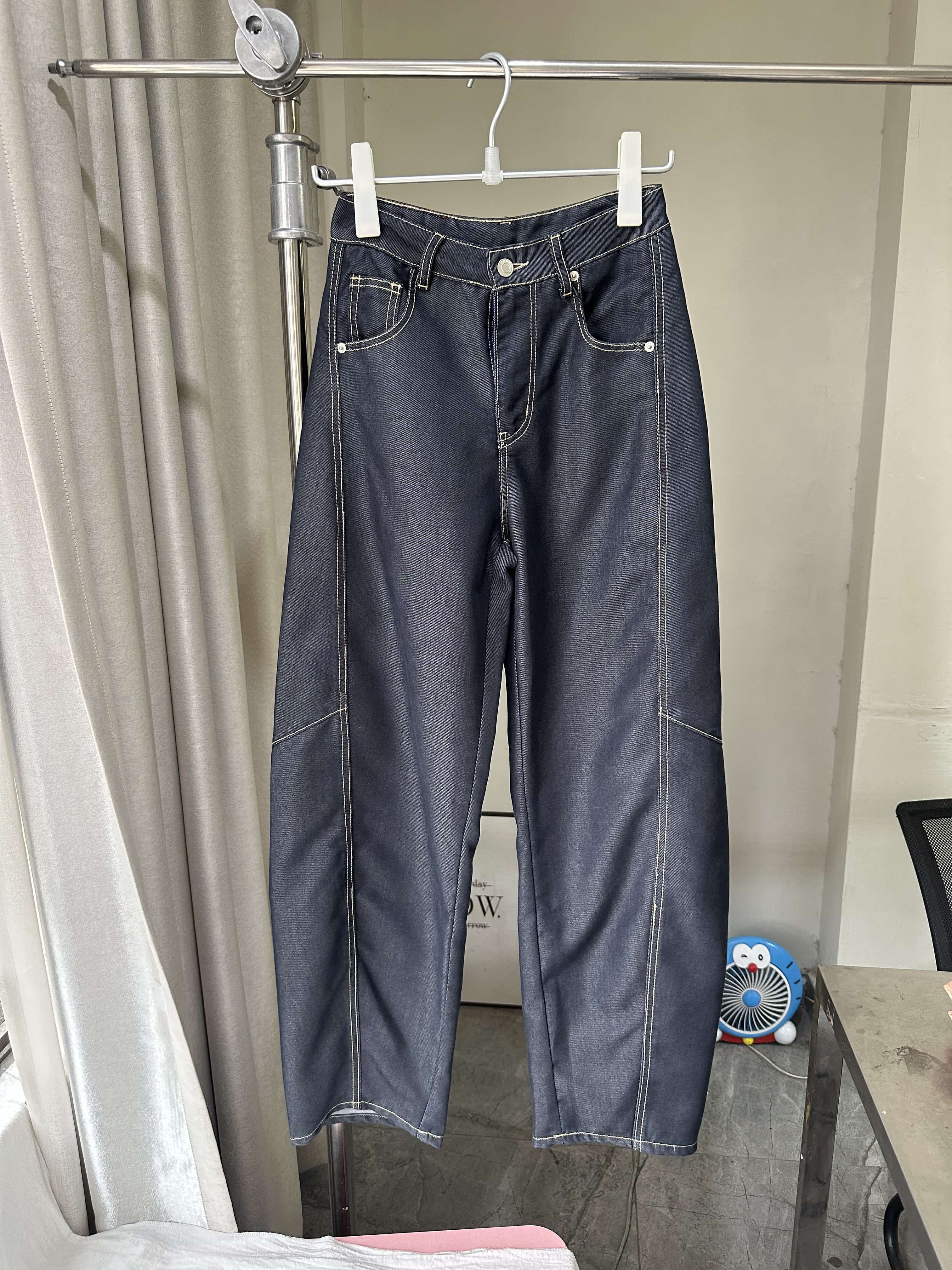 贝壳三 高腰拼接复古女休闲宽松香蕉裤水洗拖地天丝牛仔裤C041320