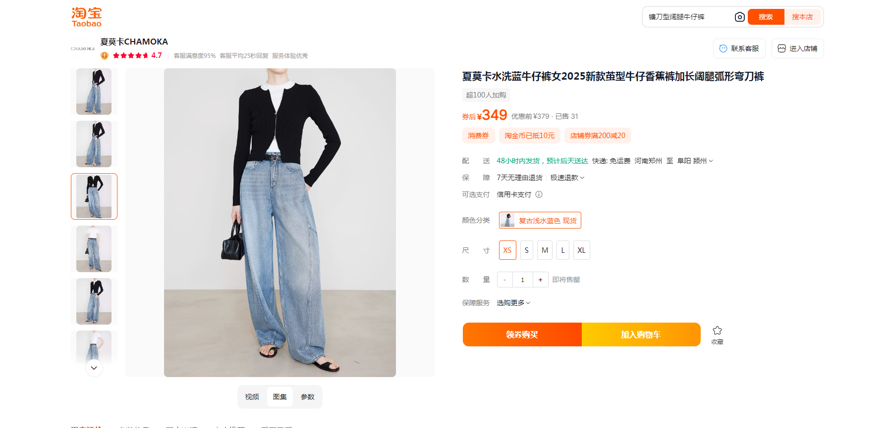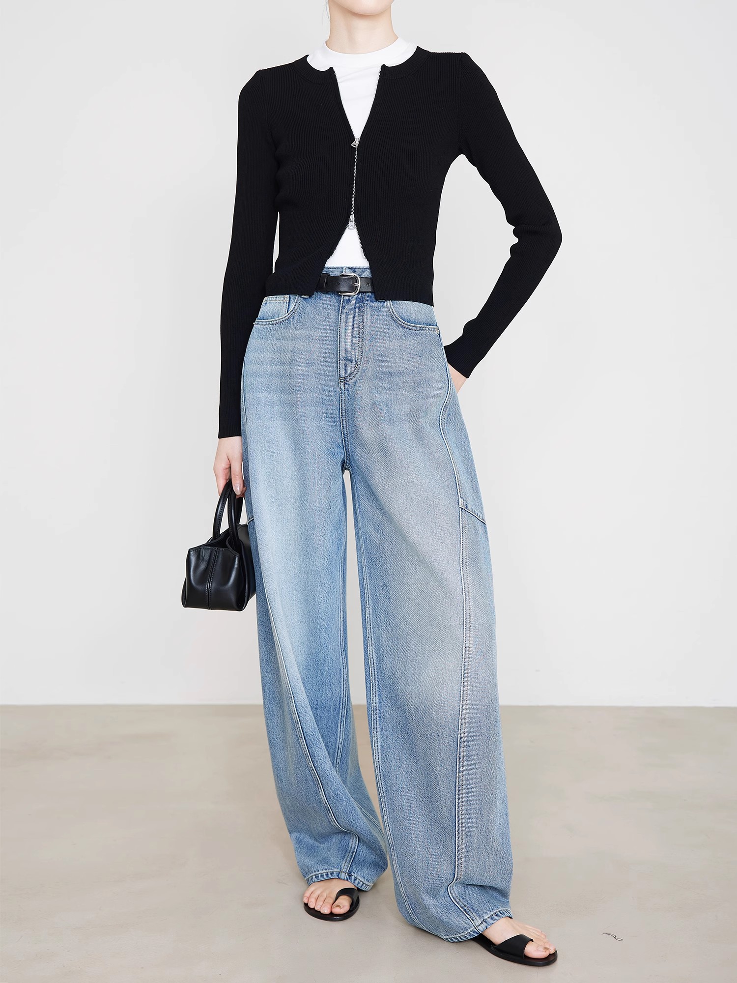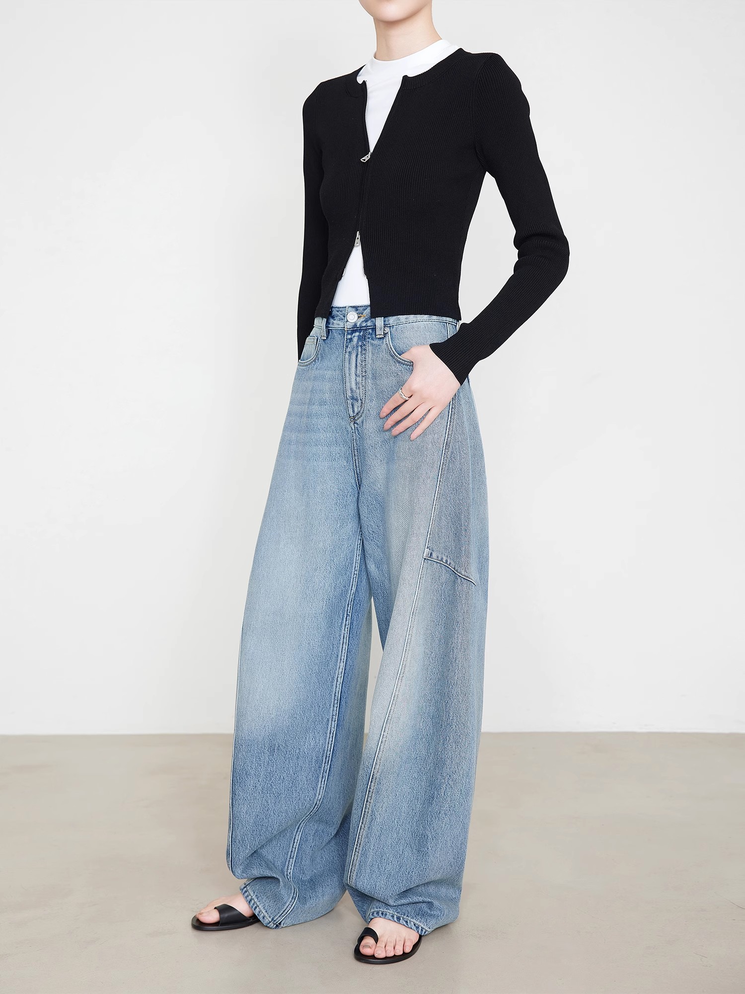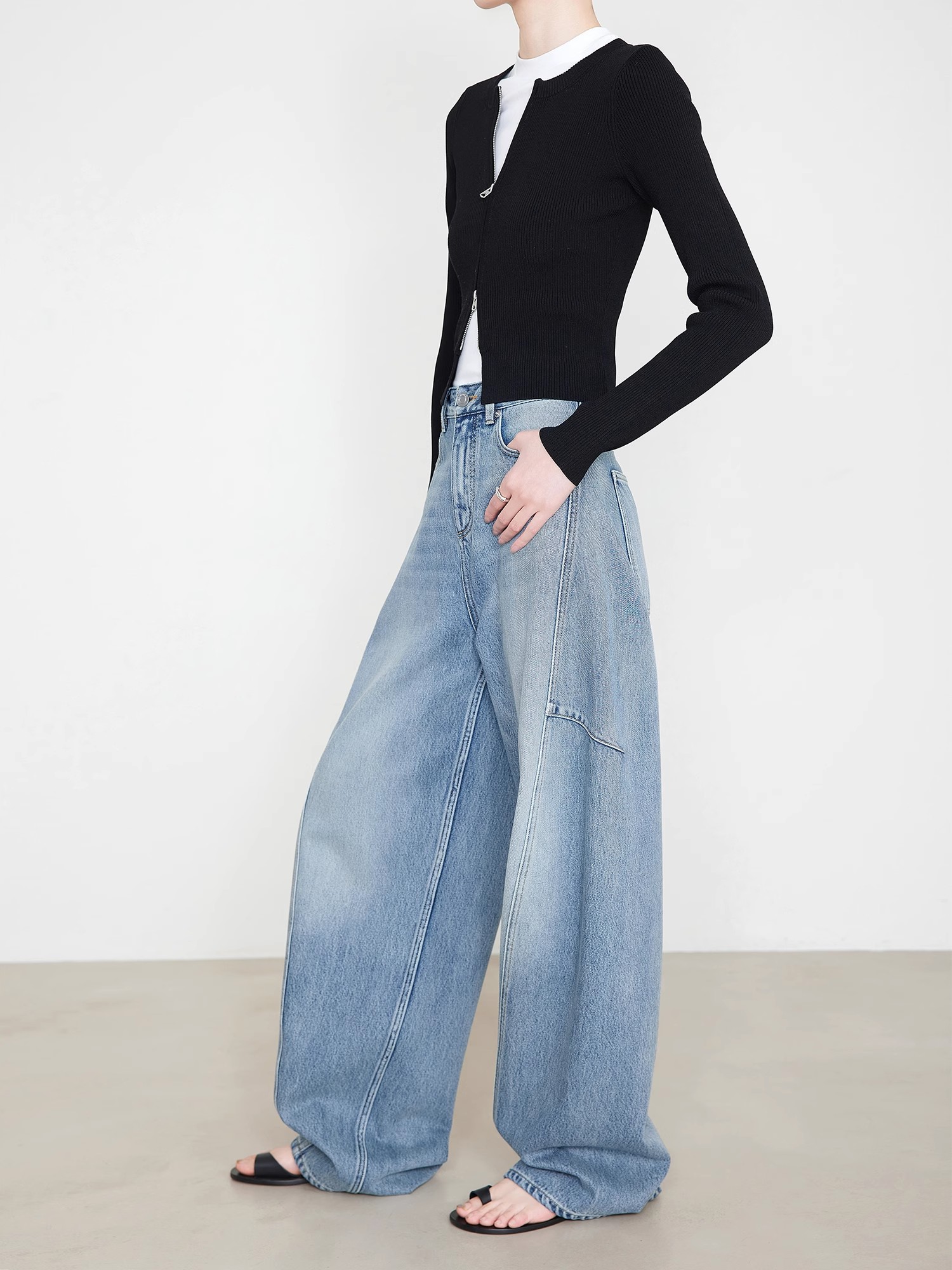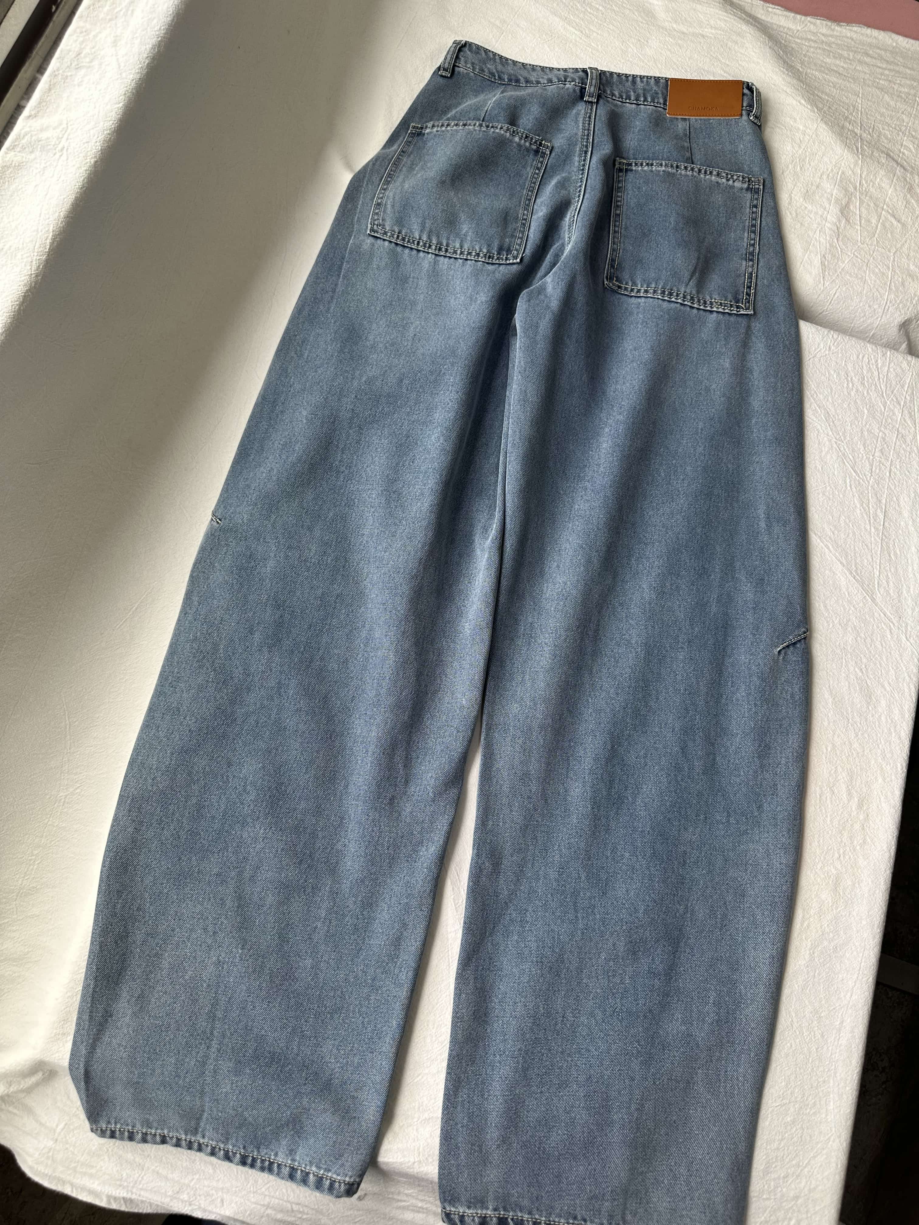 贝壳三 高腰拼接复古女休闲宽松香蕉裤水洗拖地天丝牛仔裤C041320