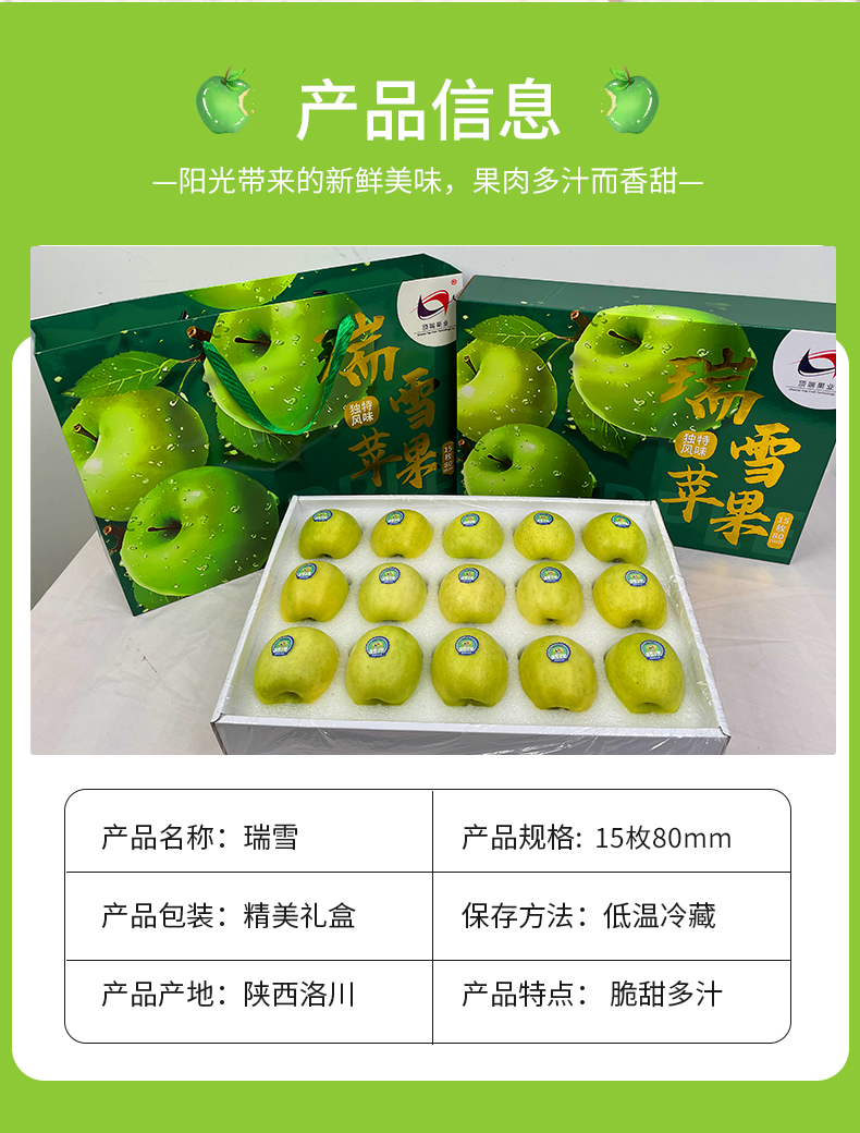 【瑞雪苹果】新鲜陕西洛川苹果新品种瑞雪苹果水果15枚80mm中大果精美礼品袋
