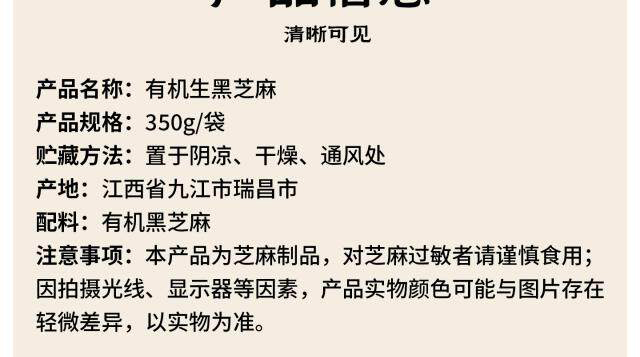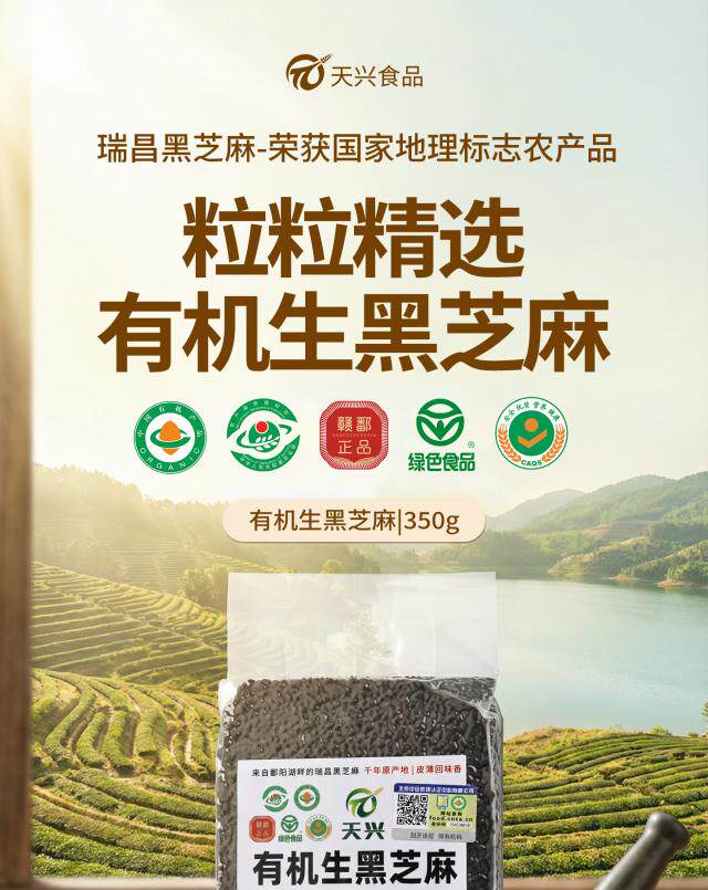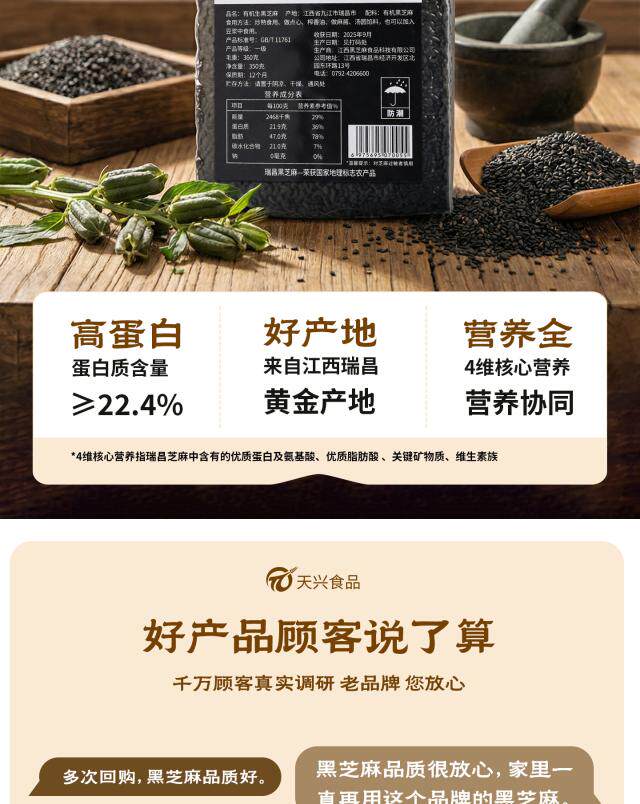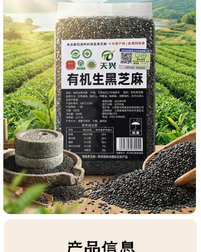 【瑞昌黑芝麻】天兴有机生黑芝麻粒 江西原产干净颗粒饱满真空包装350g/袋