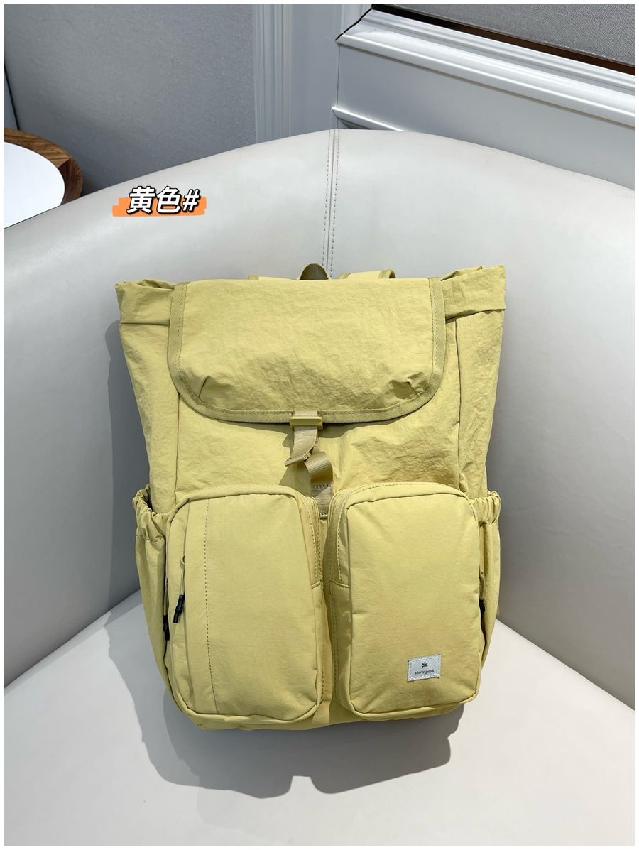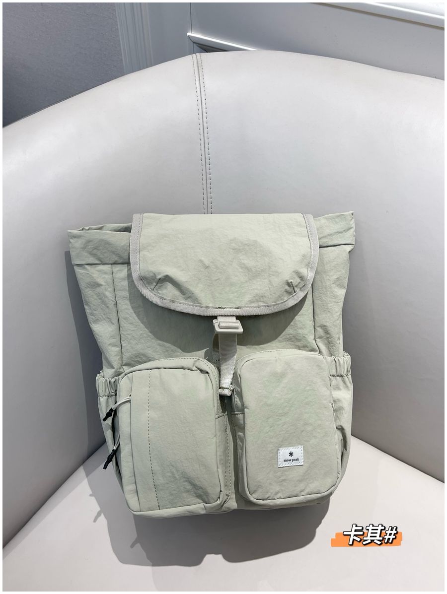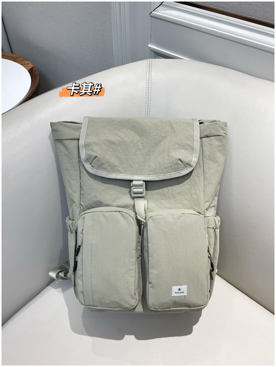 整体的设计休闲风格,不管是配色还是包型整体看上去非常简约!但是细节功能一点不简单哈!耐用不易磨损! 外侧两侧口袋设计 可放置水杯 雨伞等物件 方便拿取,顶部是翻盖设计,内里抽拉式闭合 储物更安全!双重保险! 不得不说雪峰现在的设计真的是既时尚又高级 ,用最简单的设计,创造最实用的功能性!可做妈咪包也可做穿搭,户外短游更是再合适不过了,强烈推荐!