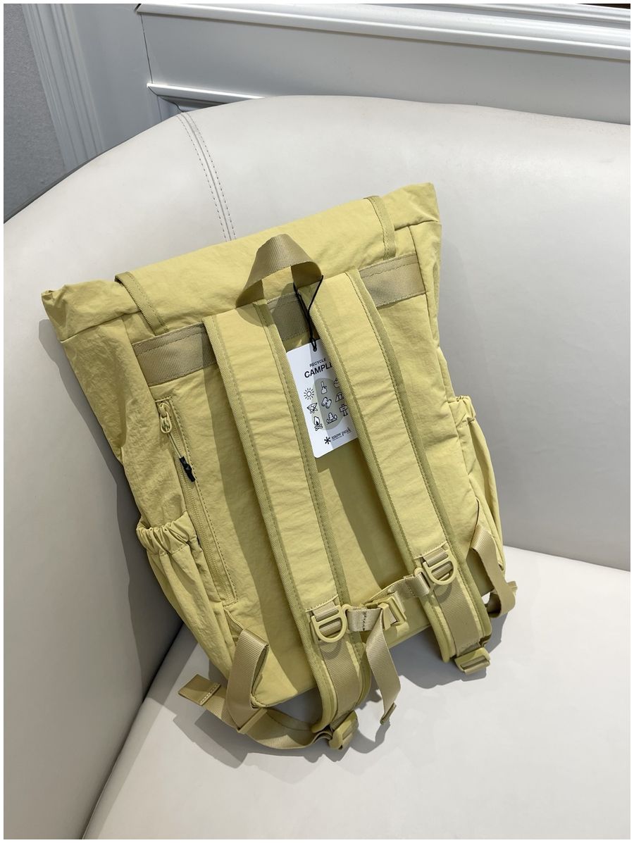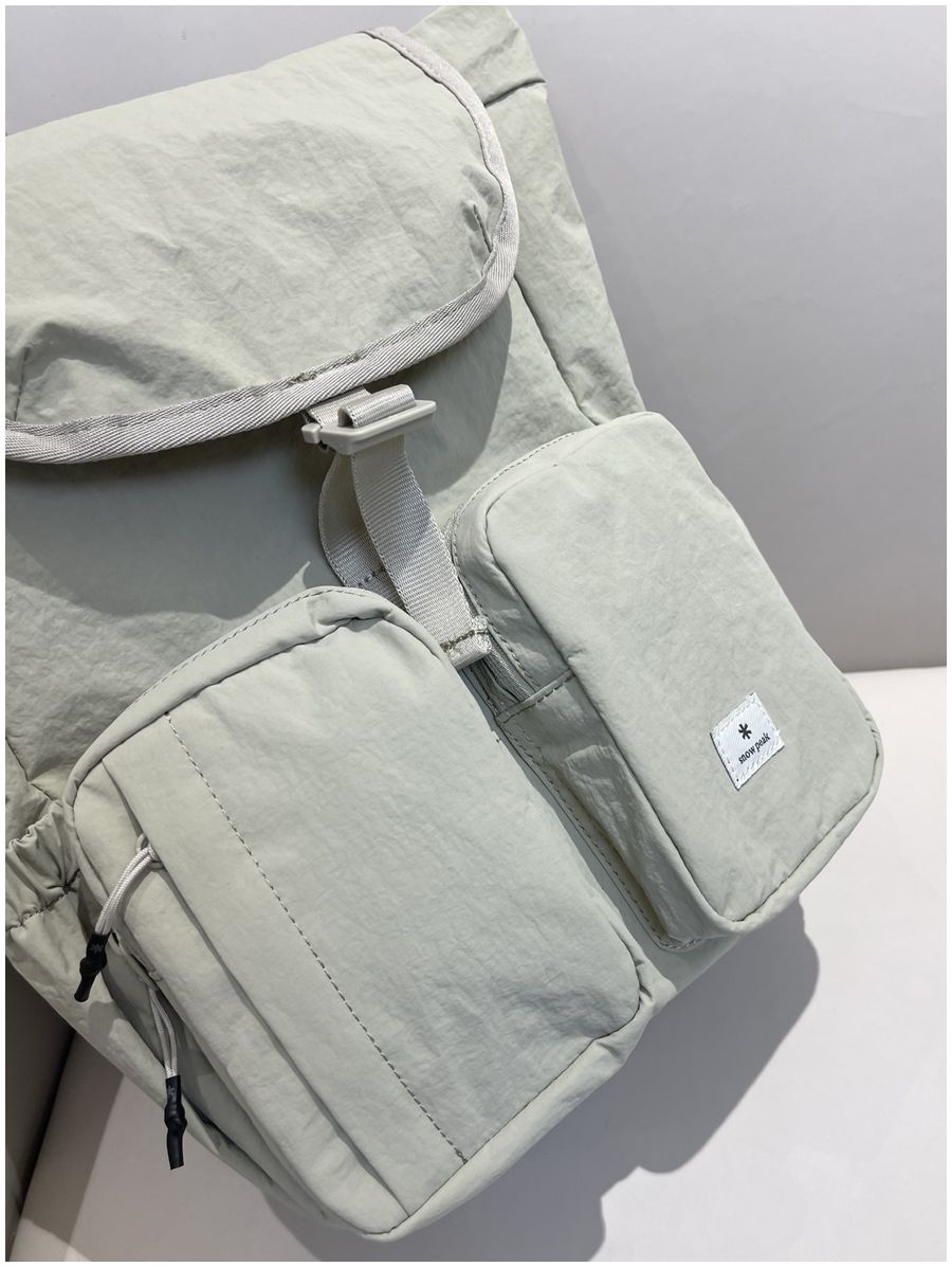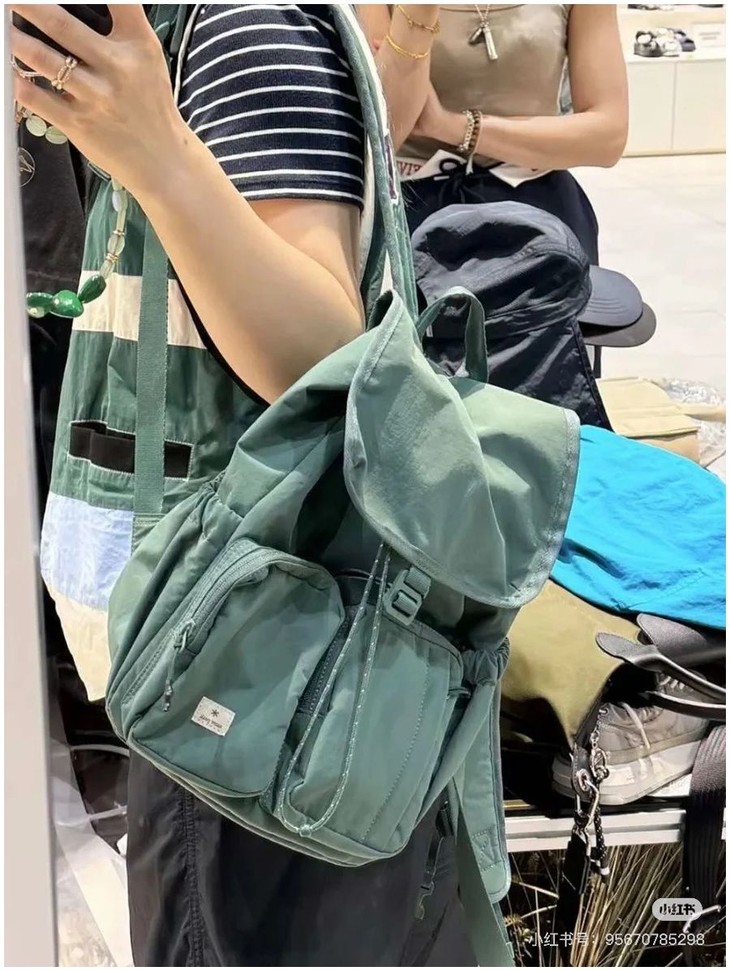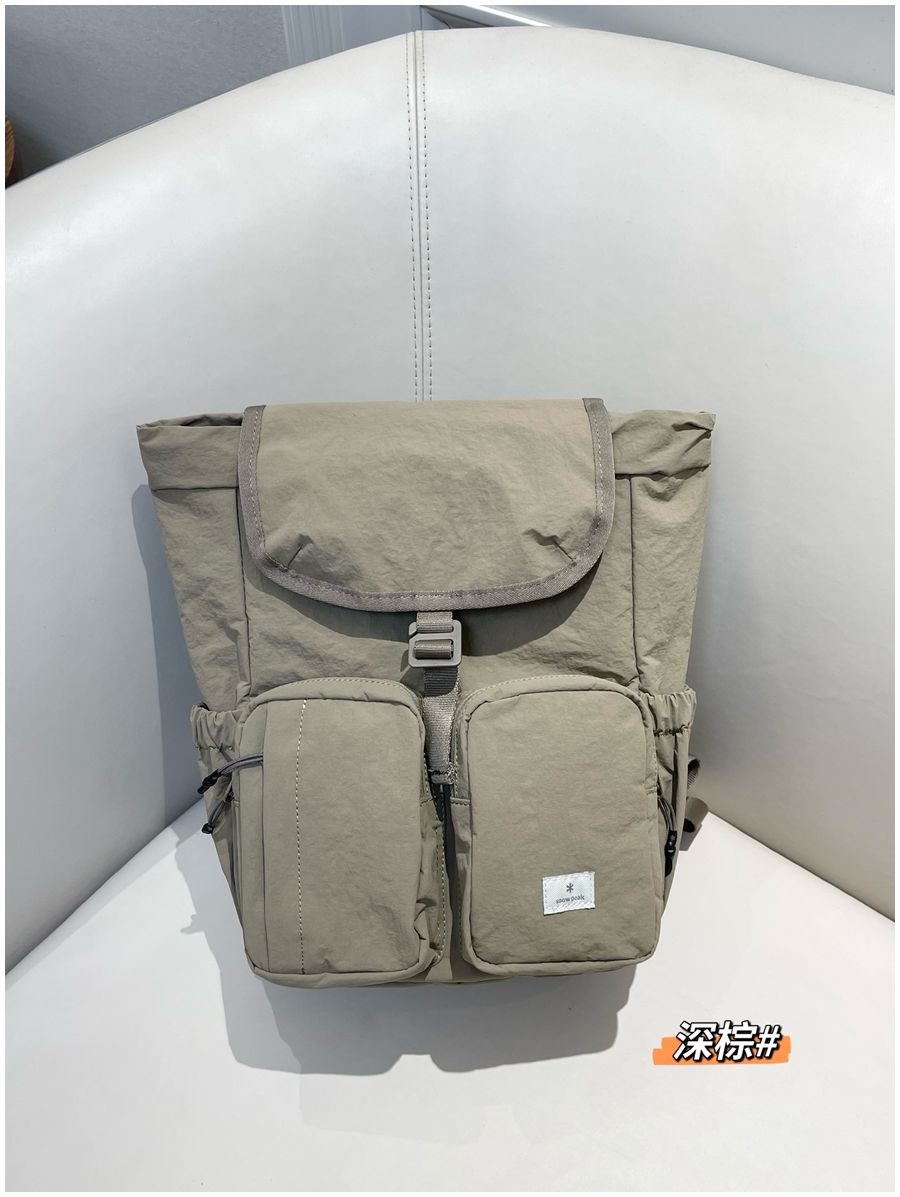 整体的设计休闲风格,不管是配色还是包型整体看上去非常简约!但是细节功能一点不简单哈!耐用不易磨损! 外侧两侧口袋设计 可放置水杯 雨伞等物件 方便拿取,顶部是翻盖设计,内里抽拉式闭合 储物更安全!双重保险! 不得不说雪峰现在的设计真的是既时尚又高级 ,用最简单的设计,创造最实用的功能性!可做妈咪包也可做穿搭,户外短游更是再合适不过了,强烈推荐!