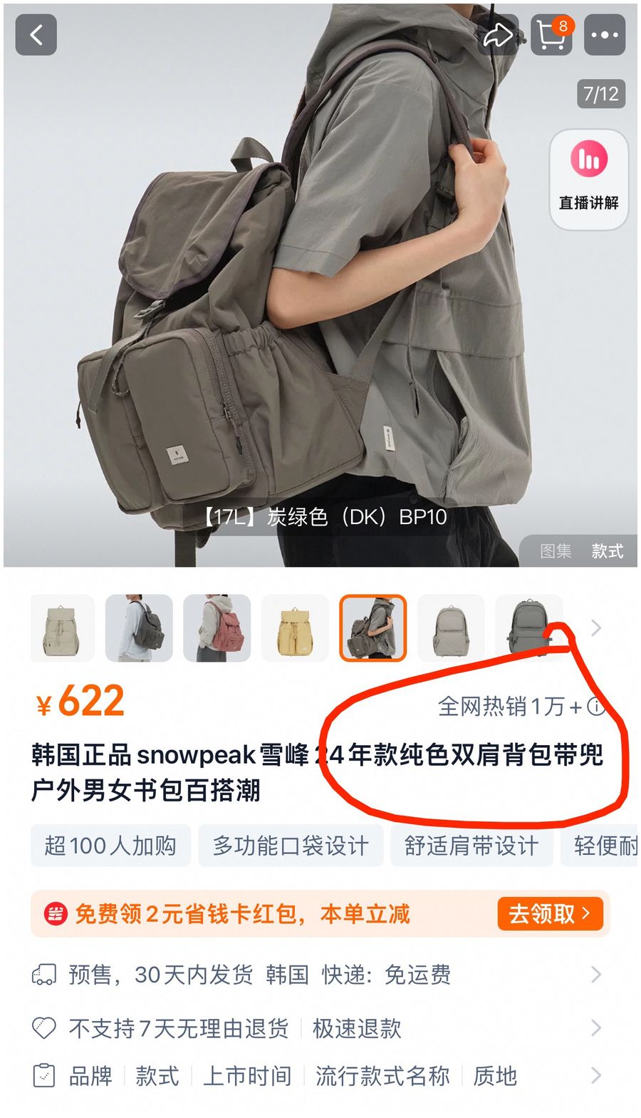 出口韩国订单 纯原 SNOW PEAK雪峰 CAMPLE系列 12L,17L,两个规格双肩包,全网非常火爆 被誉为露营届的“爱马仕”休闲通勤皆可用!