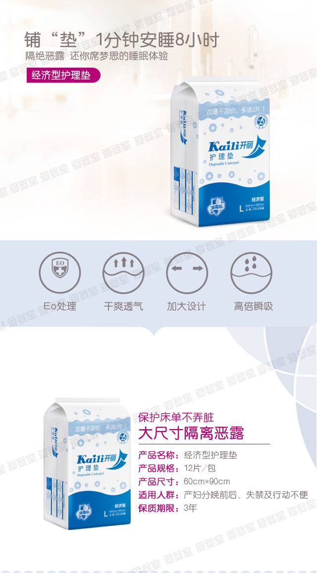 开丽12片装一次性垫单L号(经济型) KD6912 60*90cm