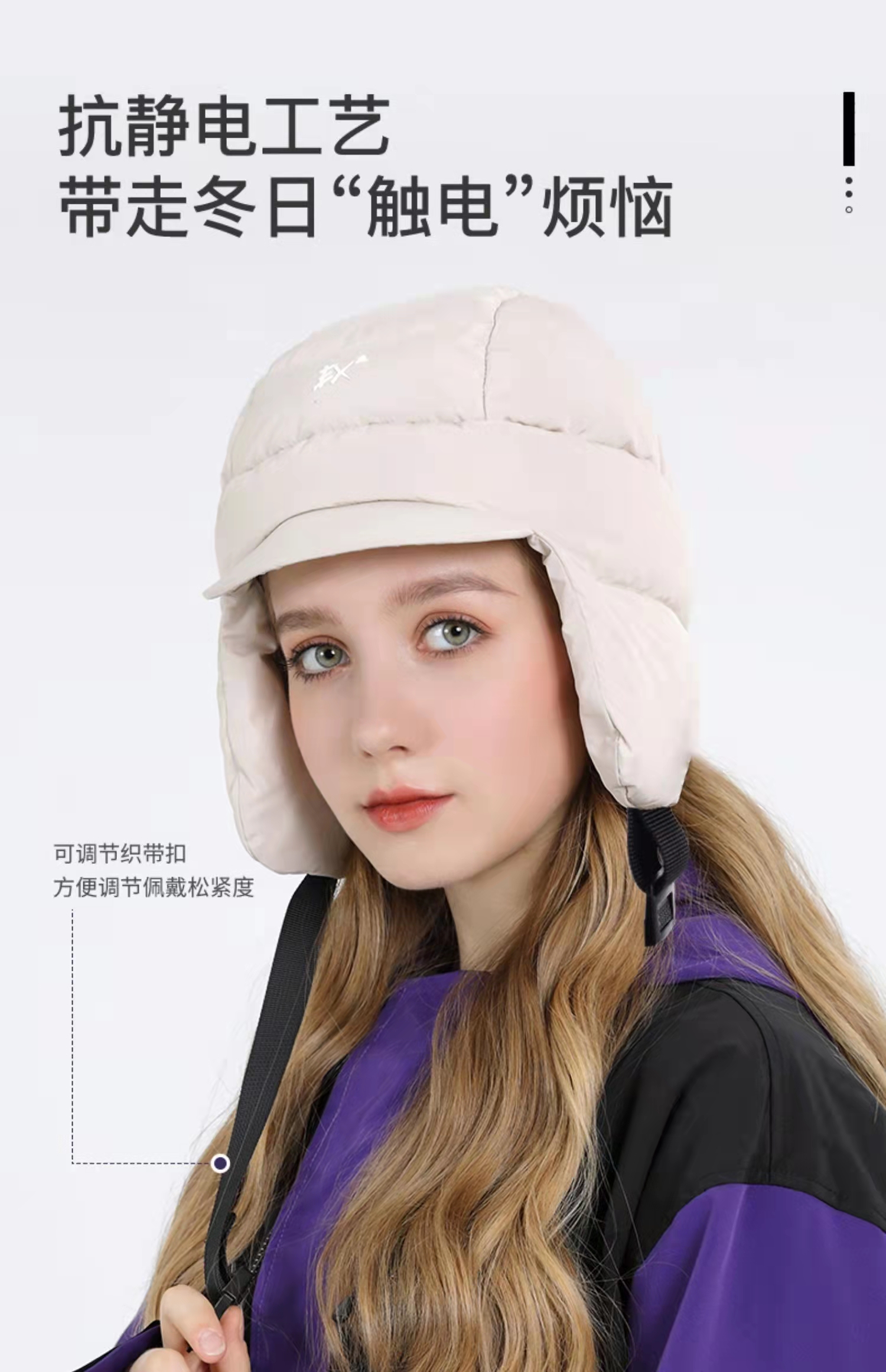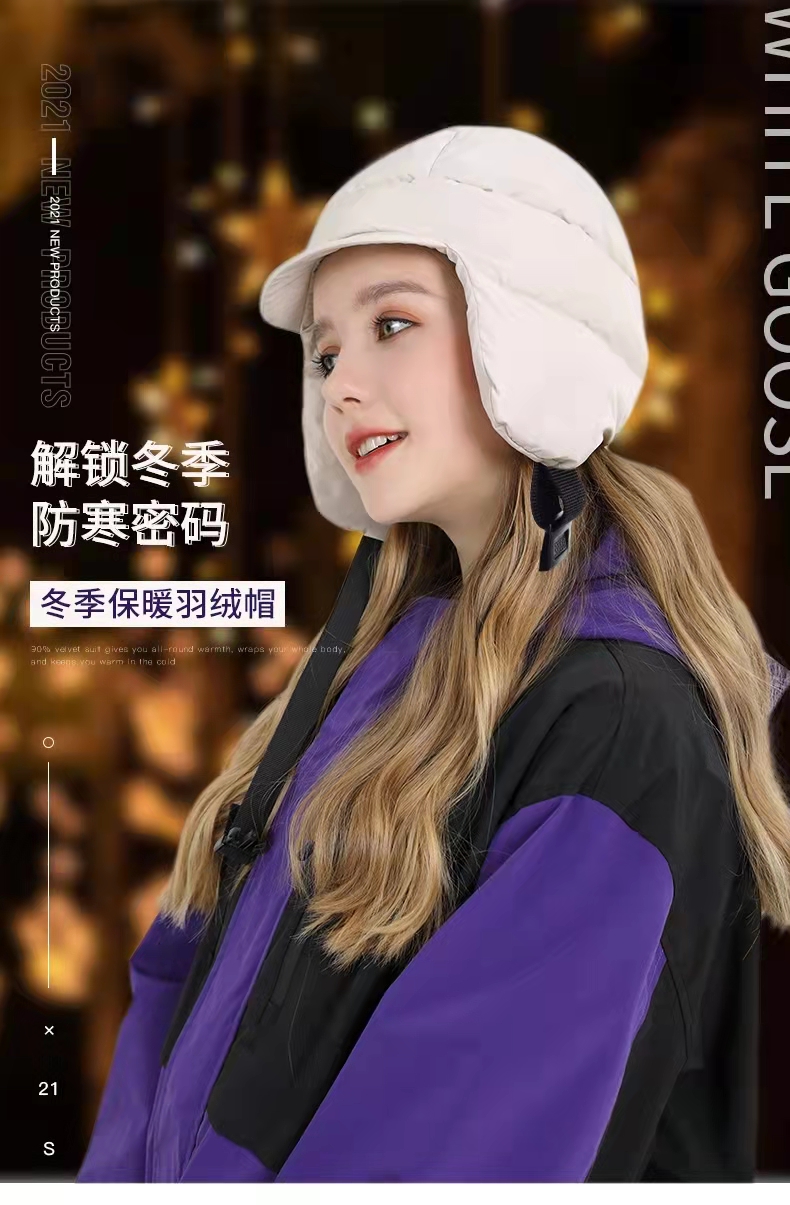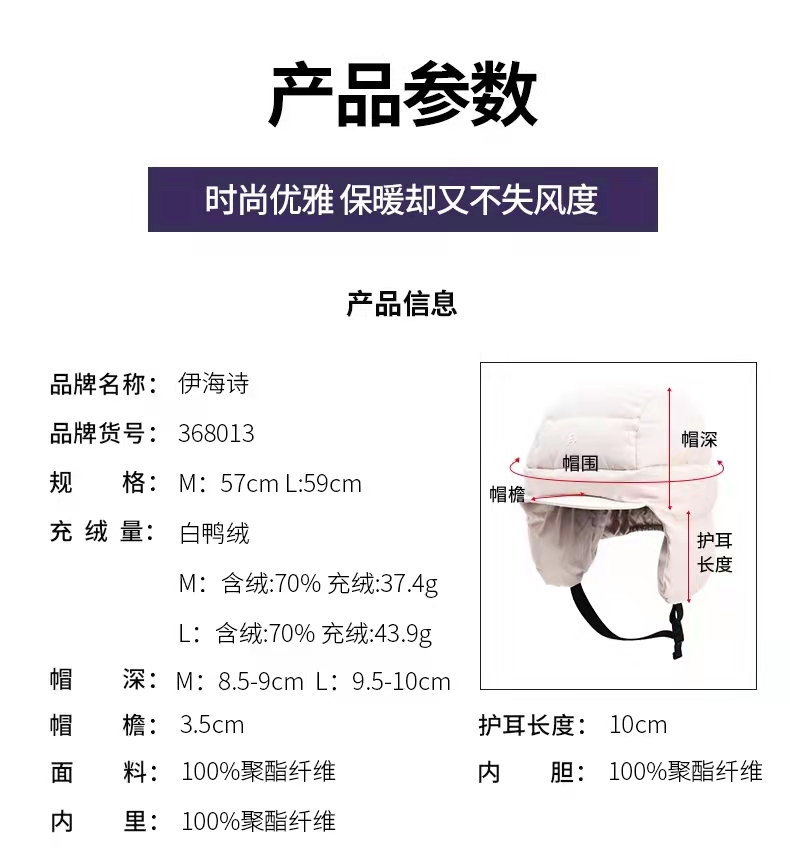 EX2伊海诗冬抗皱保暖羽绒帽户外抗寒帽子男女雷锋帽护耳厚368014