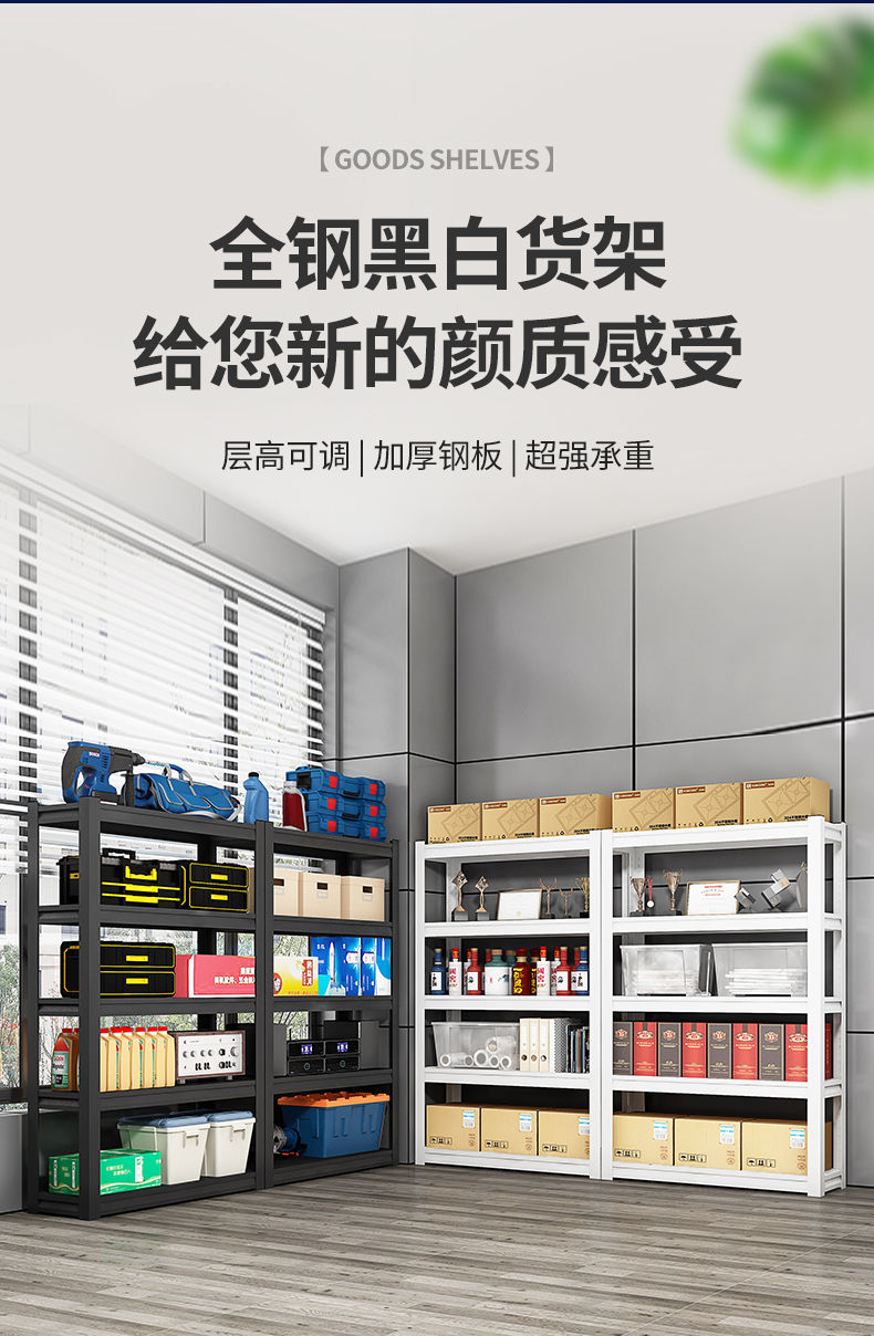 通体立柱置物架仓储货物架家用多层角钢杂物架超市展示架碳钢货架