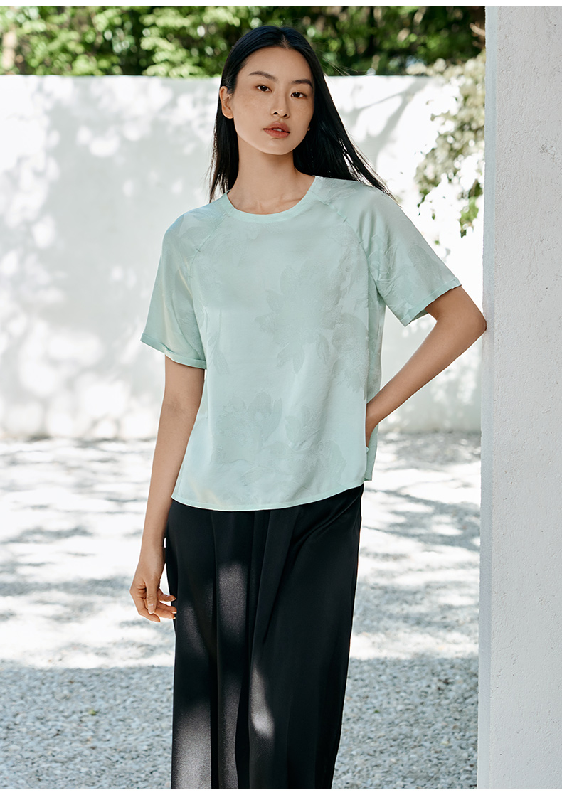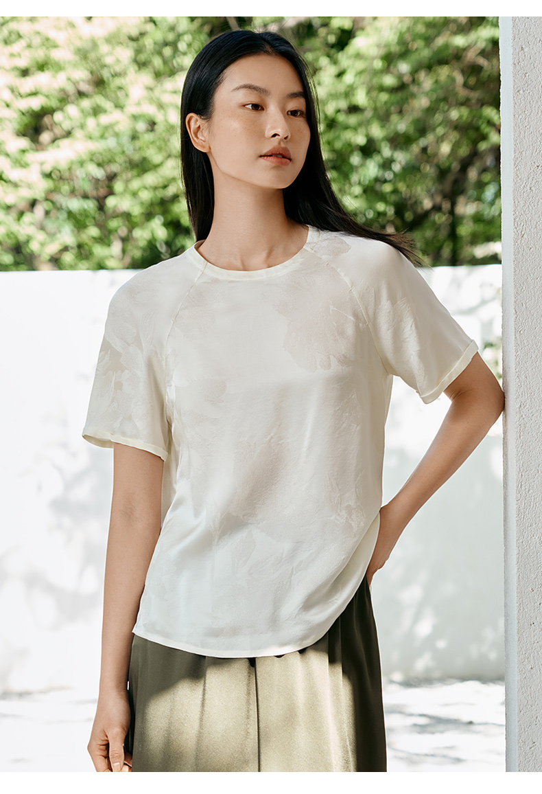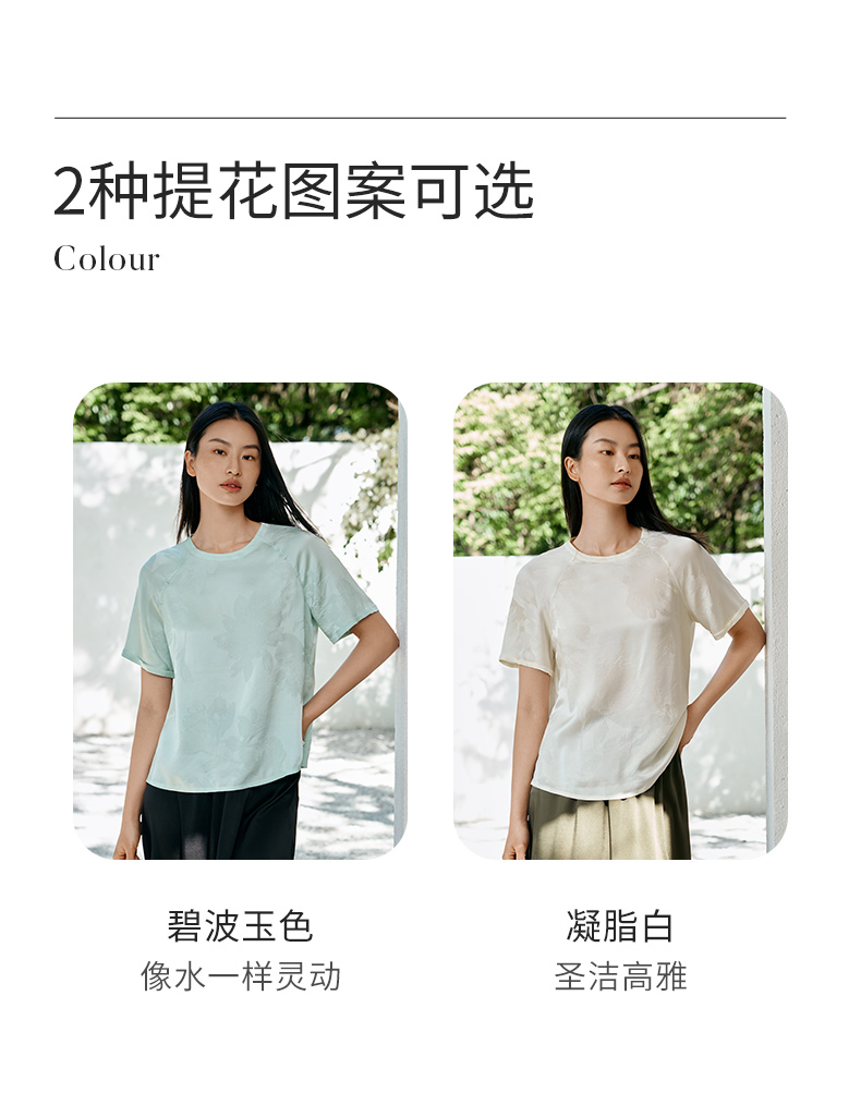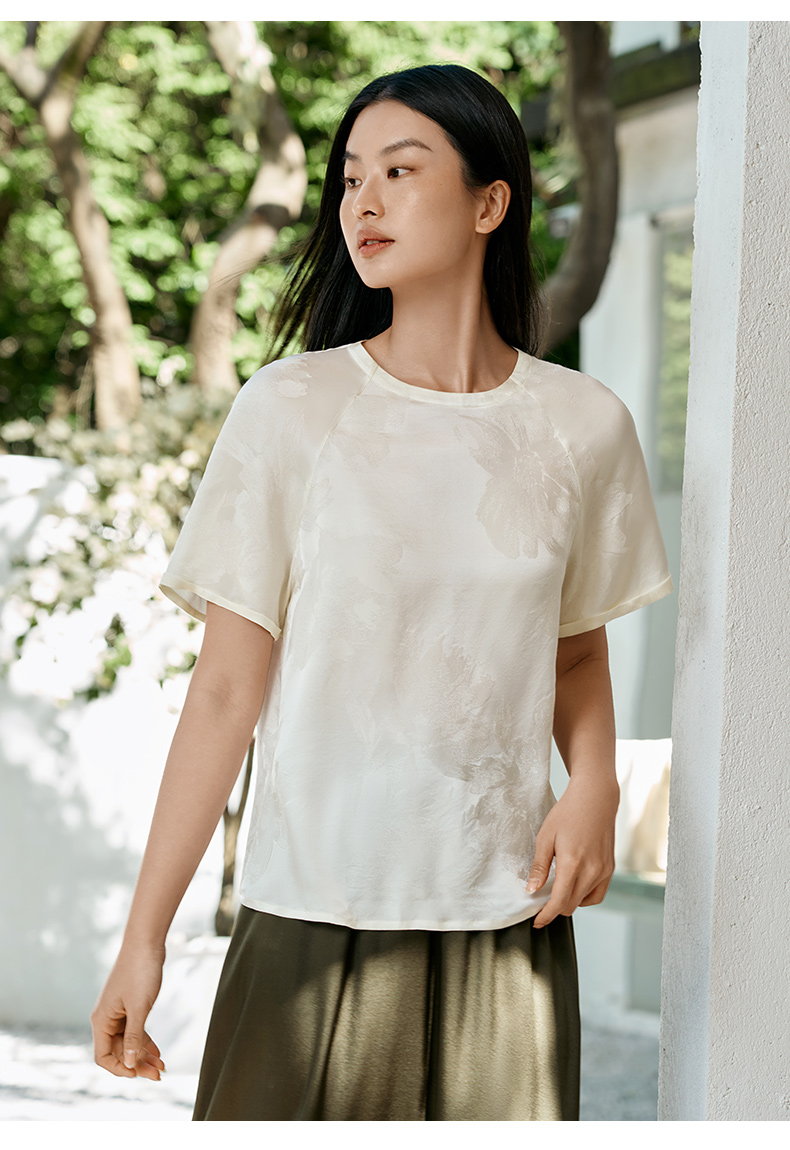 真丝小衫女100%桑蚕丝提花圆领宽松透气短袖T恤春夏新品金三塔 YSFFB702/YSFFB901