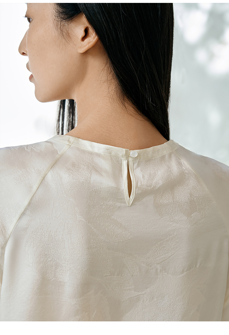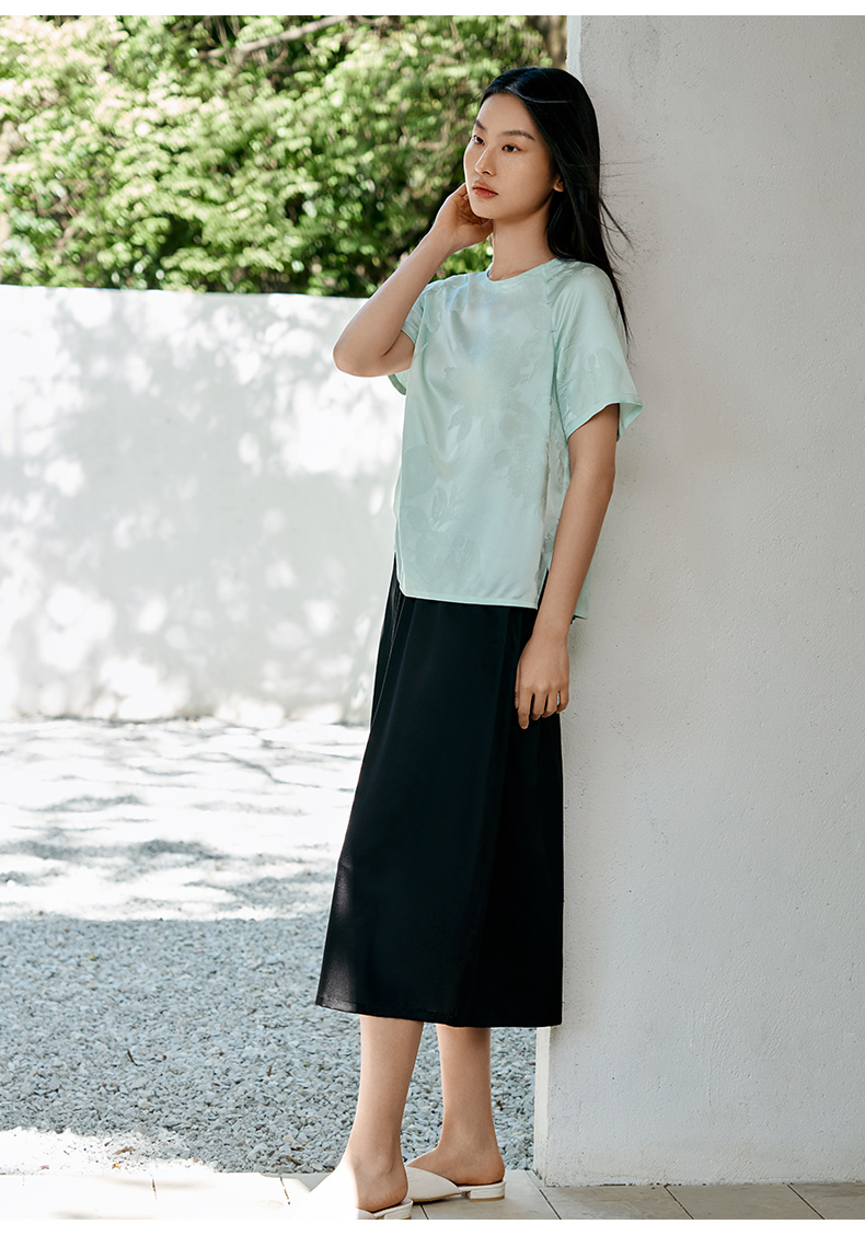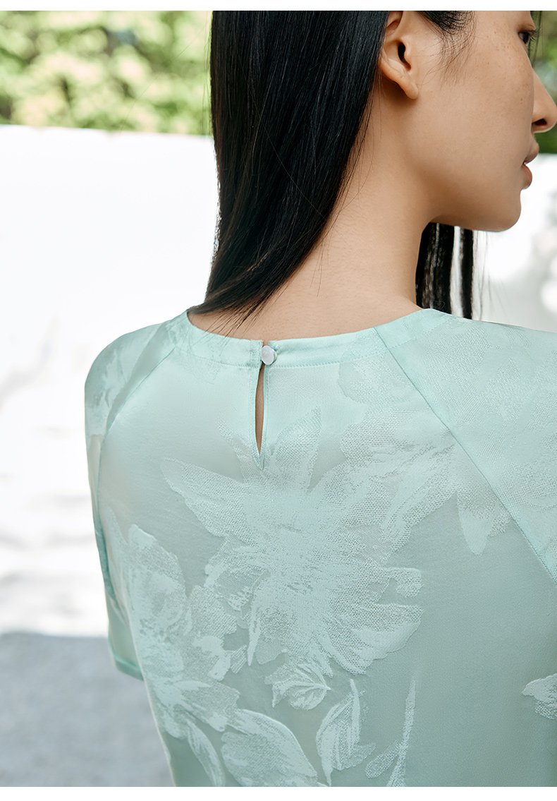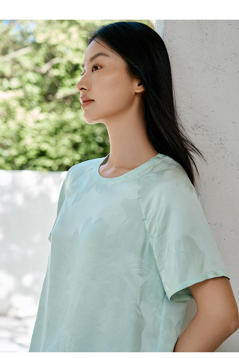 真丝小衫女100%桑蚕丝提花圆领宽松透气短袖T恤春夏新品金三塔 YSFFB702/YSFFB901