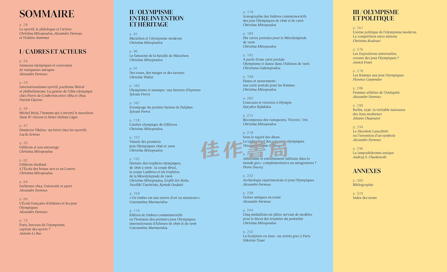 由于发现了未发表的档案——来自艺术家埃米尔·吉利耶隆(Emile Gilliéron)的收藏——以及对标志性作品的重新审视,本书回顾了现代奥林匹克运动创立的政治背景和相关问题。因此,它使得对首届奥林匹克图像学的构建进行分析成为可能。读者将由此理解这种重塑是如何基于对古代资料(文本、图像和遗迹)的有针对性的组合,从而使现代奥林匹克运动成为一种集体但有效的幻想。本书还提醒人们,巴黎曾三次成为奥运会主办城市(1900年、1924年、2024年),1894年现代奥林匹克运动的理念就诞生于此。这种同样基于对资料的操控的重塑,引发了国家或国际层面的偏差、排斥或刻板印象,古典研究在某种程度上成为了这些问题的受害者。构成本书的所有文本因此提供了理解现代奥林匹克运动鲜为人知的历史的关键。凭借其未发表的内容和独特的研究视角,本目录面向所有人,有助于探索现代奥运会、其起源及其意义。