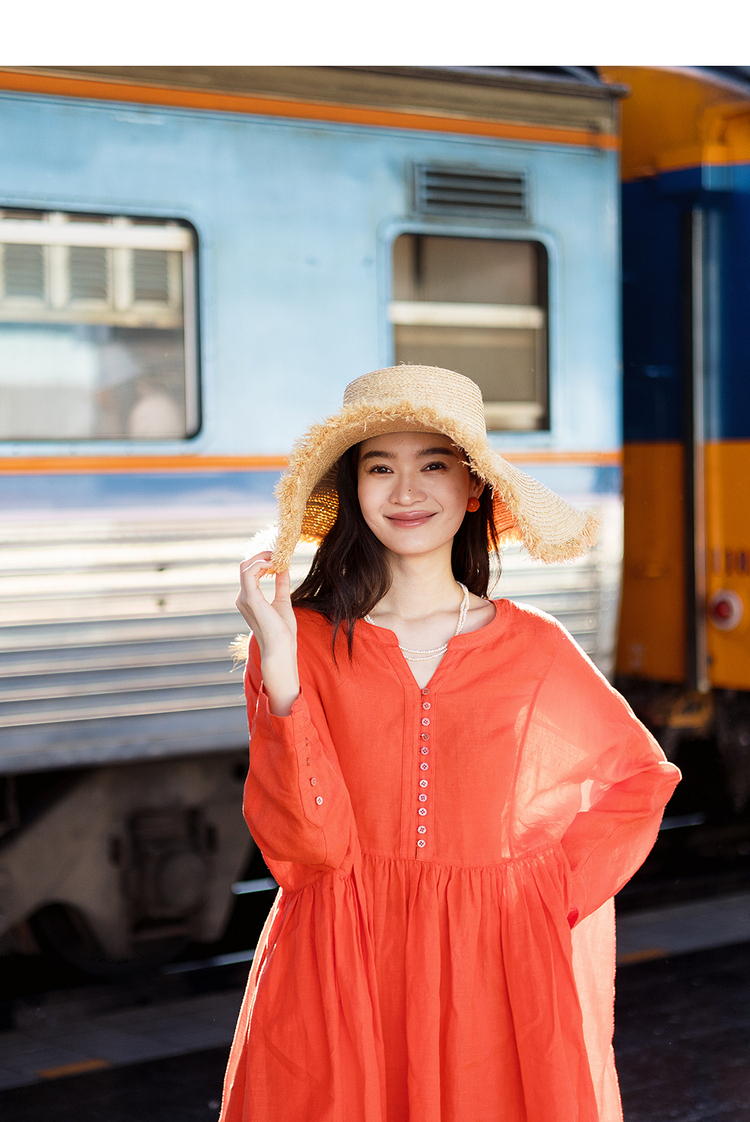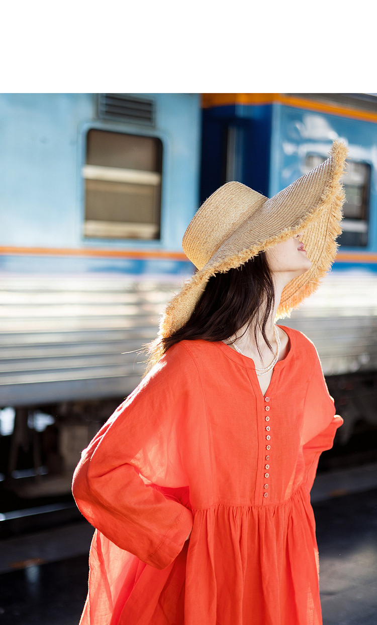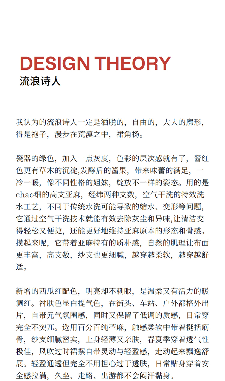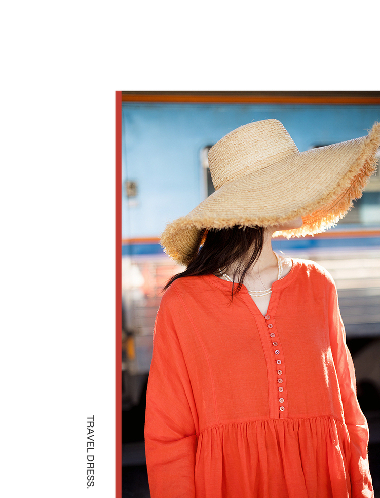 以天然亚麻为载体,融合热烈色彩与自在剪裁为身在城市、心怀远方的女性提供兼具美学与舒适的旅行着装