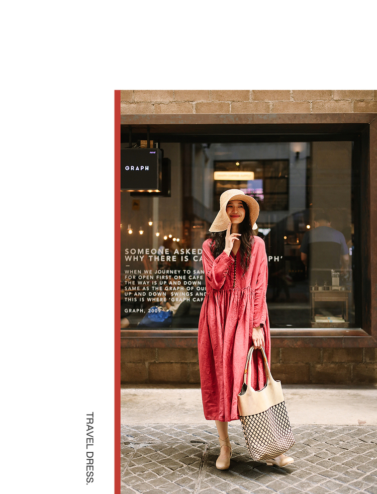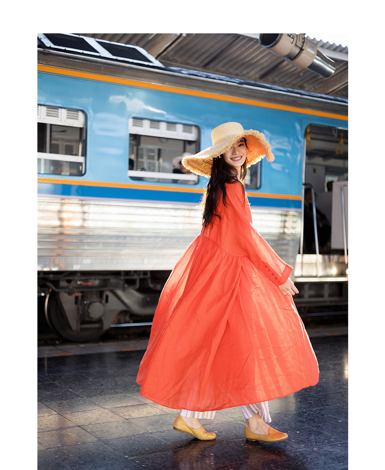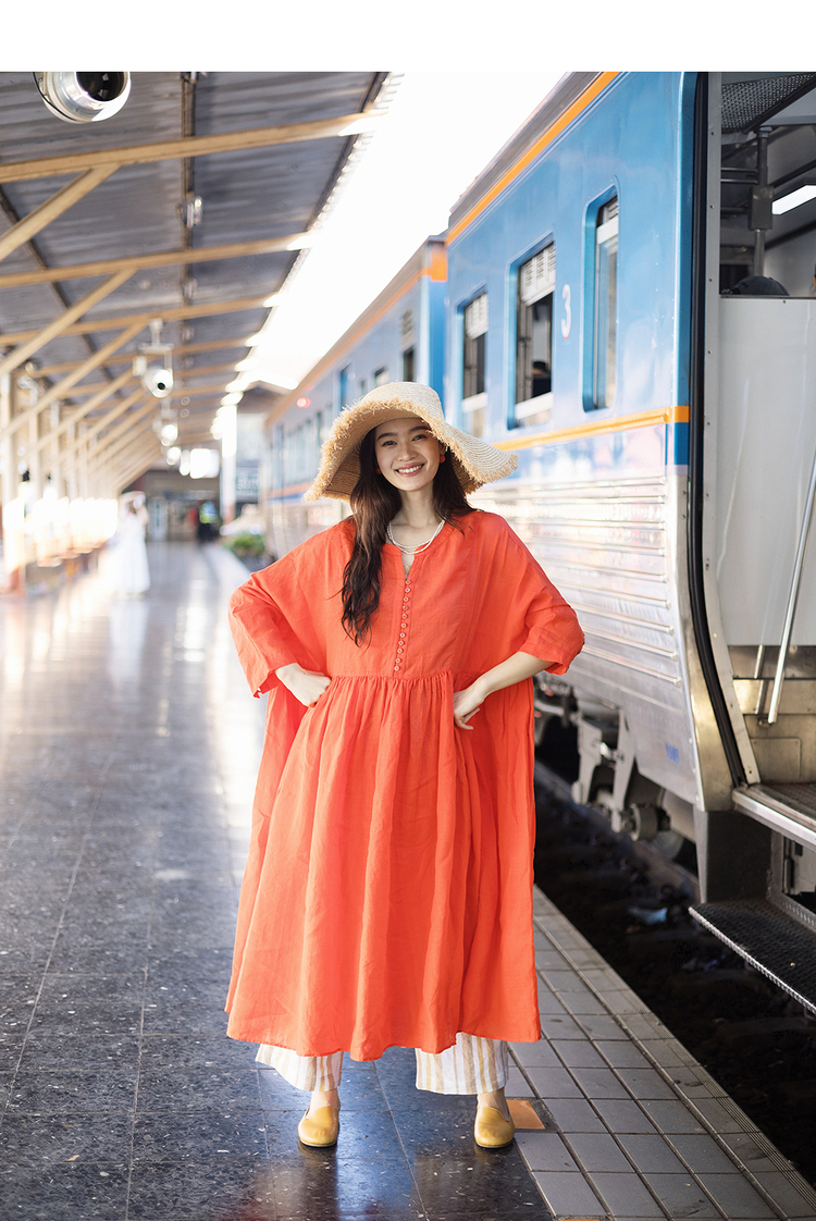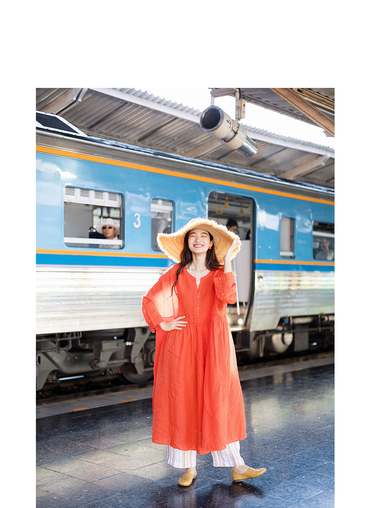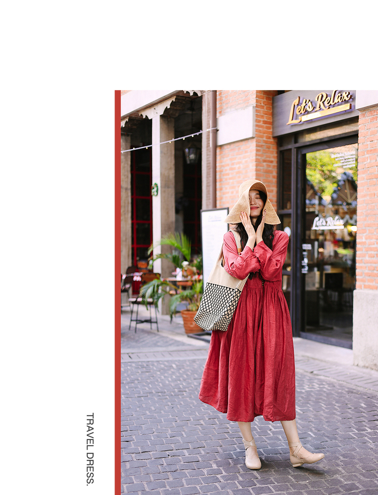 以天然亚麻为载体,融合热烈色彩与自在剪裁为身在城市、心怀远方的女性提供兼具美学与舒适的旅行着装