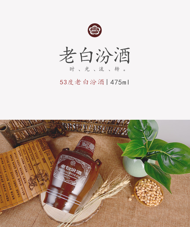 山西杏花村汾酒 53度老白汾酒坛汾475mL*2瓶礼盒装清香型白酒