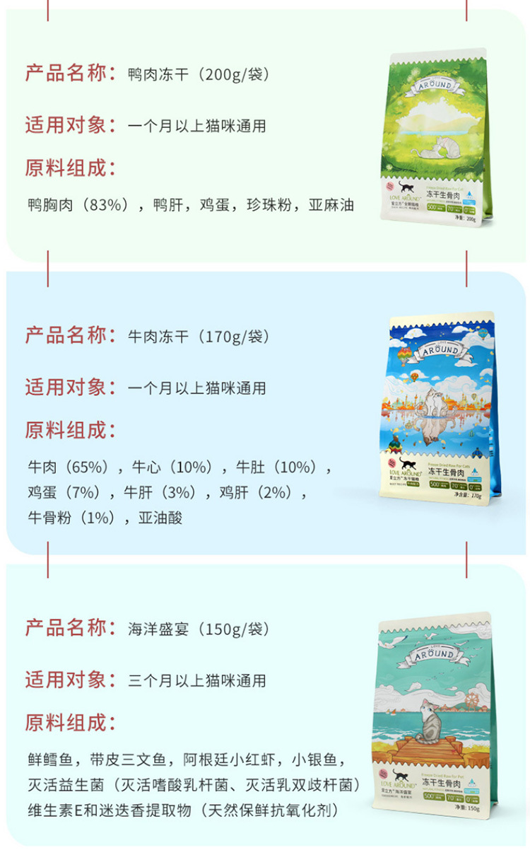 爱立方冻干生骨肉猫粮零食宠物猫咪狗鹌鹑磨牙冻干喵喵酱海洋彩虹冻干棒鱼籽蛋黄
