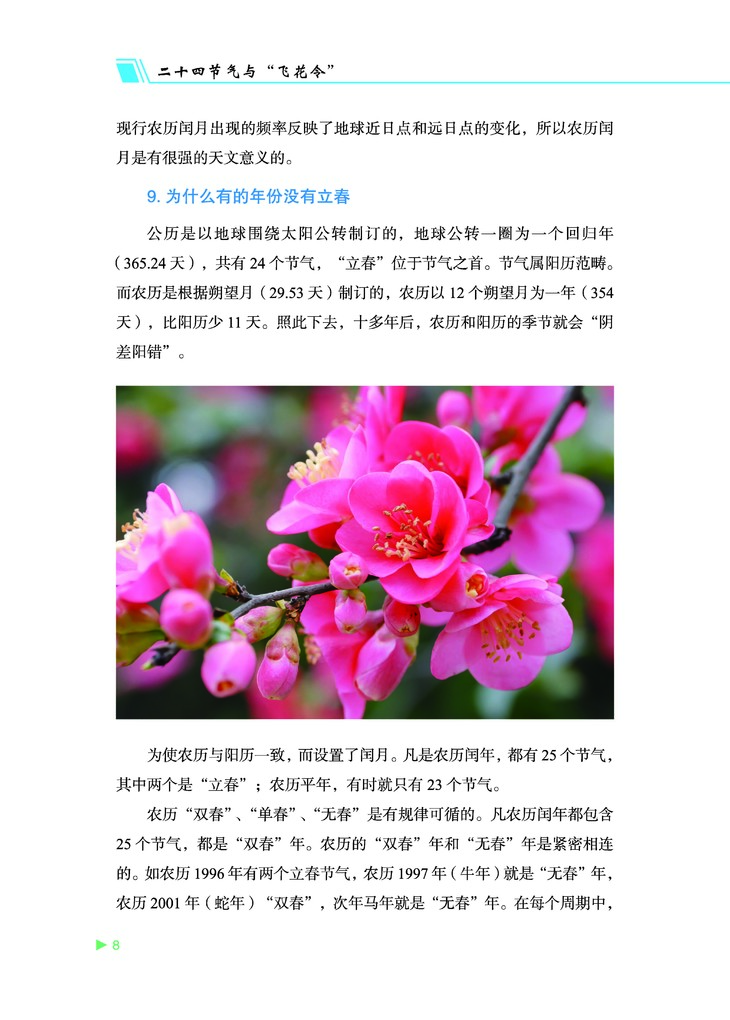 当您打开《二十四节气和“飞花令”》,就如徜徉在历史文化的长卷中,能够看到古人的日出而作、日落而息,根据二十四节气安排农时,庆丰收,迎佳节,体验到中国传统文化的深厚底蕴。又恍若置身于世外桃源中,吟诗作画,弹琴颂雅,看云起云落,叹世道沧桑变化,品味到中国古代诗词之溢美。