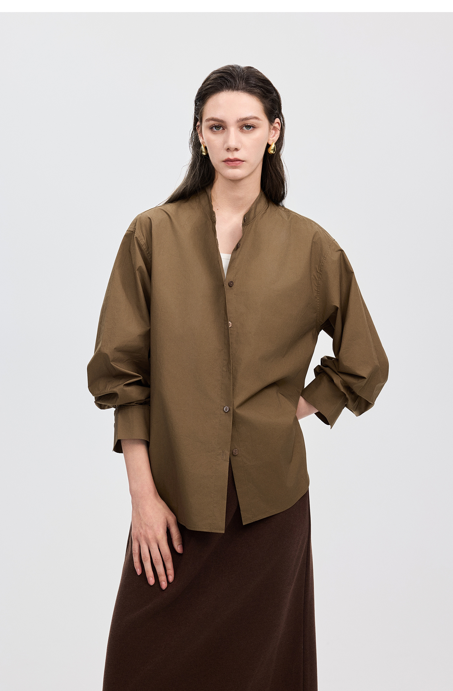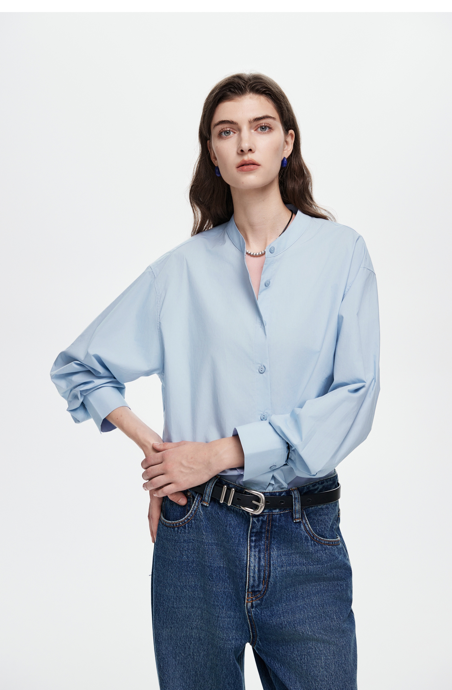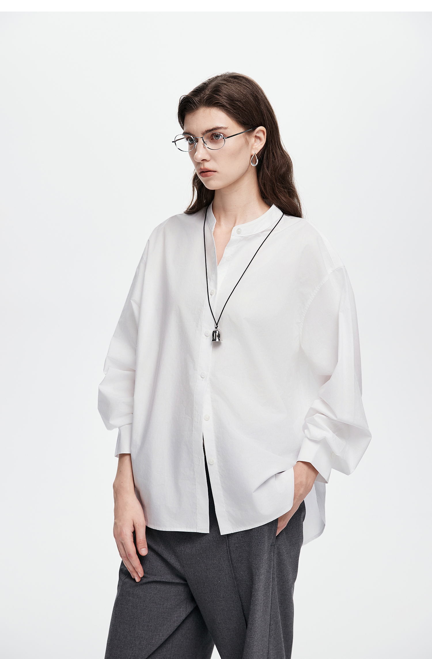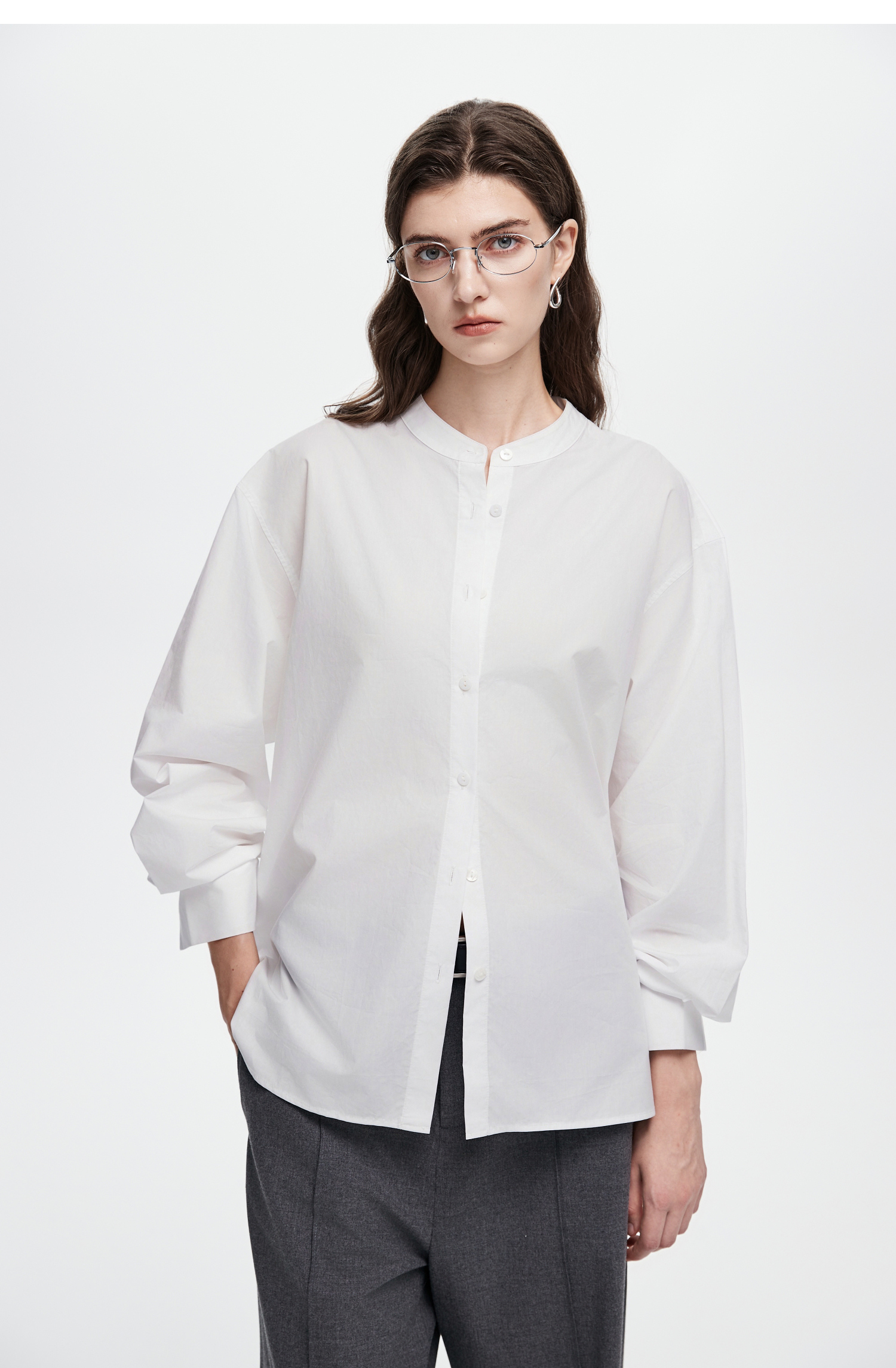 棉仓367604005-60S纸质府绸宽松长袖衬衫