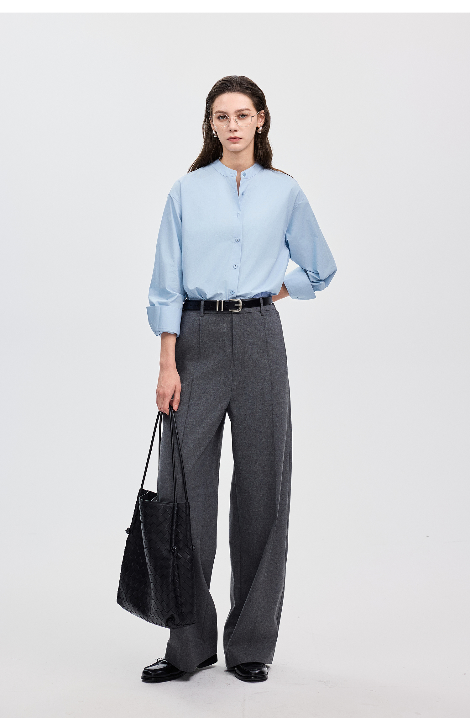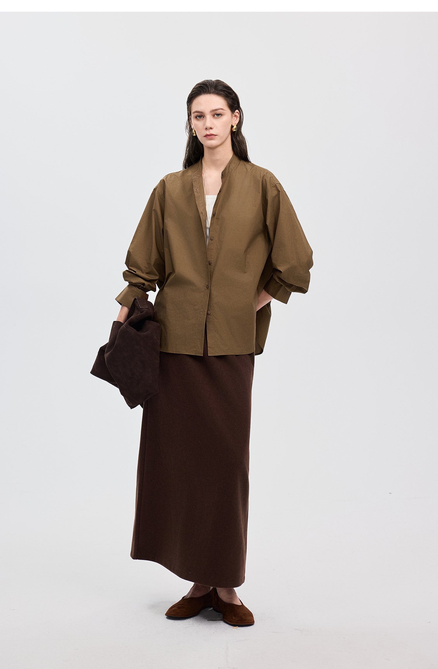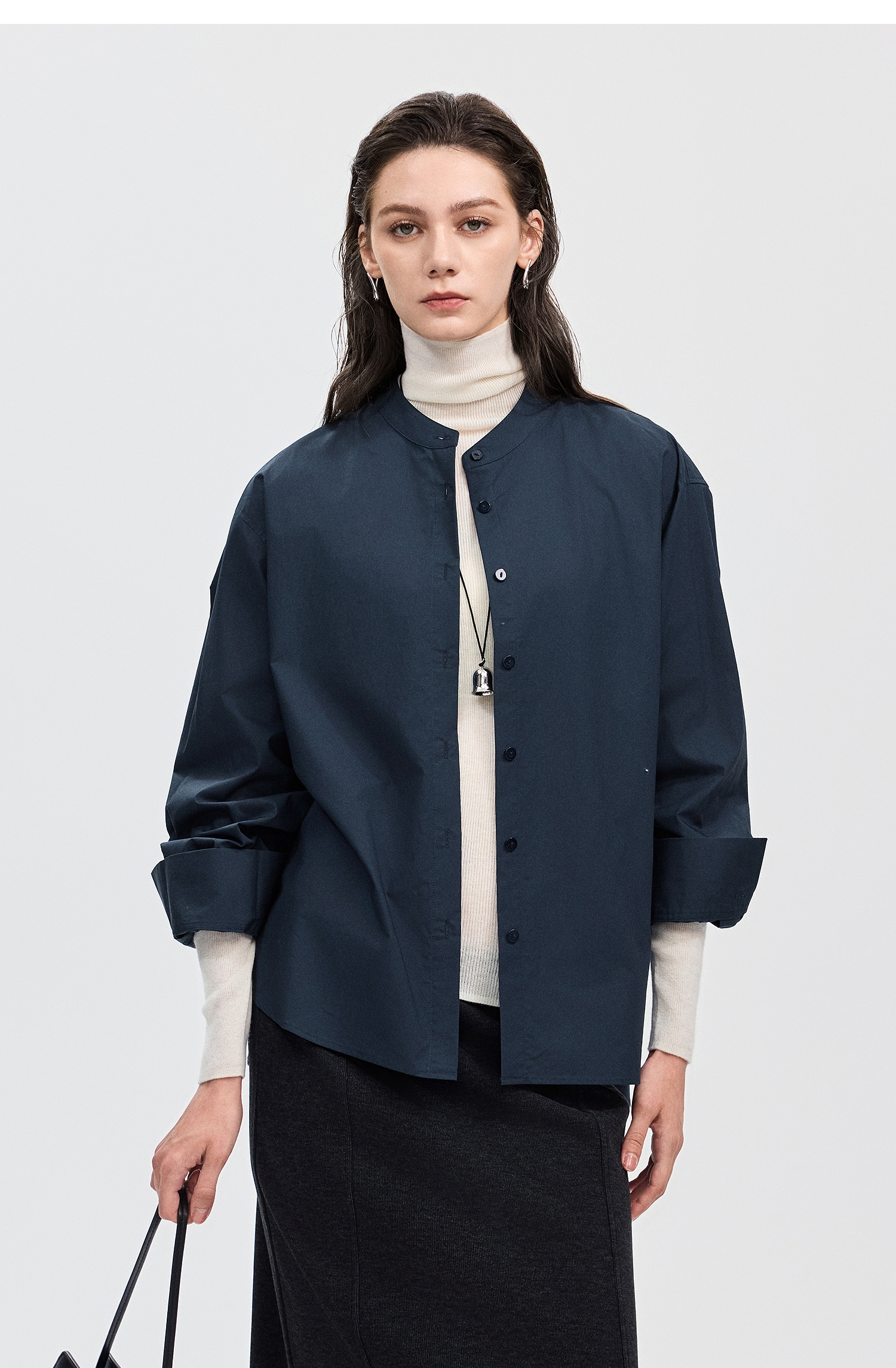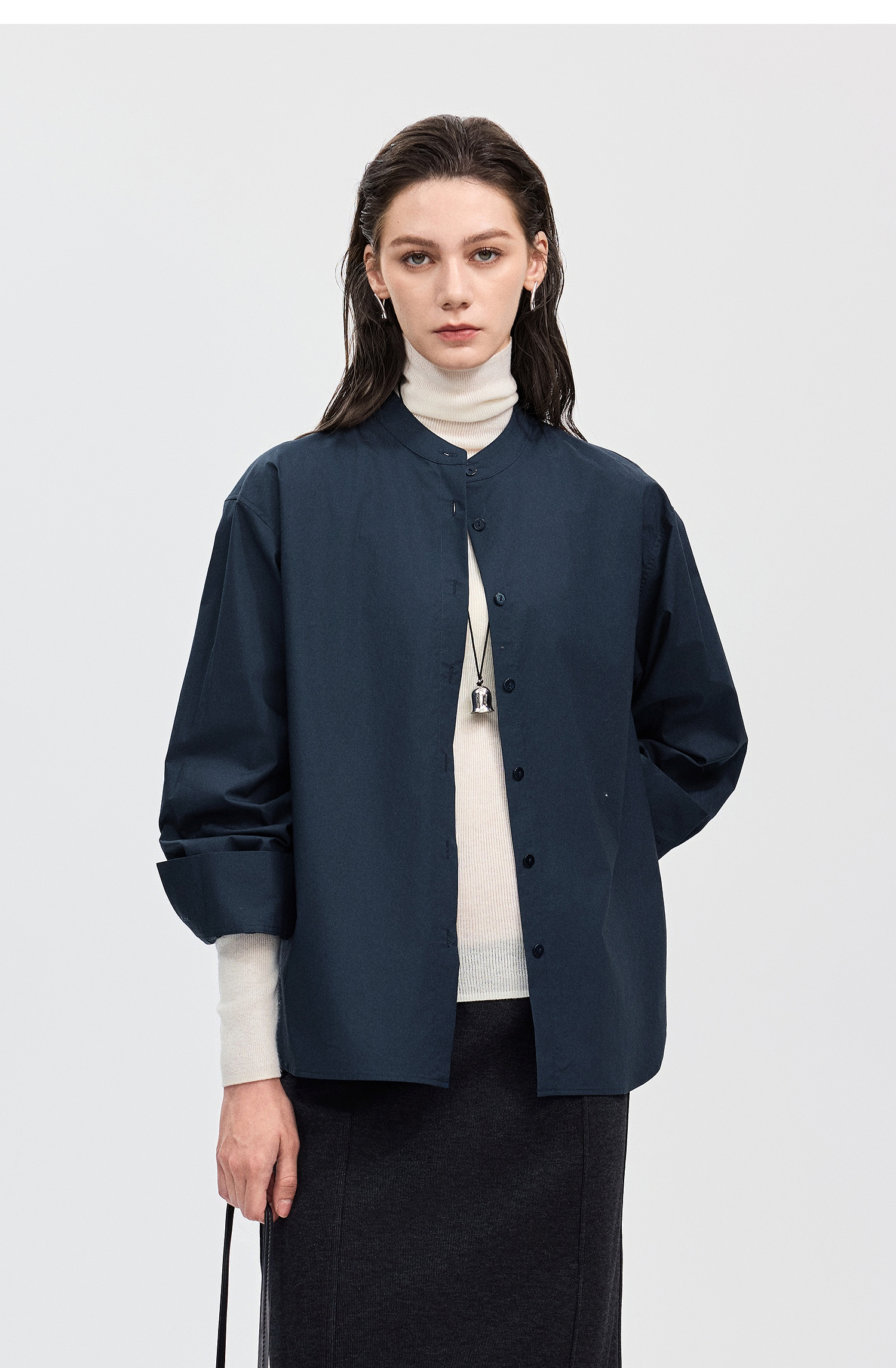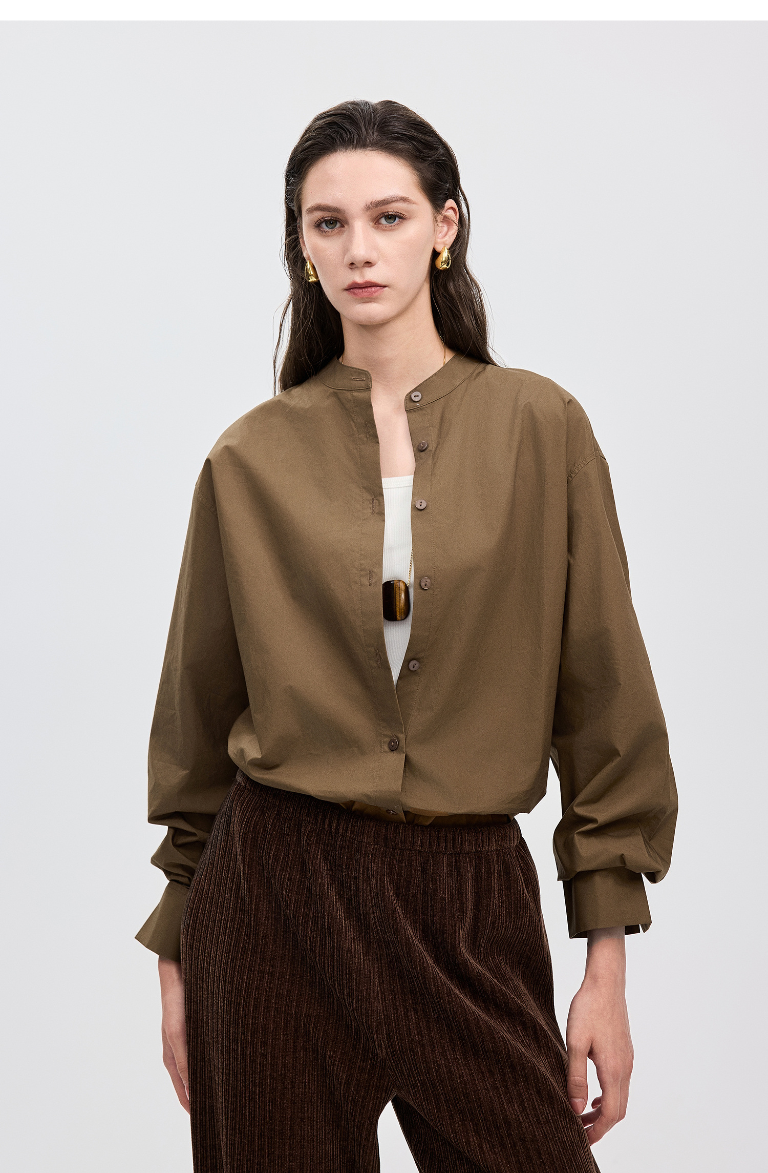 棉仓367604005-60S纸质府绸宽松长袖衬衫