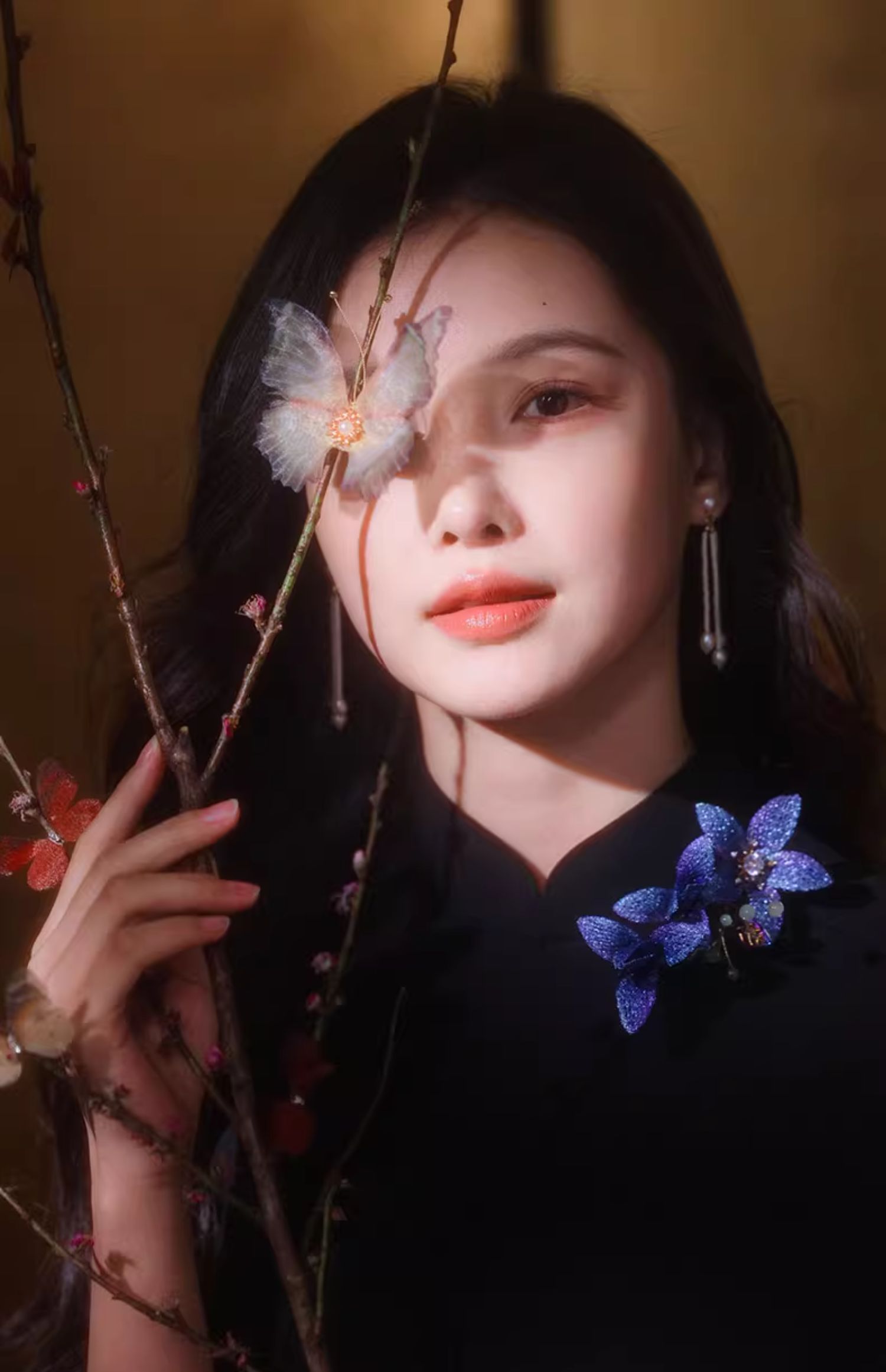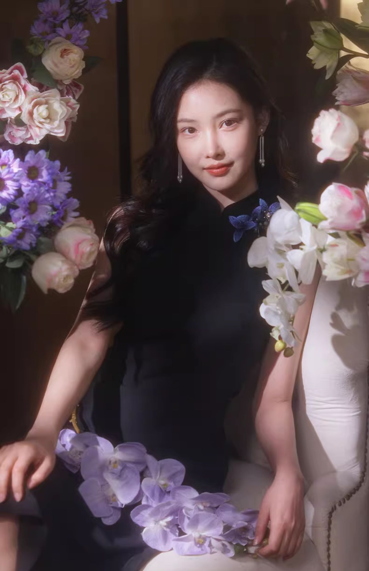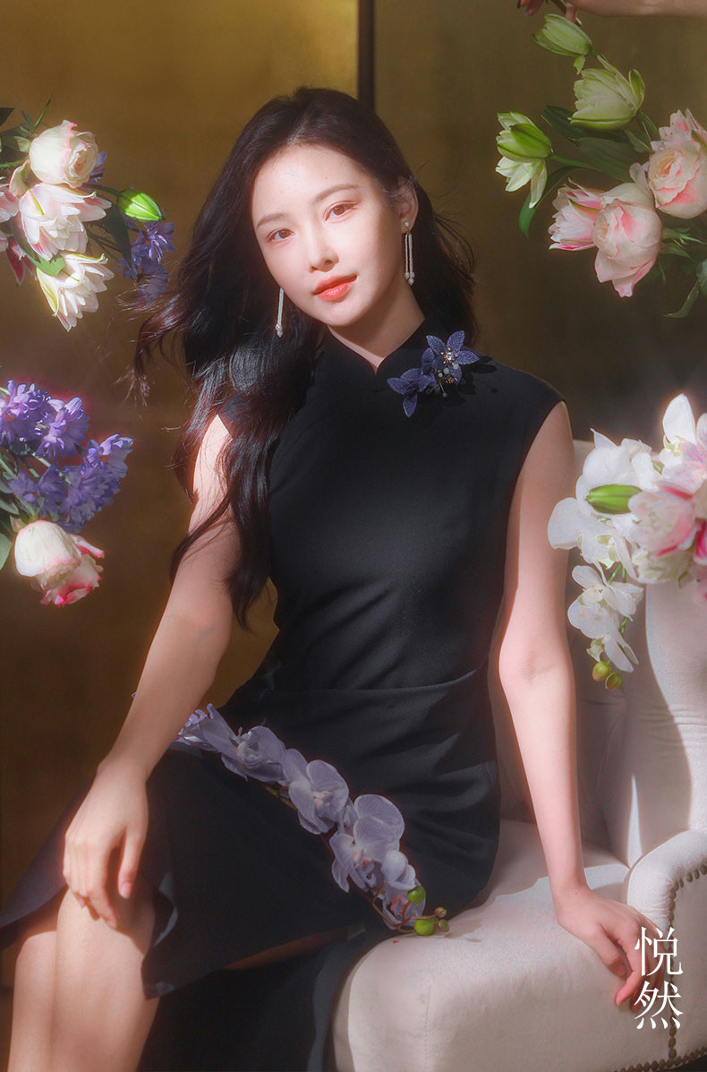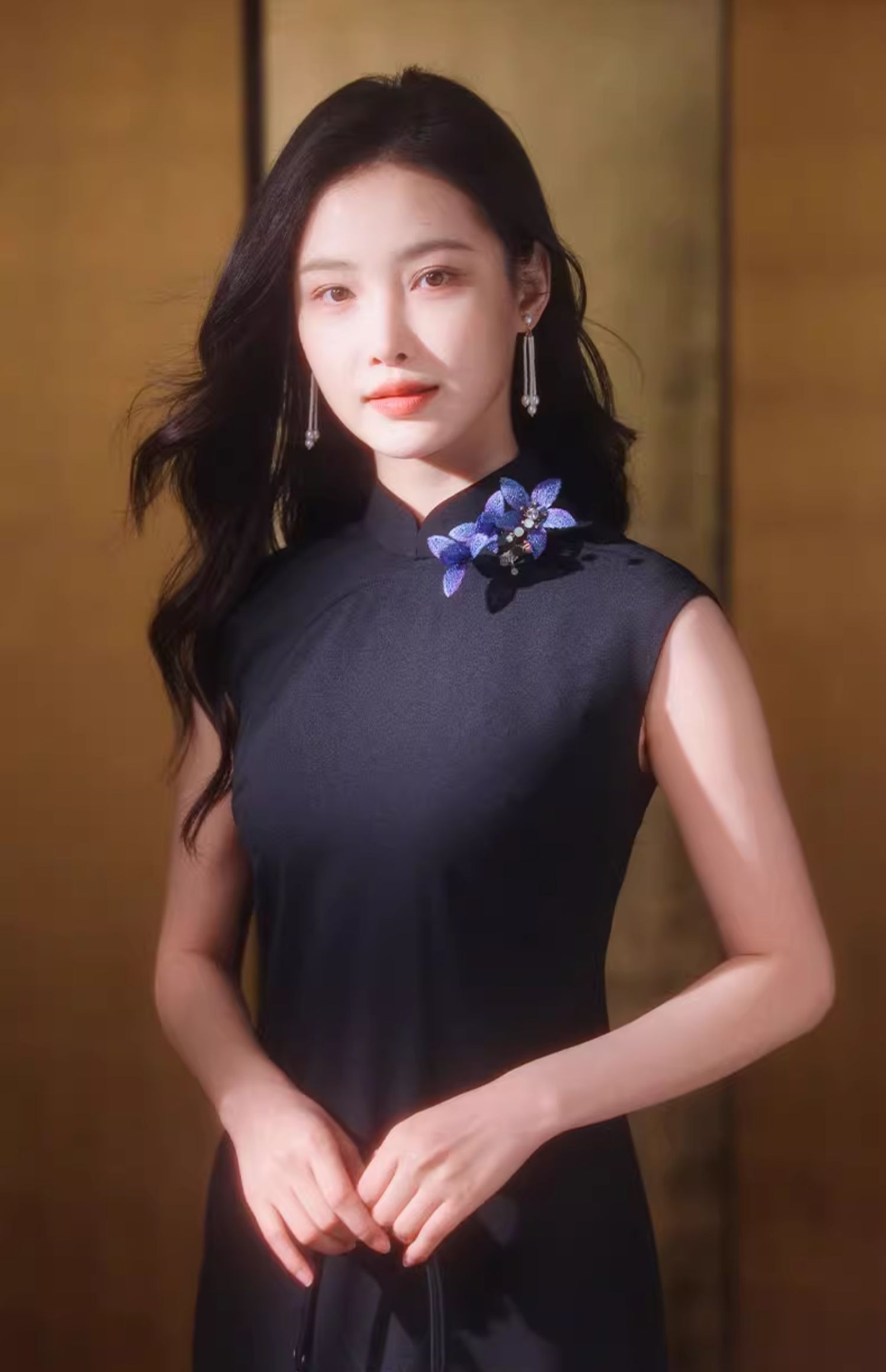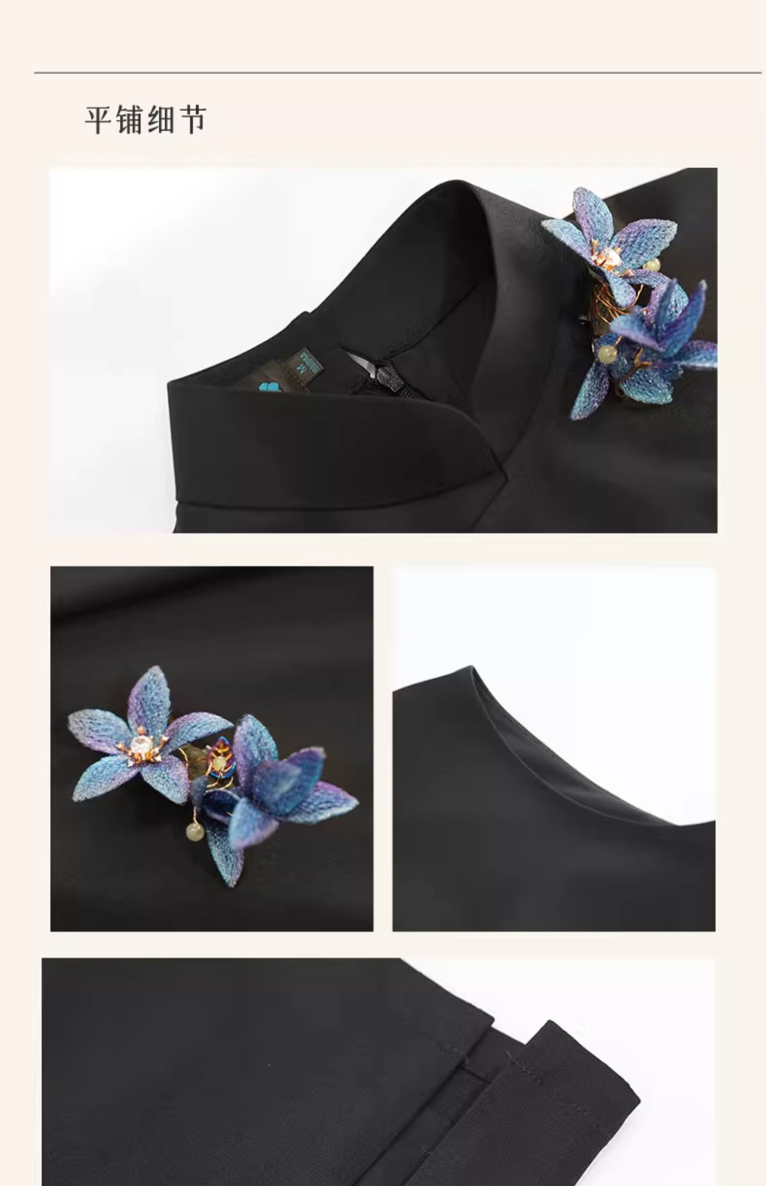 逸红颜悦然2025夏新款略宽松显腰身版微弹雪纺通勤改良旗袍小黑裙